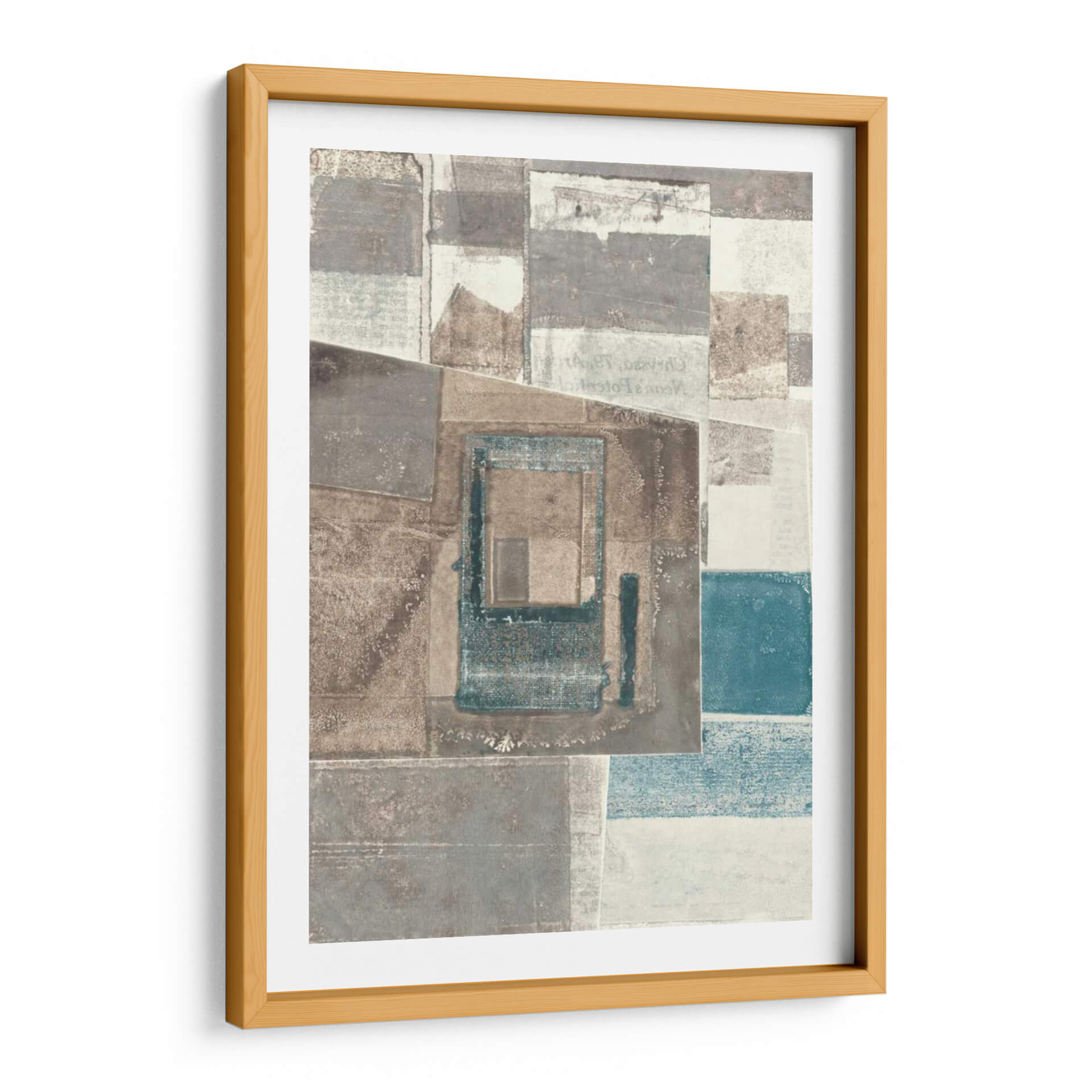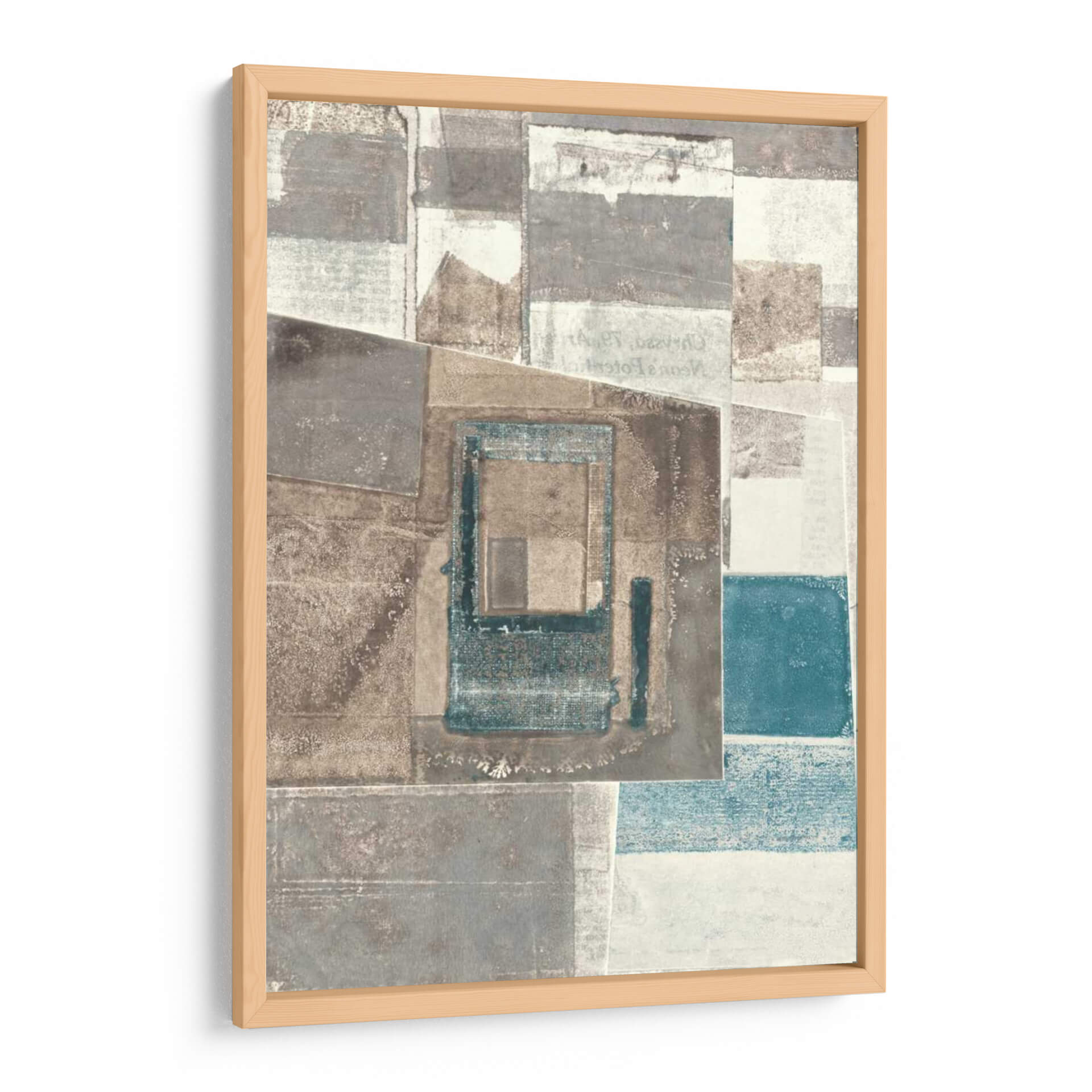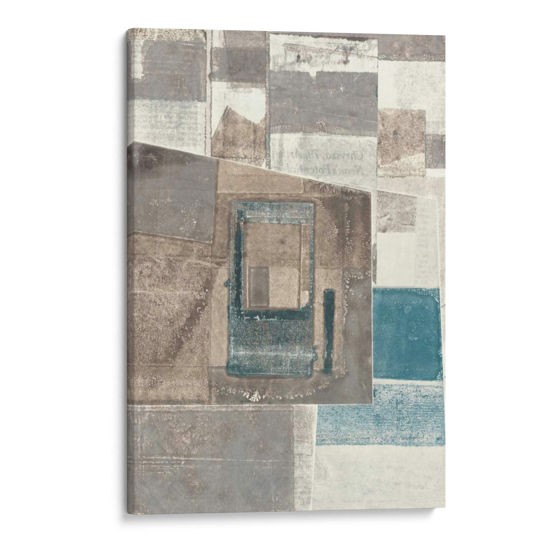 Sumérgete en la textura y la profundidad con este cautivador cuadro decorativo abstracto de Rob Delamater. La obra presenta una composición fascinante de formas geométricas superpuestas y texturas que evocan una sensación de capas de tiempo y memoria. Los tonos tierra, grises y sutiles acentos de azul verdoso se combinan para crear una atmósfera sofisticada y serena, perfecta para cualquier espacio moderno o contemporáneo. Los detalles sutiles, como lo que parecen ser fragmentos de texto o patrones desvanecidos, invitan a una contemplación más cercana, añadiendo un nivel de intriga a la pieza. Este cuadro abstracto es ideal para infundir carácter y elegancia a tu sala de estar, oficina o dormitorio, actuando como un punto focal que inspira tranquilidad y reflexión. Su diseño versátil se adapta a una variedad de esquemas de decoración, aportando un toque de arte refinado y contemporáneo que complementa tanto entornos minimalistas como espacios más audaces. Una elección perfecta para quienes aprecian el arte que combina la audacia geométrica con una paleta de colores armoniosa y evocadora.