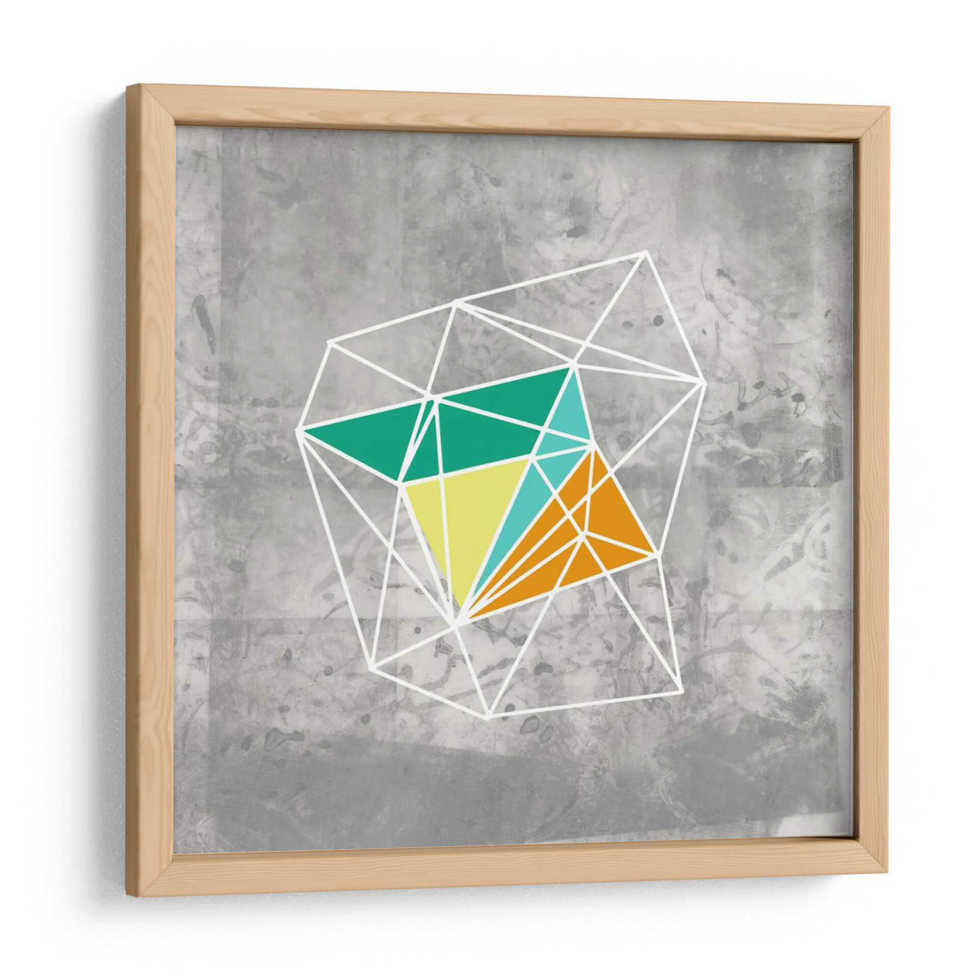 Descubre 'Geomolecule III', una obra de arte contemporáneo de Jennifer Goldberger que fusiona la precisión geométrica con una paleta de colores vibrante y texturas sutiles. Este cuadro decorativo presenta una intrincada estructura de líneas blancas que delinean un poliedro, el cual se descompone en facetas de vibrantes tonos verde esmeralda, amarillo sol y naranja intenso. El fondo, con su acabado texturizado en grisáceo y sutiles patrones abstractos, contrasta de manera elegante con la claridad de la forma geométrica central, creando una pieza que es a la vez moderna y etérea. 'Geomolecule III' evoca una sensación de orden cósmico y energía latente, perfecta para añadir un toque de sofisticación y dinamismo a cualquier espacio. Ideal para salones modernos, oficinas creativas o cualquier rincón que necesite un punto focal audaz y conceptual. Esta pieza invita a la contemplación, explorando la relación entre la estructura y el color, y se convertirá en una adición memorable a tu colección de arte de pared.