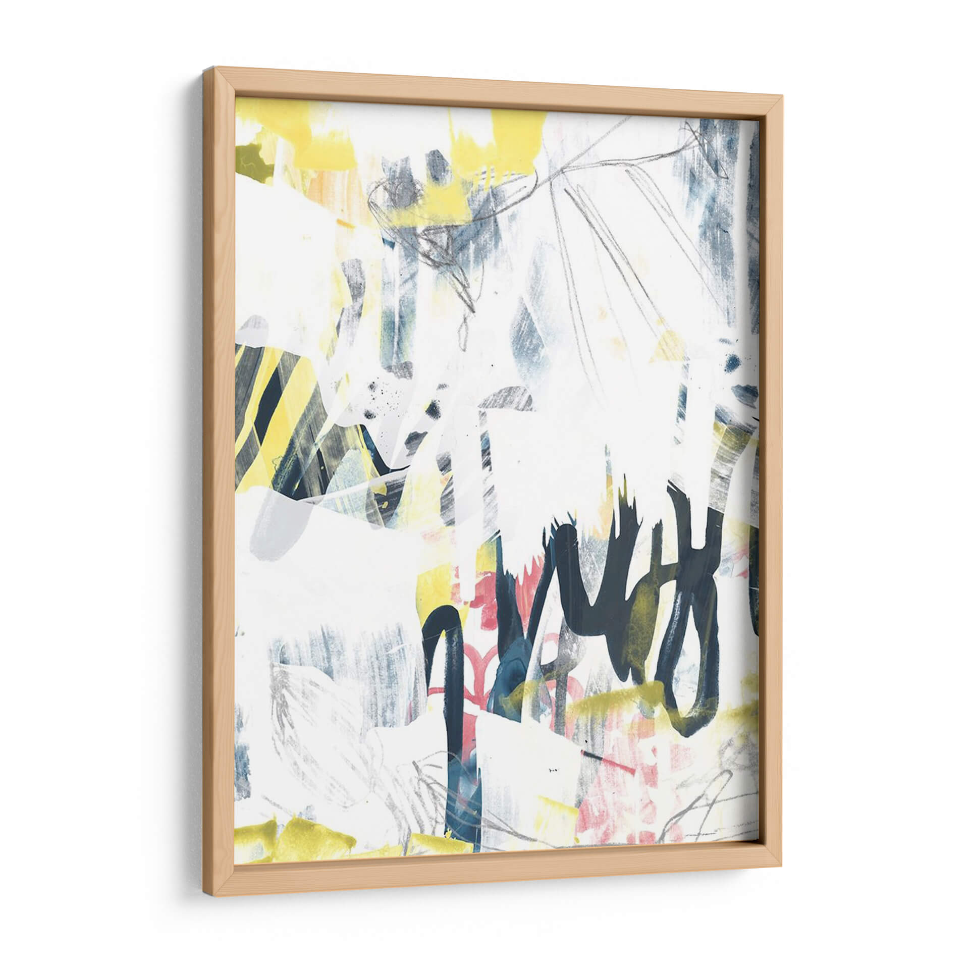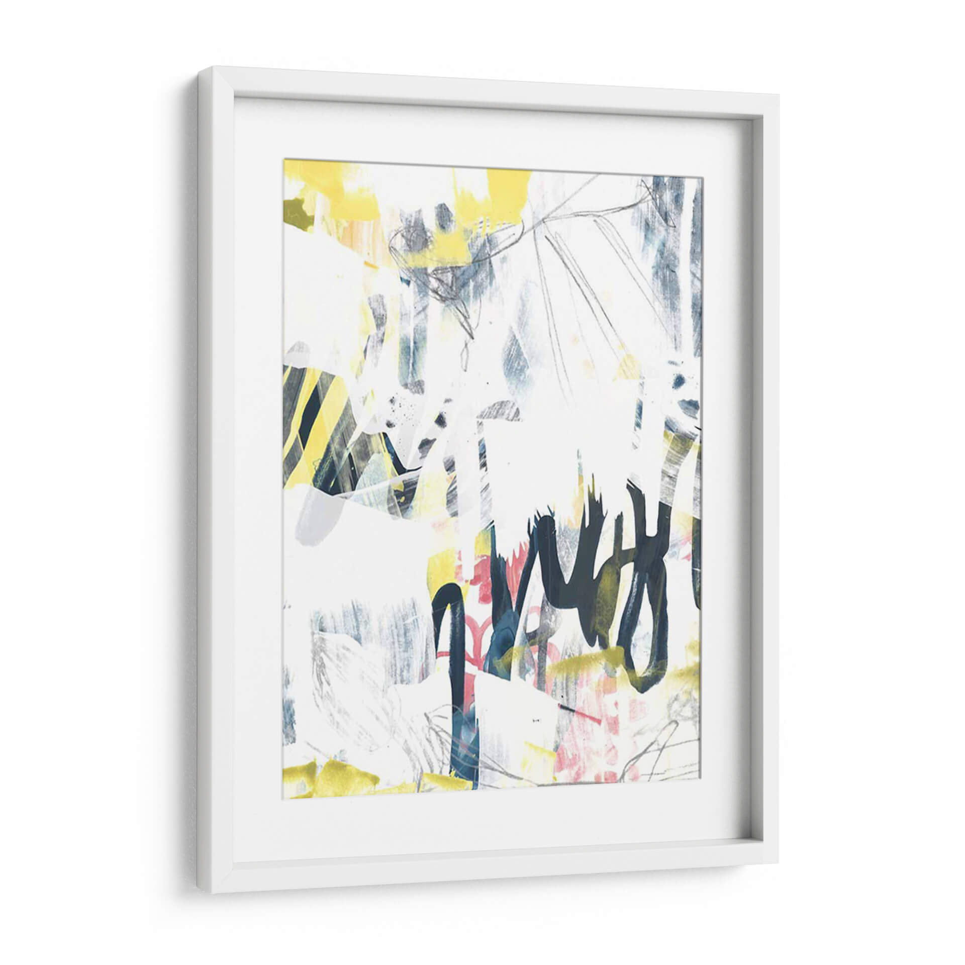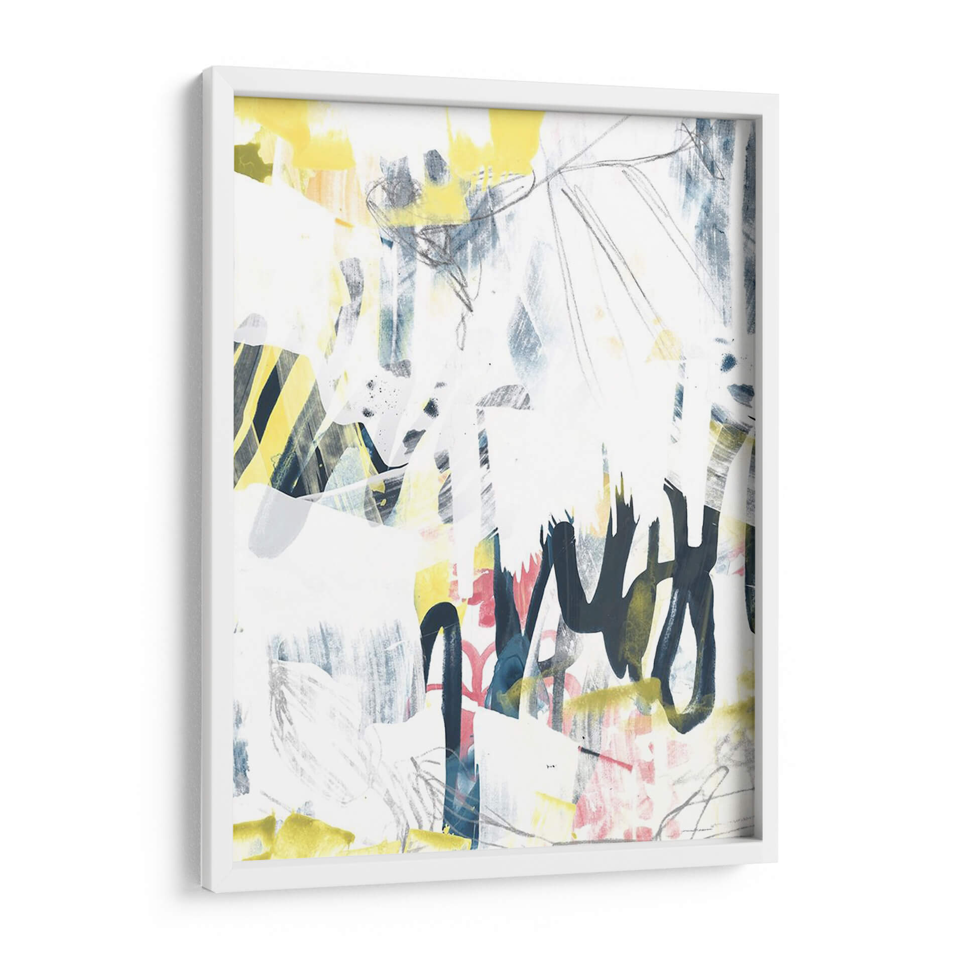 Sumérgete en la vibrante energía de "Graffiti Lírico I", una obra de arte contemporáneo que desafía las convenciones y celebra la expresividad. Creada por la talentosa June Erica Vess, esta pieza es un cautivador collage visual donde trazos audaces de grafito se entrelazan con manchas de color vibrante y texturas sutiles. La paleta, dominada por blancos puros y acentos eléctricos de amarillo y azul, salpicada con toques de rosa, crea un equilibrio dinámico entre el caos y la armonía. Las líneas gestuales, reminiscentes de la escritura espontánea, evocan una sensación de movimiento y espontaneidad, mientras que las capas subyacentes añaden profundidad y misterio. "Graffiti Lírico I" es más que un simple cuadro decorativo; es una declaración de estilo que inyectará personalidad y un toque urbano moderno a cualquier espacio. Ideal para salones, estudios u oficinas que buscan un punto focal audaz y una conversación inspiradora. Este cuadro decorativo abstracto contemporáneo es perfecto para quienes aprecian el arte que fusiona la energía del graffiti con la sutileza de la expresión lírica, aportando una atmósfera de creatividad y dinamismo a tu decoración.