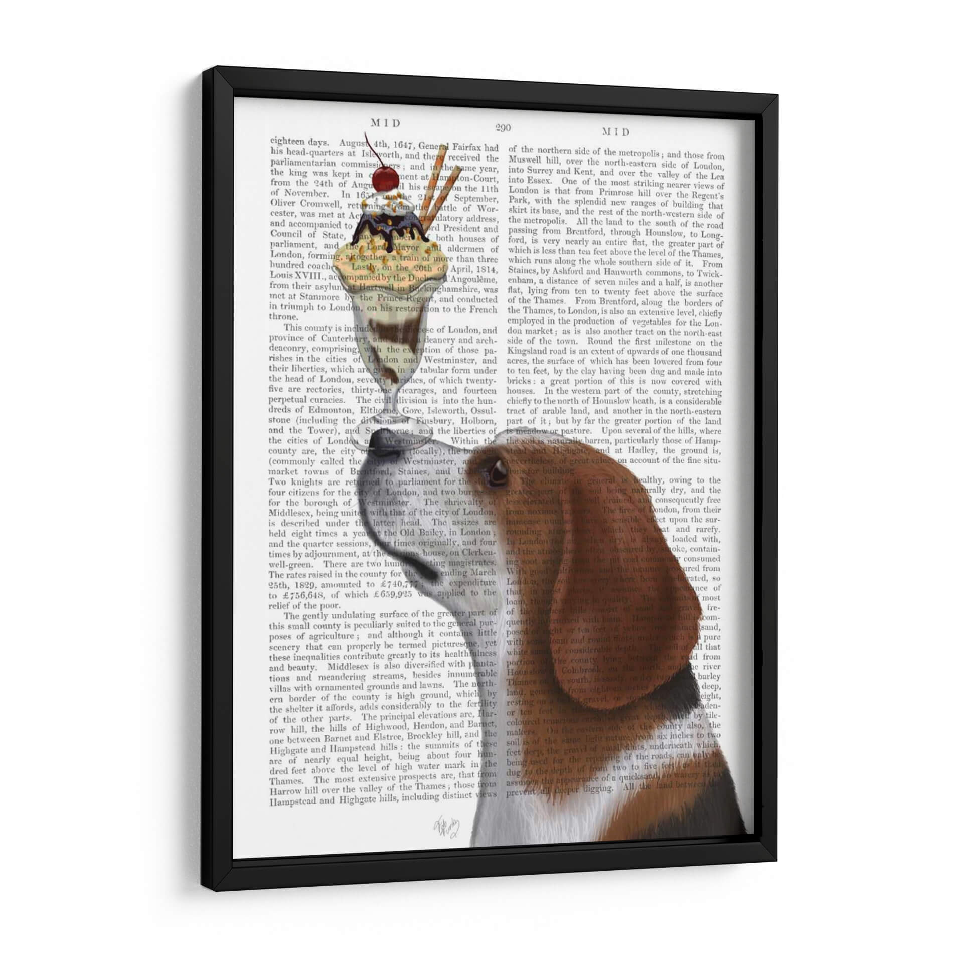 Añade un toque de originalidad y ternura a tu hogar con nuestro exclusivo cuadro decorativo 'Helado de Beagle'. Esta obra de arte, que fusiona la inocencia de un beagle con la dulzura de un postre, es una creación vibrante y llena de personalidad del artista Fab Funky. La composición presenta a un encantador beagle adoptando una forma similar a un helado, coronado con cerezas, sobre un fondo de texto antiguo, creando un contraste visual fascinante. Los colores cálidos y los detalles juguetones de esta pieza la convierten en el punto focal perfecto para cualquier habitación, desde la sala de estar hasta un espacio de trabajo creativo. Es ideal para amantes de los perros, coleccionistas de arte peculiar y cualquiera que busque una decoración de pared que despierte sonrisas y conversaciones. Este cuadro no solo embellece tus paredes, sino que también infunde alegría y un aire de sofisticación desenfadada en tu ambiente. Transforma tu espacio con esta pieza única que combina arte contemporáneo y un concepto deliciosamente original.