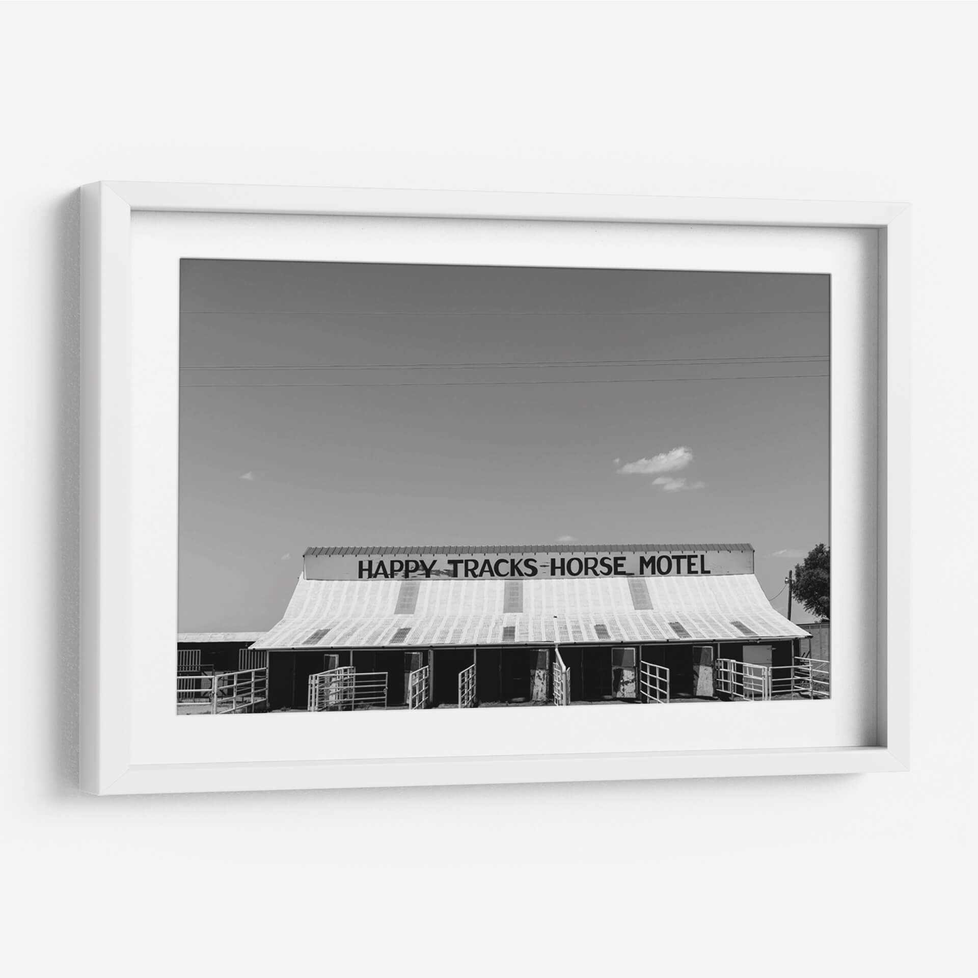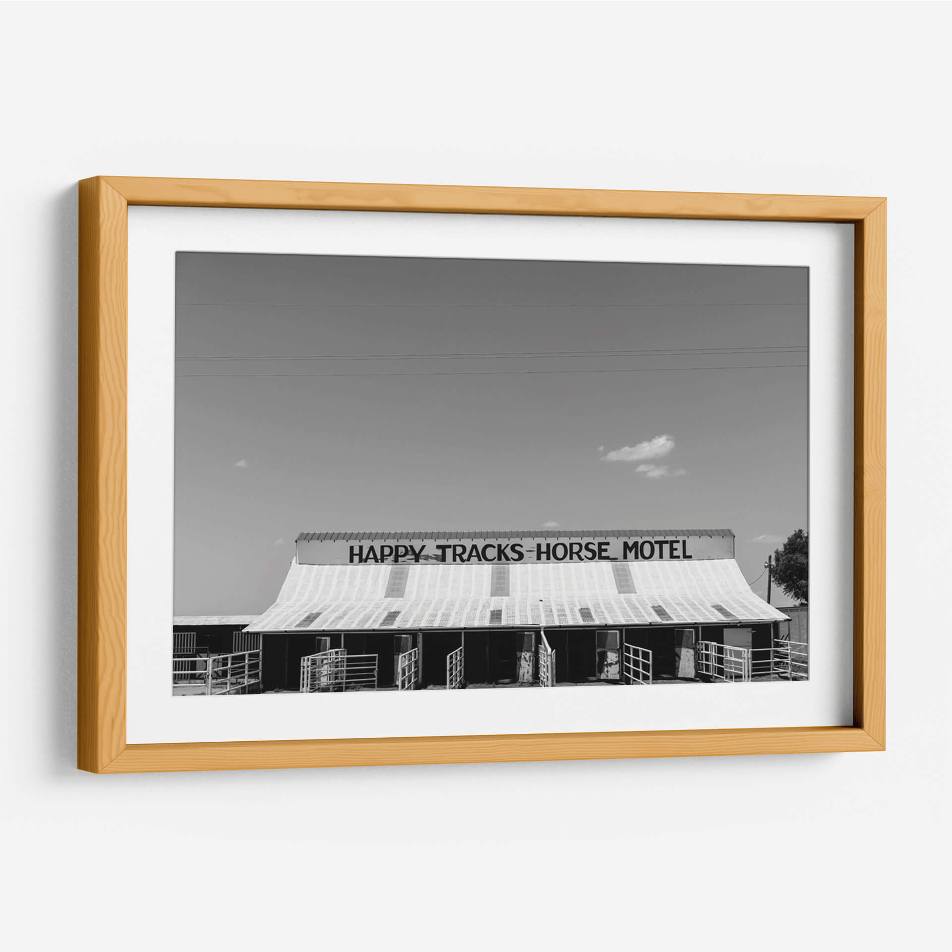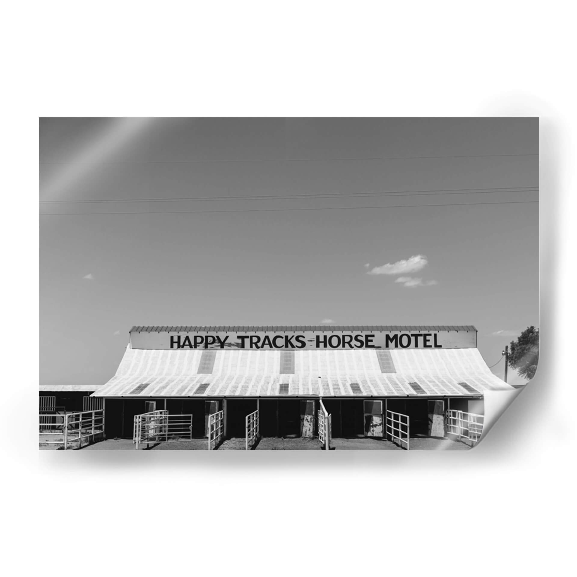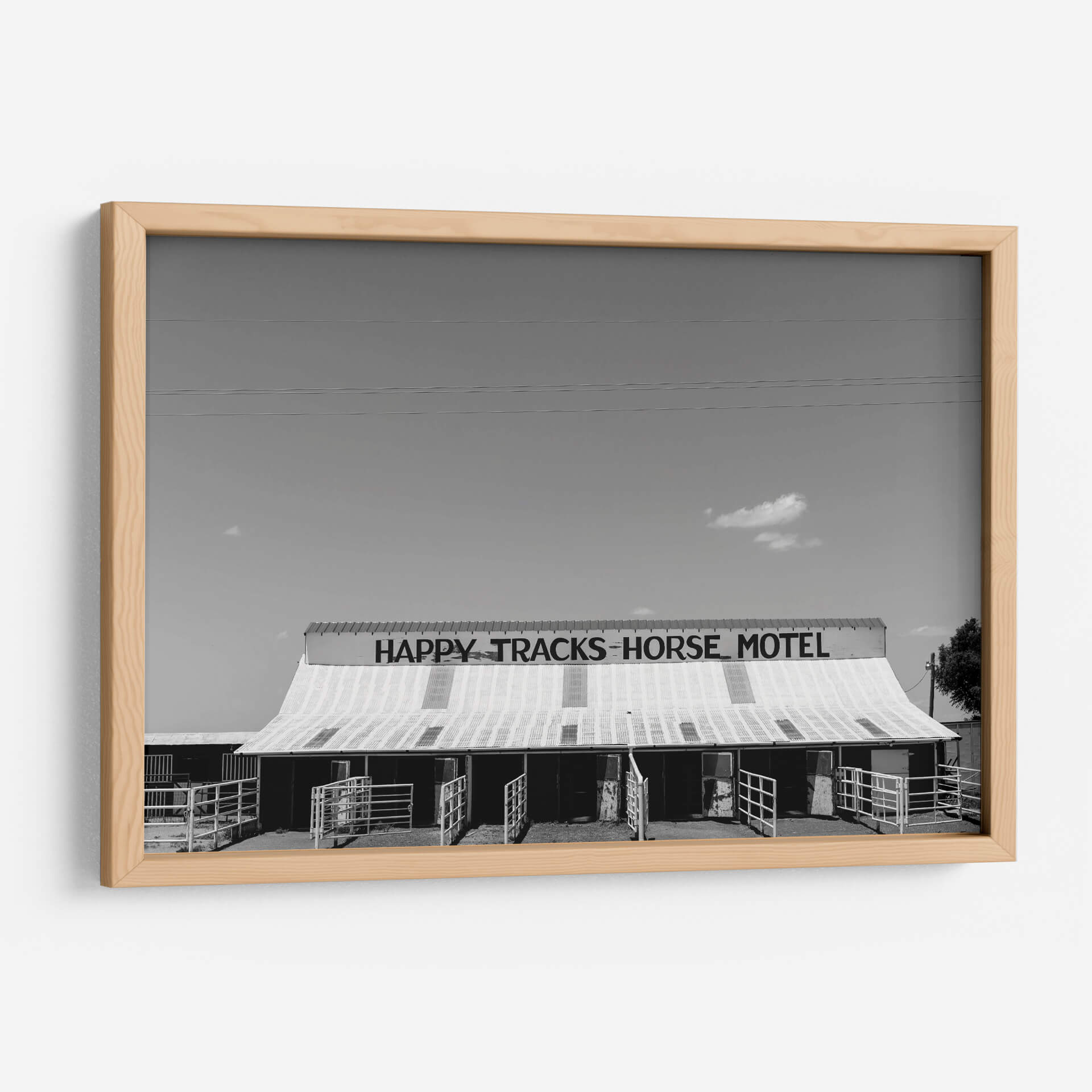 Sumérgete en la atmósfera nostálgica de "Horse Motel", una obra de arte en blanco y negro que captura la esencia de un refugio equino con un encanto atemporal. La fotografía, capturada por Bethany Young, presenta una fachada detallada de un establo, con "HAPPY TRACKS HORSE MOTEL" escrito prominentemente en la parte superior, invitando a la reflexión sobre los viajes y las estancias en lugares sencillos pero significativos. La composición se centra en la arquitectura lineal y simétrica del edificio, contrastando con el cielo despejado y las nubes dispersas, creando una sensación de amplitud y serenidad. La ausencia de color intensifica las texturas y las formas, otorgando a la imagen una profundidad y un carácter únicos. Este cuadro decorativo es perfecto para añadir un toque de carácter rústico o vintage a cualquier espacio, desde una sala de estar con influencias industriales hasta un estudio o una oficina que busque inspiración en la vida rural o en la temática ecuestre. "Horse Motel" no es solo una imagen, es una invitación a evocar recuerdos, sueños de libertad y la belleza inherente de los lugares modestos. Una pieza de arte de pared que sin duda generará conversación y aportará una estética distintiva a tu decoración.