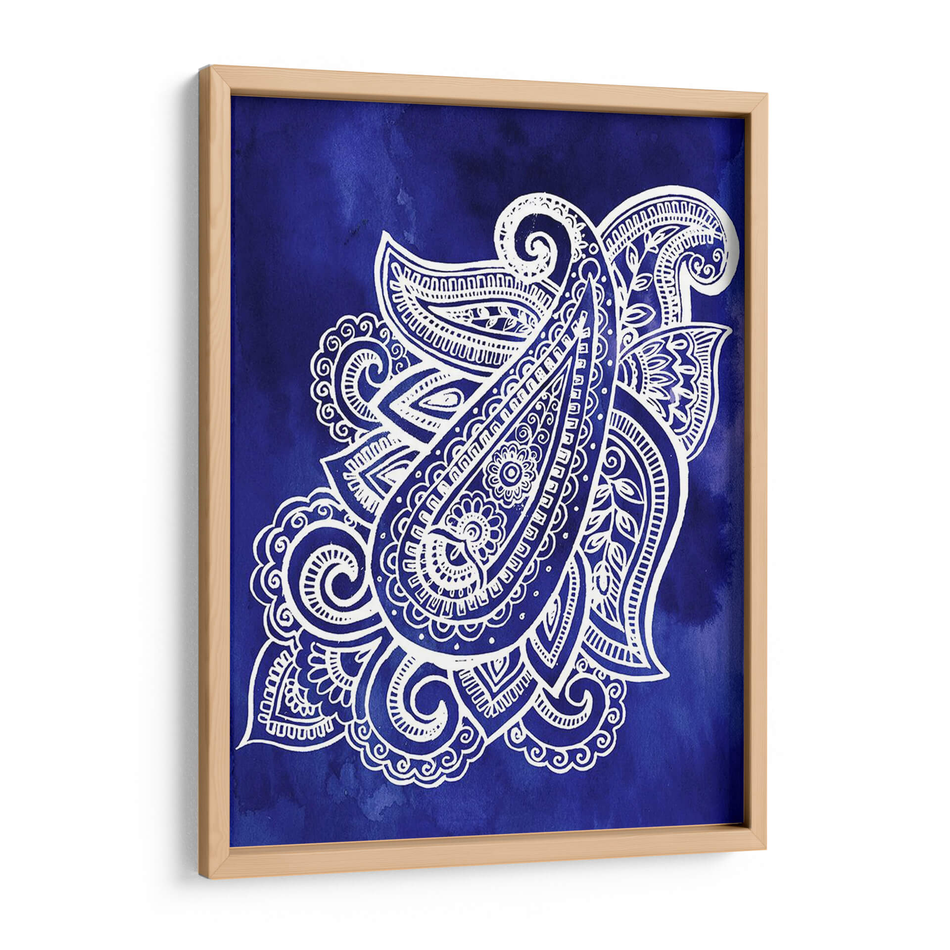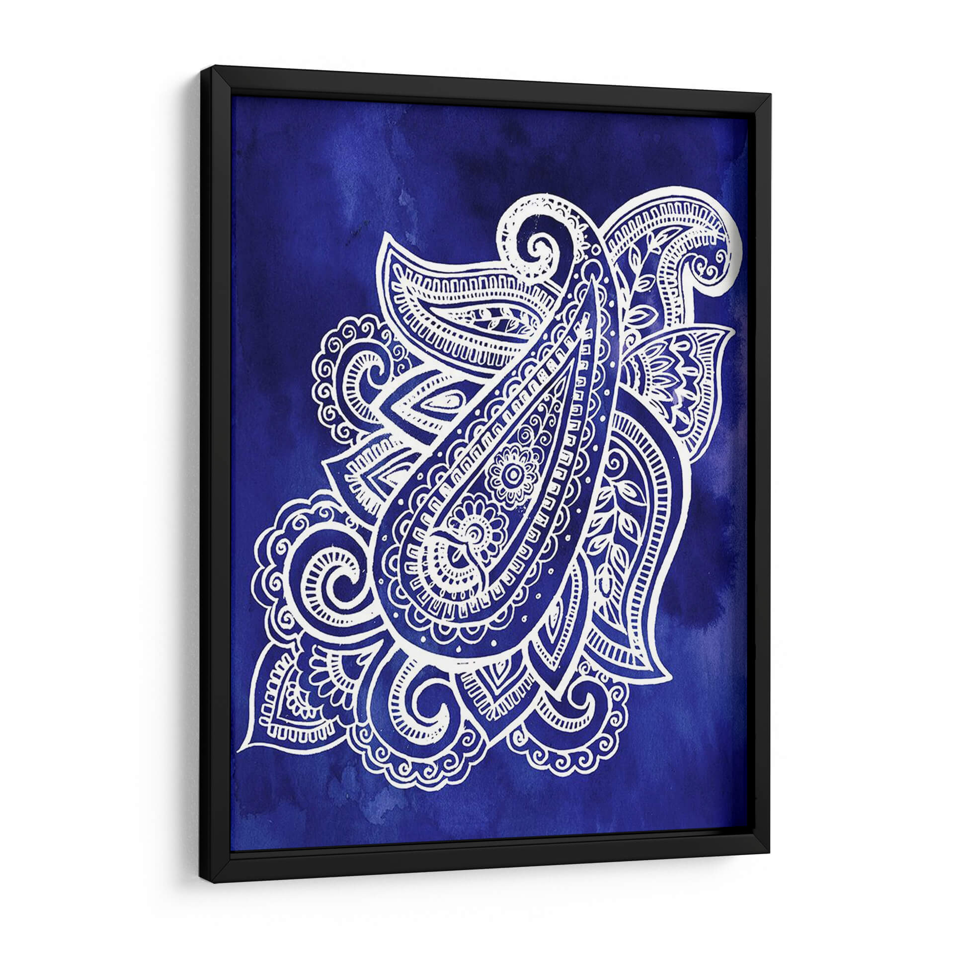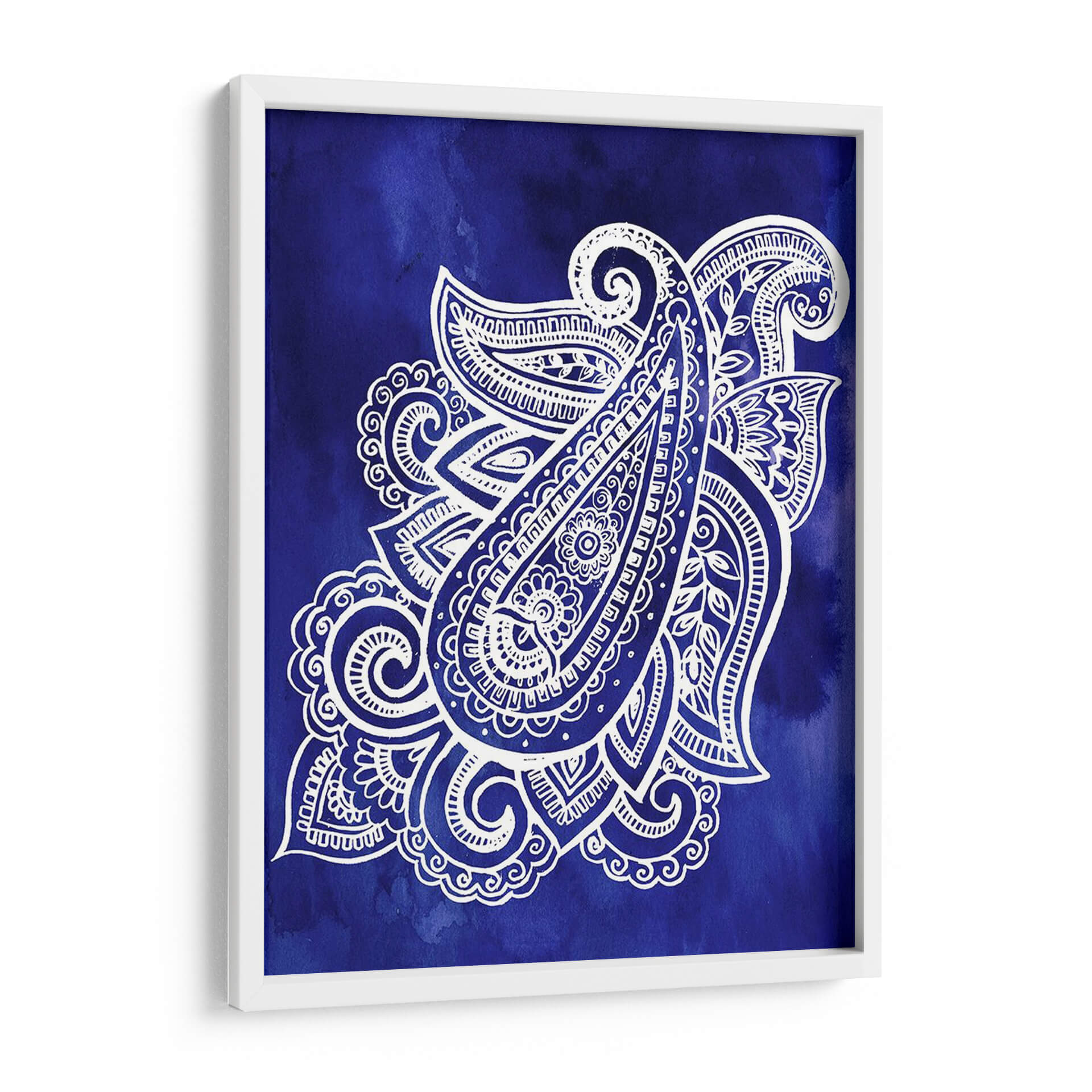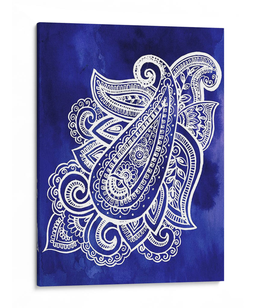 Sumérgete en la profundidad y el detalle de "Índigo Paisley I", una obra de arte contemporáneo que fusiona la tradición con una estética moderna. Esta pieza presenta un intrincado diseño paisley en blanco nítido sobre un vibrante fondo de acuarela índigo. Las complejas filigranas y los delicados patrones del diseño paisley invitan a la contemplación, creando una sensación de calma y sofisticación. La paleta de colores, dominada por el enérgico azul índigo y el contraste puro del blanco, aporta un toque de serenidad y elegancia a cualquier espacio. Ideal para aquellos que buscan añadir un punto focal distintivo y artístico a su hogar u oficina, este cuadro decorativo se adapta perfectamente a ambientes contemporáneos, bohemios o eclécticos. Su composición equilibrada y la riqueza de sus detalles lo convierten en una elección excepcional para revitalizar salones, dormitorios o estudios, aportando una atmósfera de tranquilidad y refinamiento. Descubre la belleza atemporal del diseño paisley reinventado por Jennifer Paxton Parker.