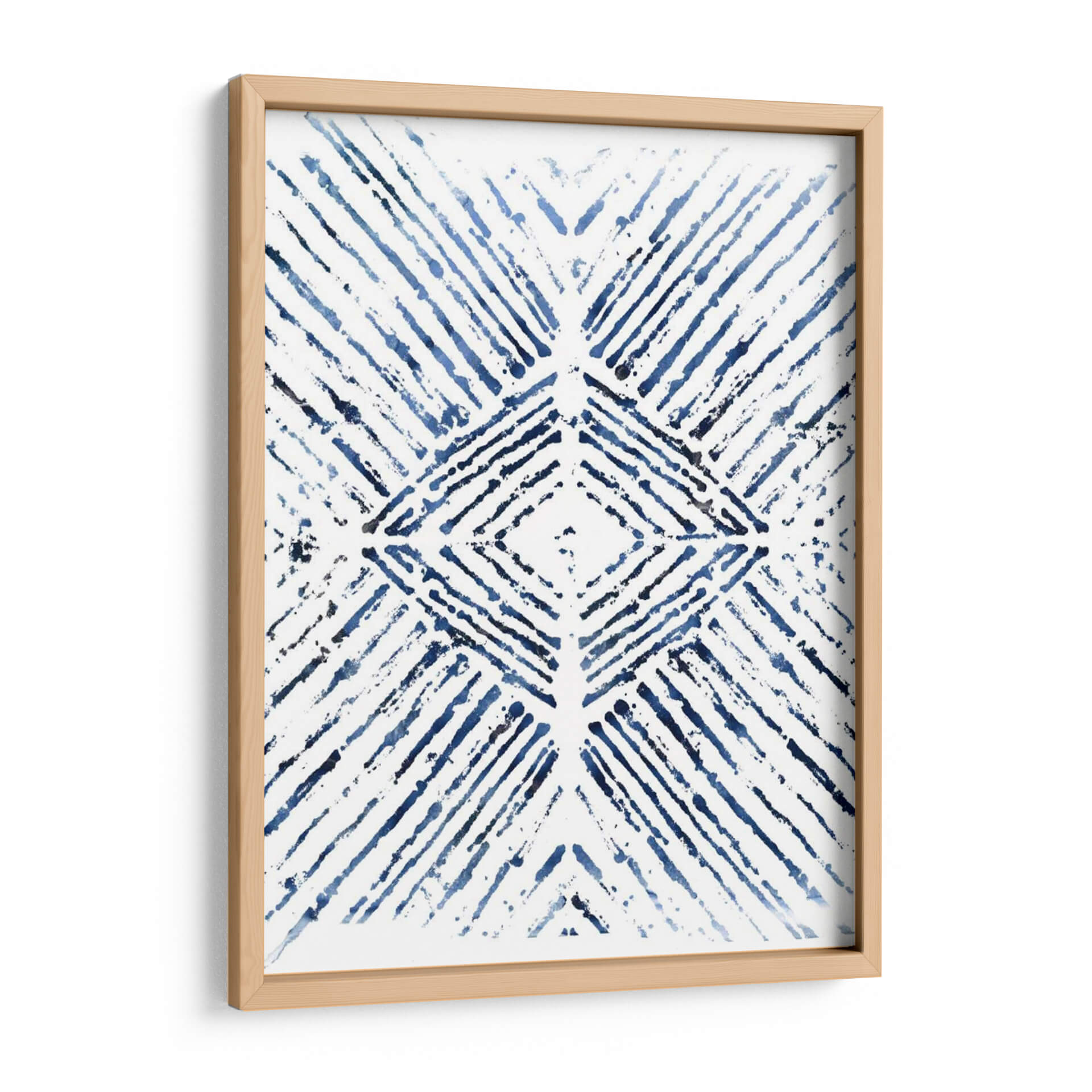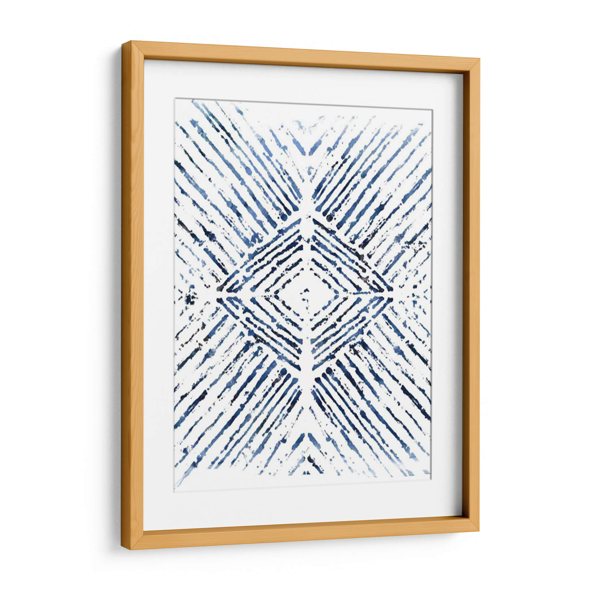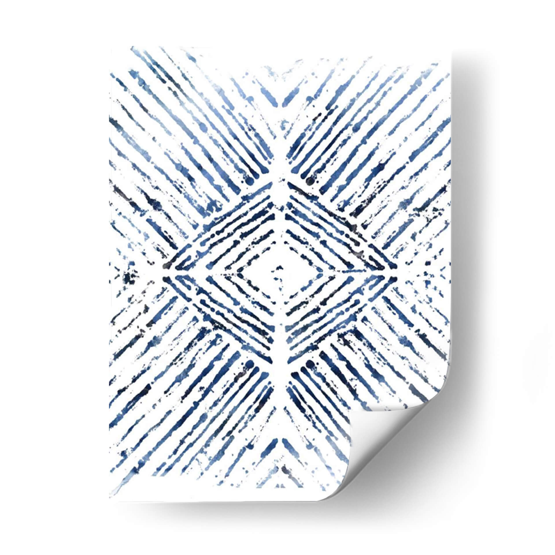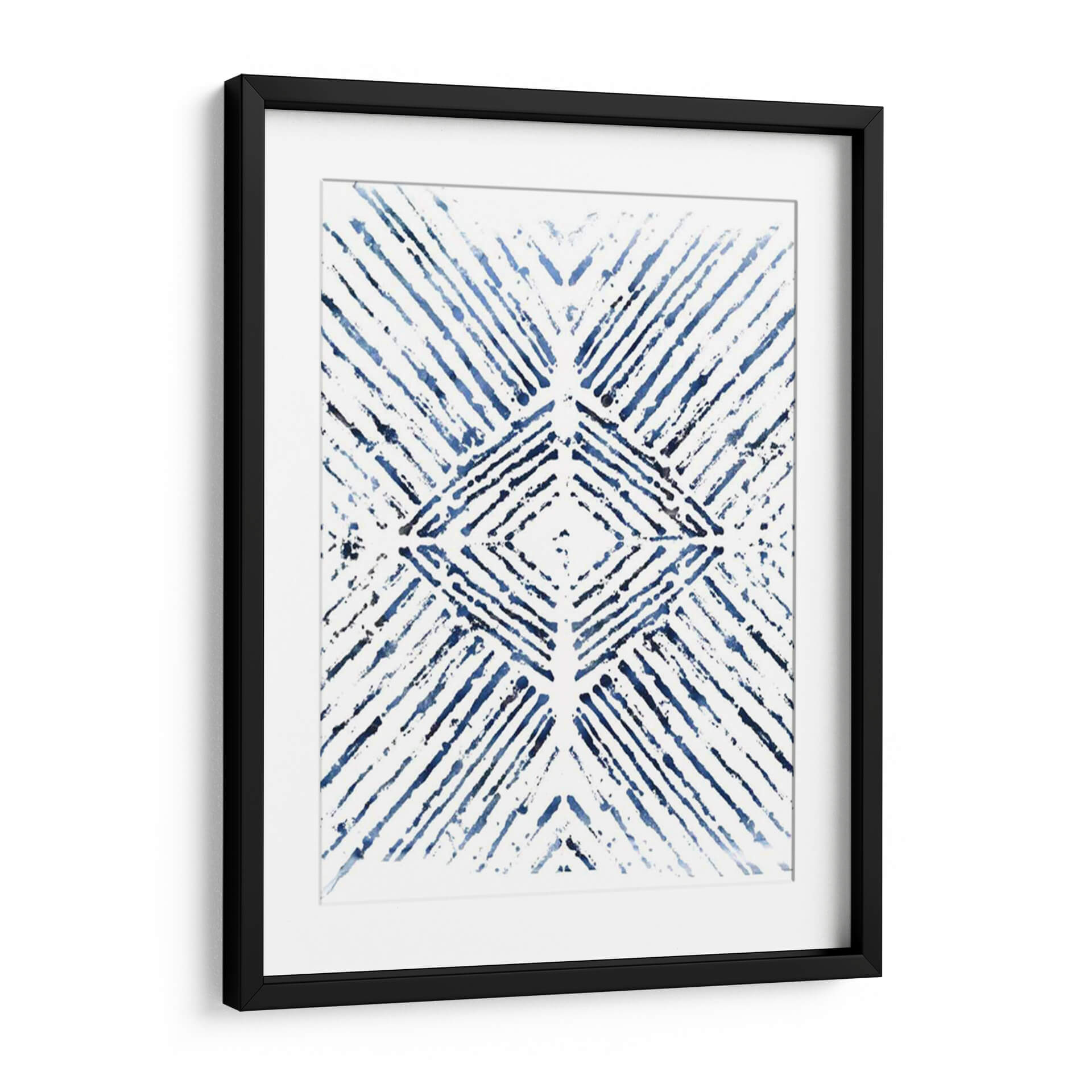 Sumérgete en la serenidad y el estilo contemporáneo con "Indigo Tinta Motif Vi", una obra de arte abstracto que captura la esencia de la elegancia moderna. Este cuadro decorativo presenta un cautivador patrón geométrico en tonos profundos de índigo y azul sobre un fondo blanco nítido, creando un contraste visual dinámico y sofisticado. Las pinceladas sueltas y texturizadas aportan una sensación de movimiento y profundidad, evocando la delicadeza de la tinta o el estilo shibori japonés. La composición simétrica, centrada en un diamante estilizado, irradia equilibrio y armonía, convirtiéndola en una pieza focal ideal para cualquier espacio que busque un toque de calma y refinamiento. Su diseño abstracto y versátil lo hace perfecto para complementar una variedad de estilos de decoración, desde el minimalista hasta el bohemio chic. Imagina este cuadro decorativo aportando un aire de tranquilidad y sofisticación a tu sala de estar, estudio u oficina. "Indigo Tinta Motif Vi" no es solo una obra de arte, es una invitación a la contemplación y una declaración de buen gusto, diseñada para elevar tu entorno y reflejar tu aprecio por la belleza sutil y el diseño atemporal. Añade esta pieza maestra a tu colección y transforma tu hogar en un santuario de estilo.