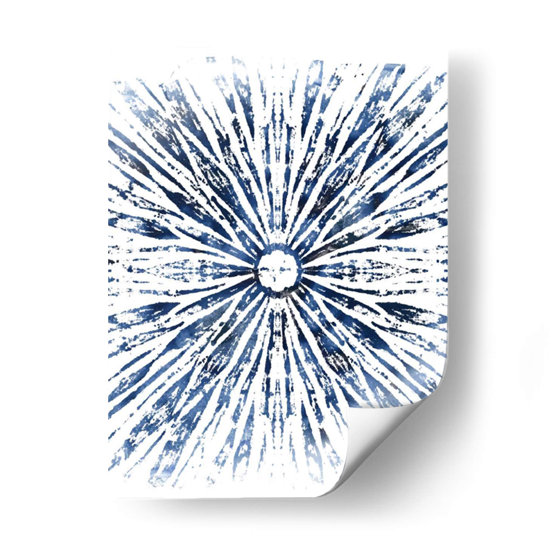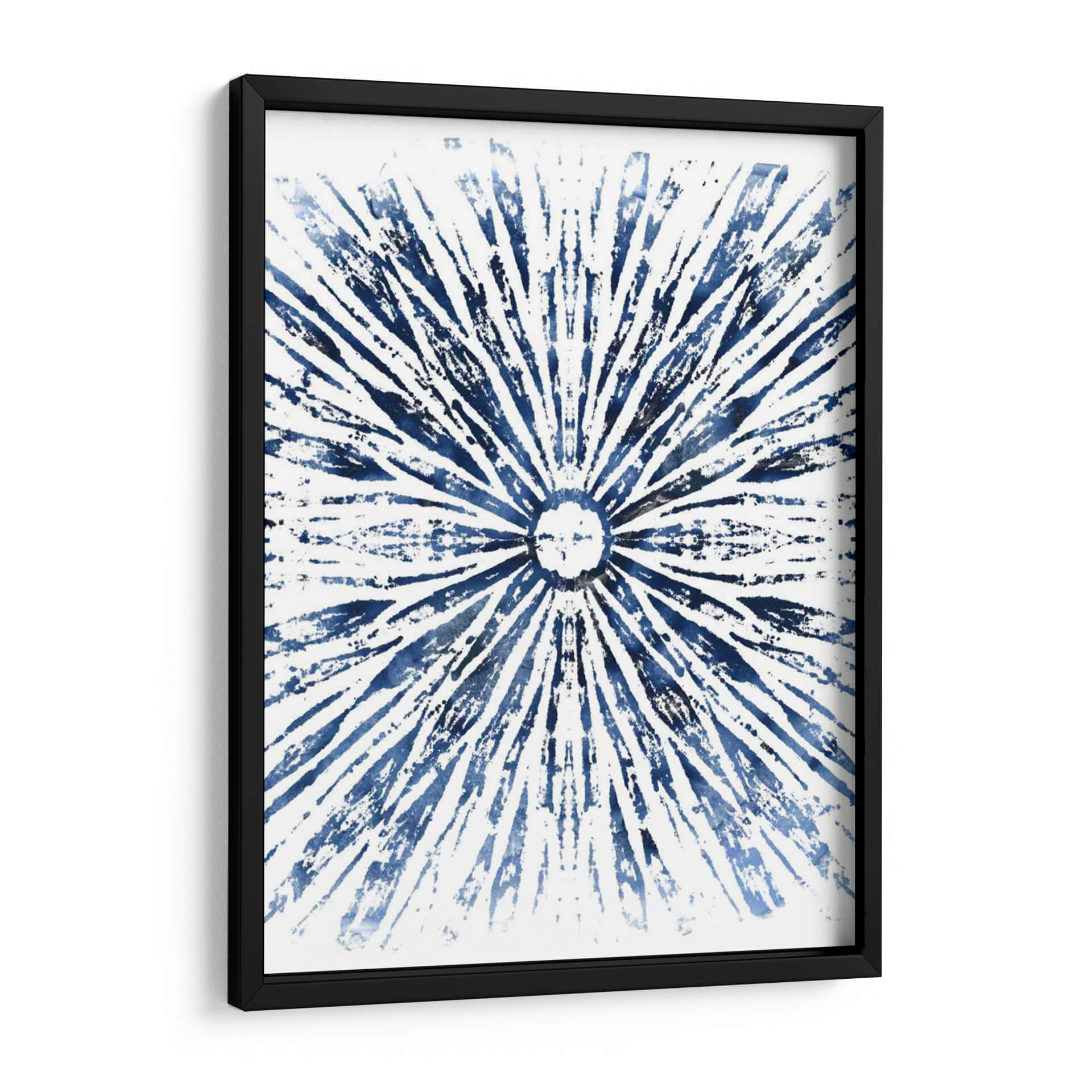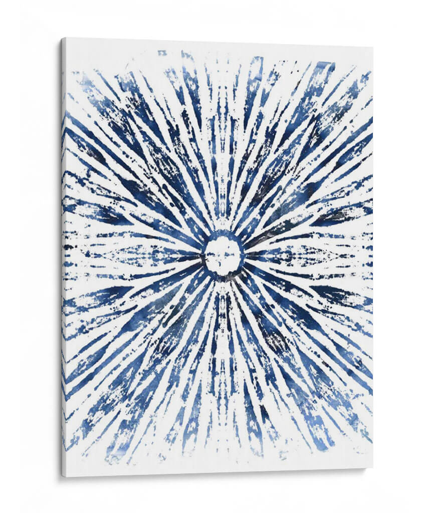 Sumérgete en la serena belleza de "Indigo Tinta Motif Viii", una obra de arte abstracta que irradia calma y elegancia. Este cuadro decorativo presenta un cautivador patrón radial en vibrantes tonos de azul índigo sobre un fondo blanco nítido. Las pinceladas audaces y texturizadas crean una sensación de movimiento y profundidad, evocando la imagen de un sol estilizado o una explosión de energía rítmica. La composición simétrica y el uso del color azul profundo invitan a la contemplación, aportando una atmósfera de tranquilidad y sofisticación a cualquier espacio. Ideal para salones modernos, dormitorios serenos u oficinas que buscan un toque de inspiración artística. La simplicidad del diseño, combinada con la intensidad del azul, lo convierte en una pieza versátil que complementa una amplia gama de estilos decorativos, desde el contemporáneo hasta el minimalista. "Indigo Tinta Motif Viii" es más que una decoración de pared; es una ventana a la introspección y un punto focal que embellece y armoniza tu entorno.