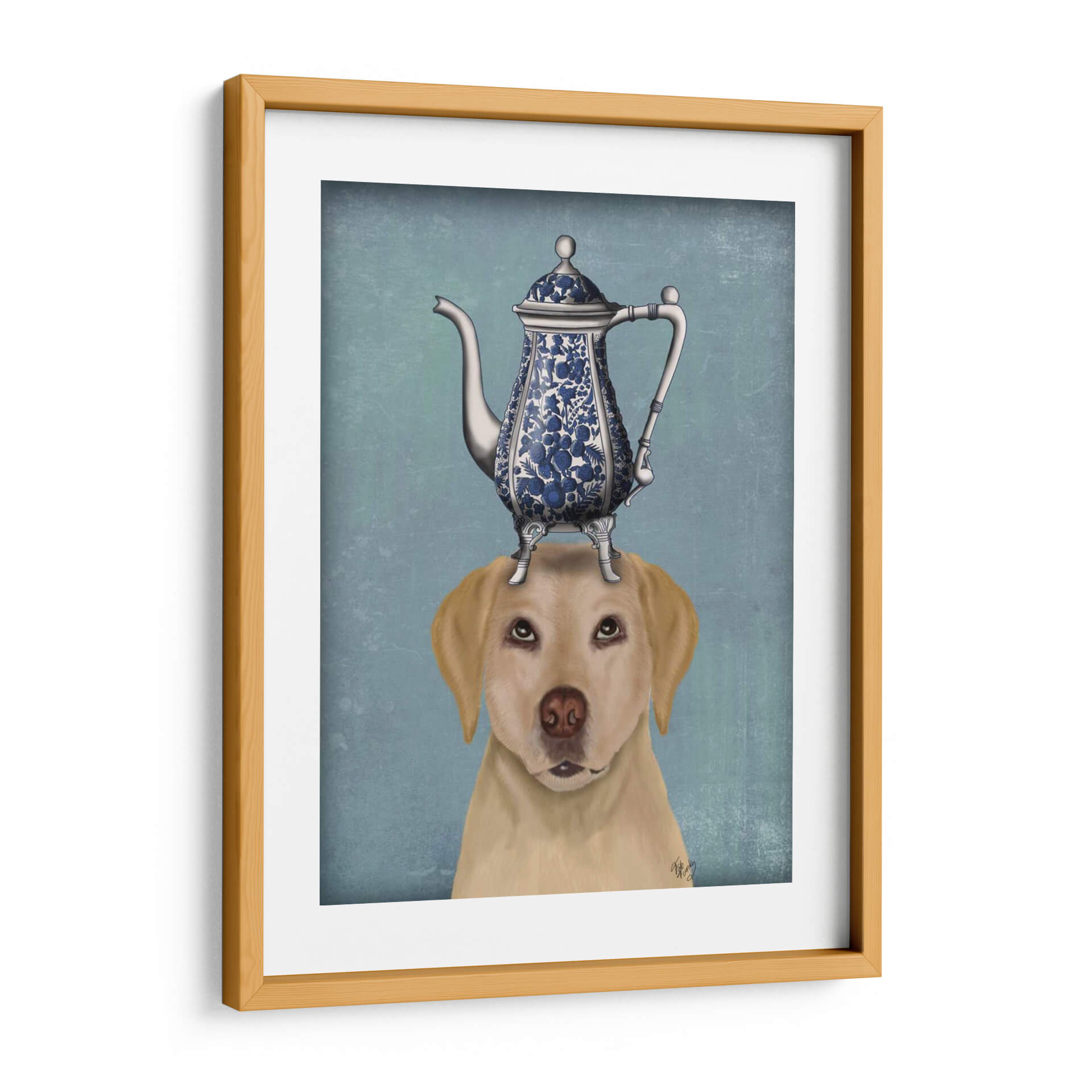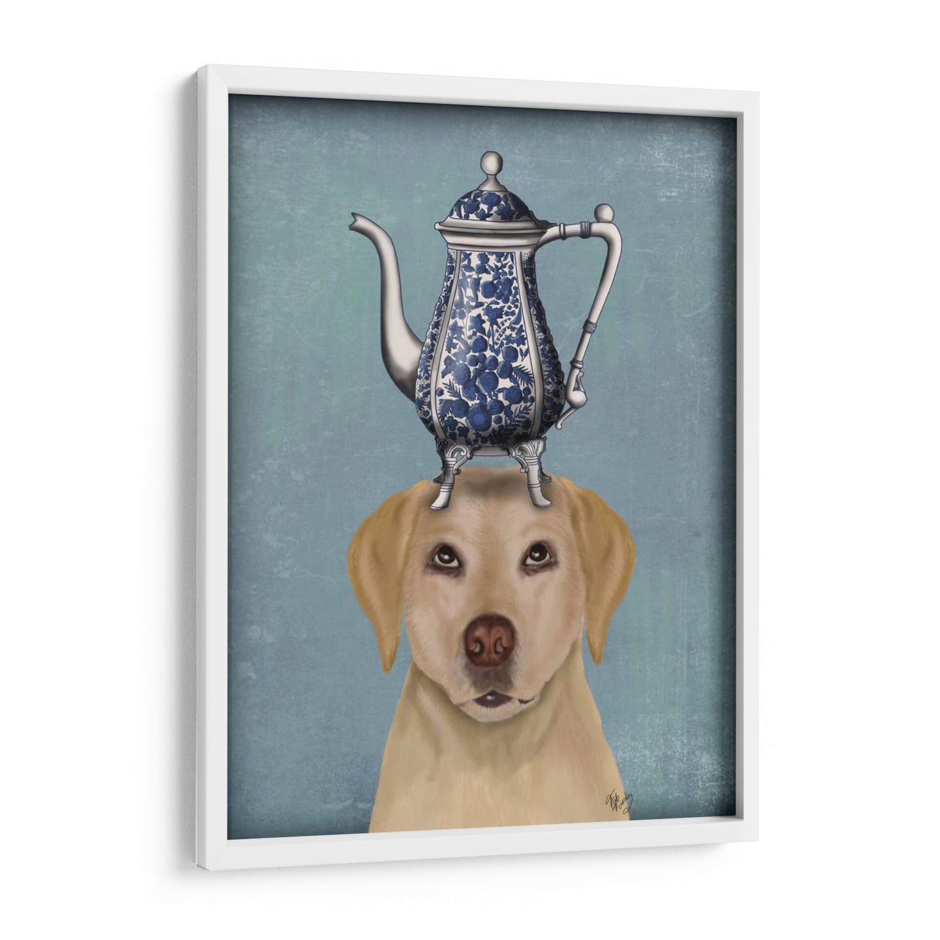 Descubre el encanto peculiar de 'Labrador Con Tetera', una obra de arte digital que fusiona la ternura de un perro labrador con la elegancia de una tetera antigua. Esta pieza única, creada por Fab Funky, presenta a un adorable labrador con una tetera de porcelana azul y blanca equilibrada sobre su cabeza. La paleta de colores se centra en tonos azules serenos y el cálido pelaje del perro, creando un contraste visual intrigante y armonioso. El fondo texturizado en azul verdoso aporta profundidad y un aire de misterio, complementando la expresión gentil del animal. El estilo de la ilustración es detallado y realista en cuanto a la fisionomía del perro y la tetera, pero la composición general resulta surrealista y lúdica. Esta obra es ideal para añadir un toque de humor sofisticado y personalidad a cualquier espacio, ya sea una sala de estar, una oficina o una cocina. Transmite una sensación de calma juguetona y originalidad, perfecta para amantes de los perros, coleccionistas de arte peculiar y cualquiera que busque una pieza decorativa que genere conversación. 'Labrador Con Tetera' es más que un cuadro; es una declaración de estilo que evoca sonrisas y admiración.