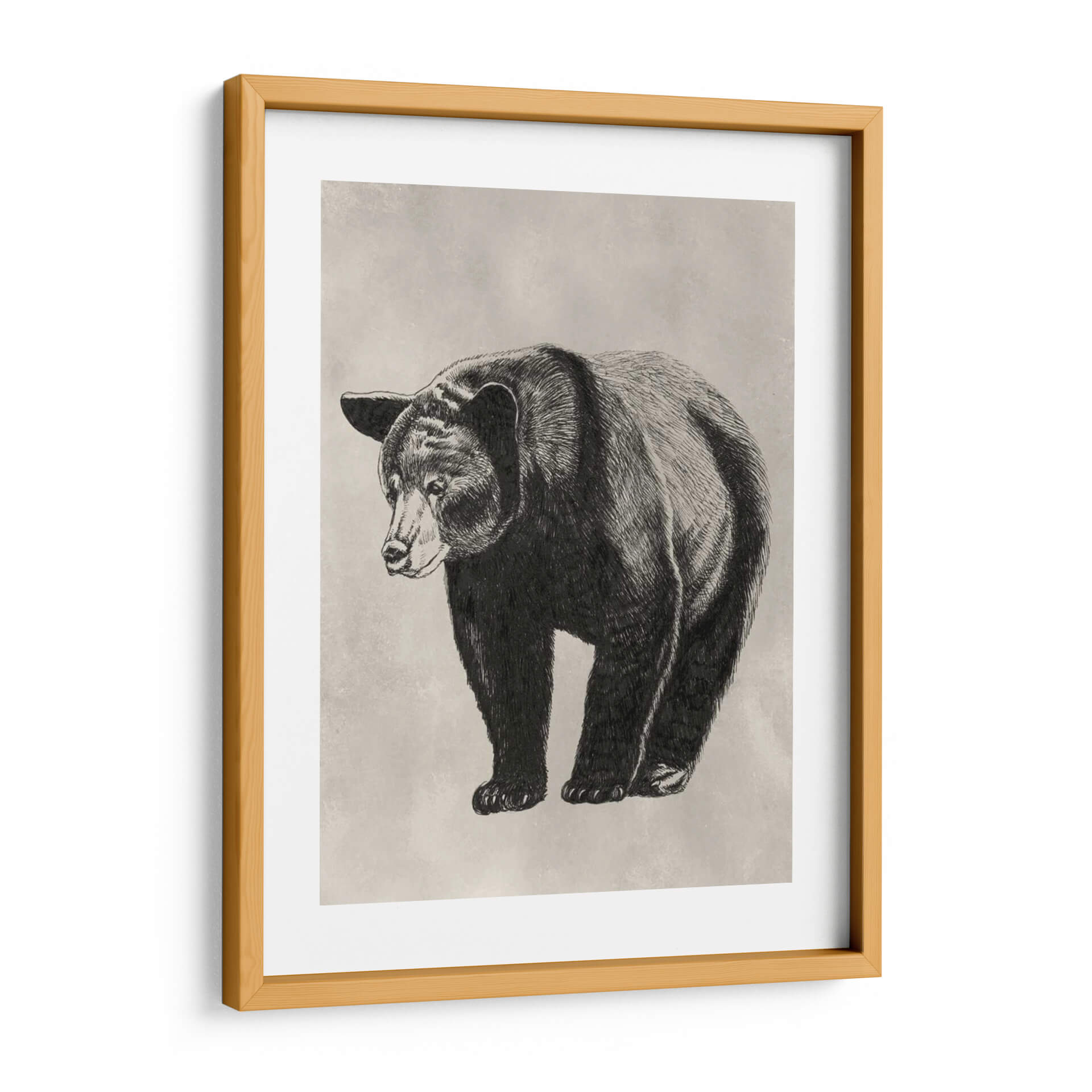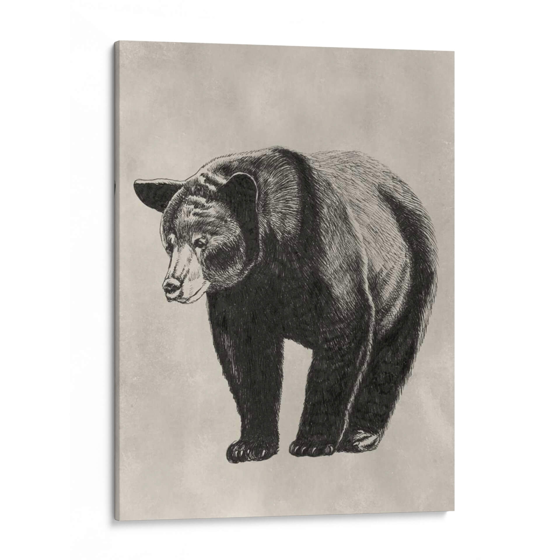 Este cautivador cuadro decorativo de un oso, titulado 'Lápiz Y Tinta Oso Ii' por Naomi McCavitt, evoca una sensación de fuerza tranquila y la belleza cruda de la naturaleza. La obra presenta un detallado dibujo a lápiz y tinta de un oso, capturado con trazos finos que resaltan la textura de su pelaje y la solidez de su figura. La paleta de colores se basa en tonos neutros y apagados, con un fondo texturizado que recuerda al papel antiguo o a un muro de piedra, creando una atmósfera atemporal y sofisticada. La composición se centra en el animal, presentado de manera frontal pero con una leve inclinación de cabeza que le confiere una personalidad introspectiva. Es una pieza de arte de pared ideal para aquellos que admiran la fauna y buscan añadir un toque de elegancia rústica a su hogar u oficina. Este cuadro decorativo es perfecto para espacios que buscan un punto focal orgánico y sereno, aportando carácter sin abrumar. La delicadeza del dibujo a mano alzada contrasta con la imponencia del animal, haciendo de esta obra una adición única a cualquier colección de arte contemporáneo.