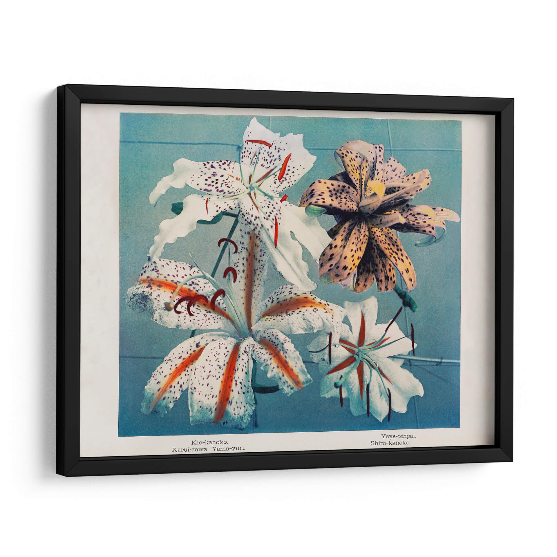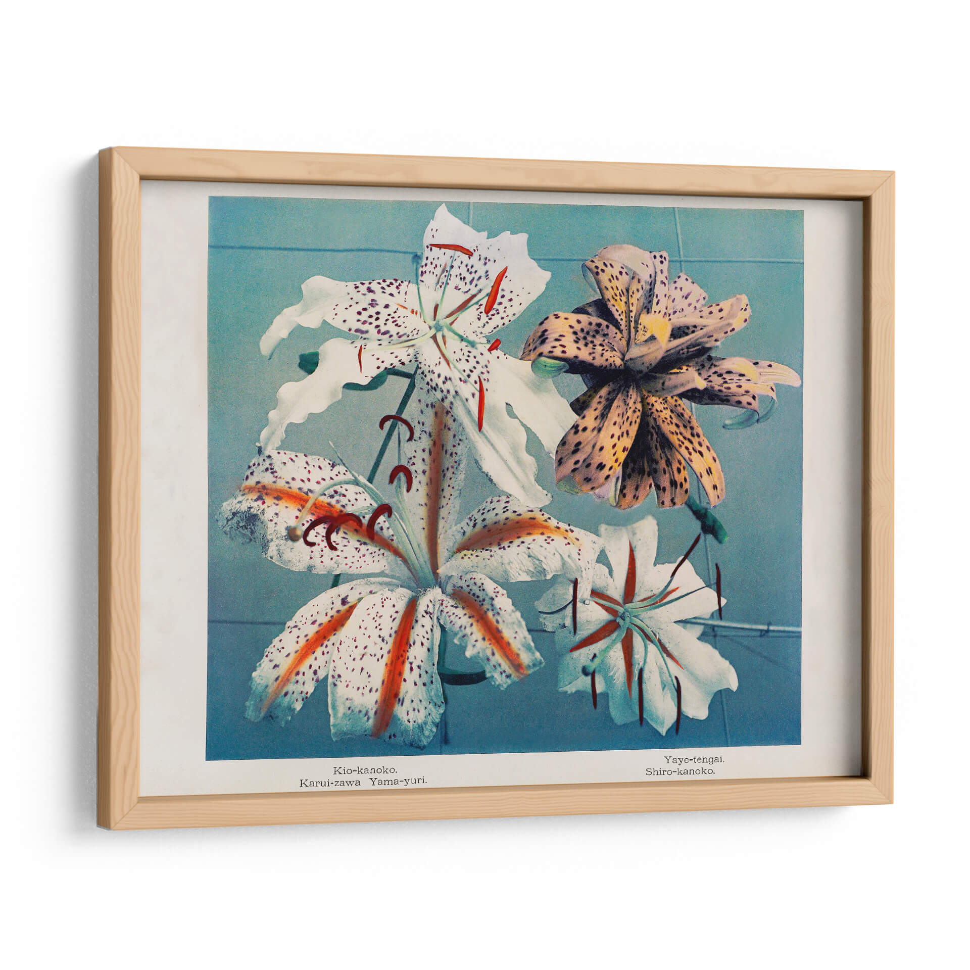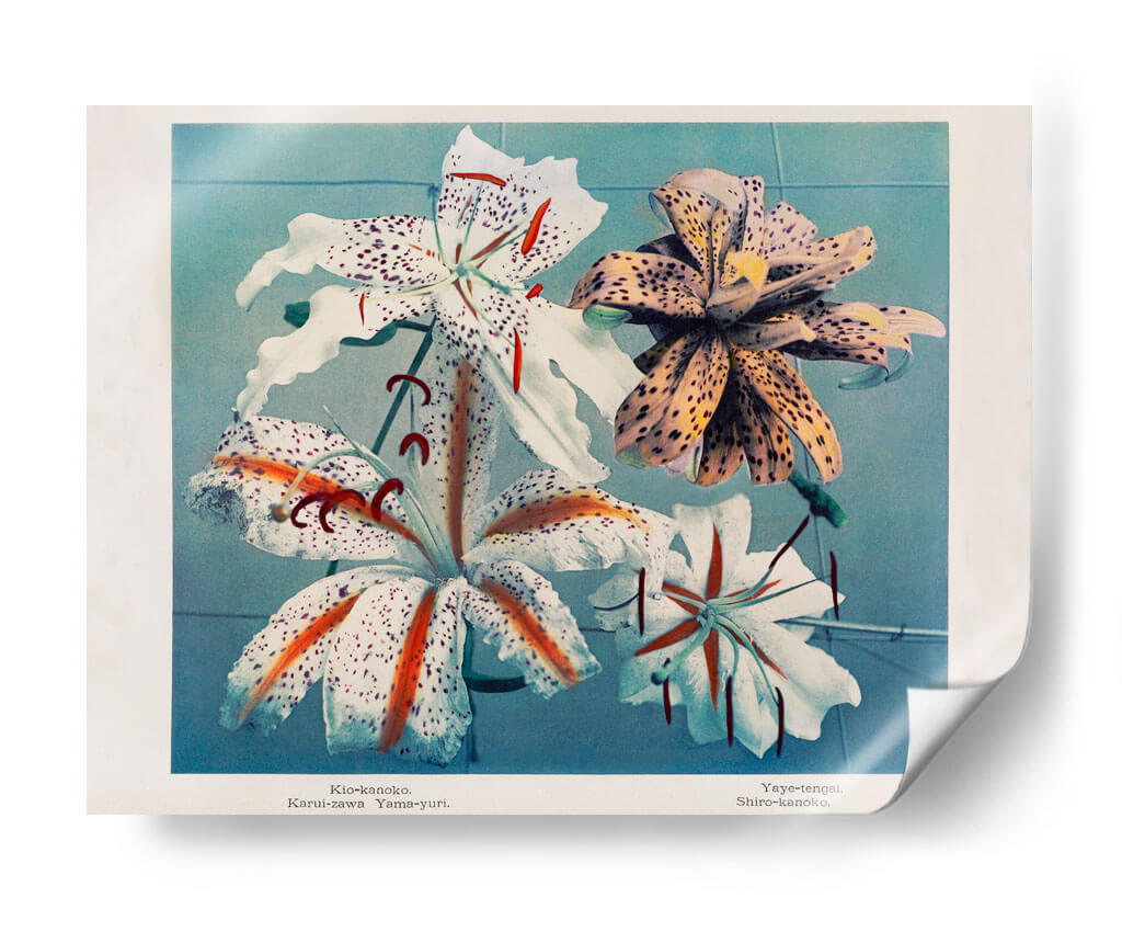 Sumérgete en la delicada belleza del lirio con esta exquisita obra de arte floral, 'Lirio - V', del aclamado artista Ogawa Kazumasa. Capturando la esencia de estas majestuosas flores, la pieza presenta varios lirios en diferentes etapas de floración, con sus pétalos blancos salpicados de vibrantes tonos naranjas y marrones moteados. La composición, con un suave fondo azul verdoso, realza la elegancia y el detalle de cada flor, creando una atmósfera de serenidad y contemplación. Este cuadro decorativo es una oda a la naturaleza y a la estética japonesa, ideal para añadir un toque de sofisticación y calma a cualquier espacio, ya sea un hogar o una oficina. La intrincada textura de los pétalos y el contraste de colores invitan a la admiración, haciendo de esta obra un punto focal cautivador. Perfecta para quienes aprecian el arte botánico y buscan infundir sus ambientes con una sensación de paz y belleza natural. Descubre la armonía y el detalle que Ogawa Kazumasa plasma en este impresionante cuadro de lirios, una pieza que trasciende el tiempo y el espacio.