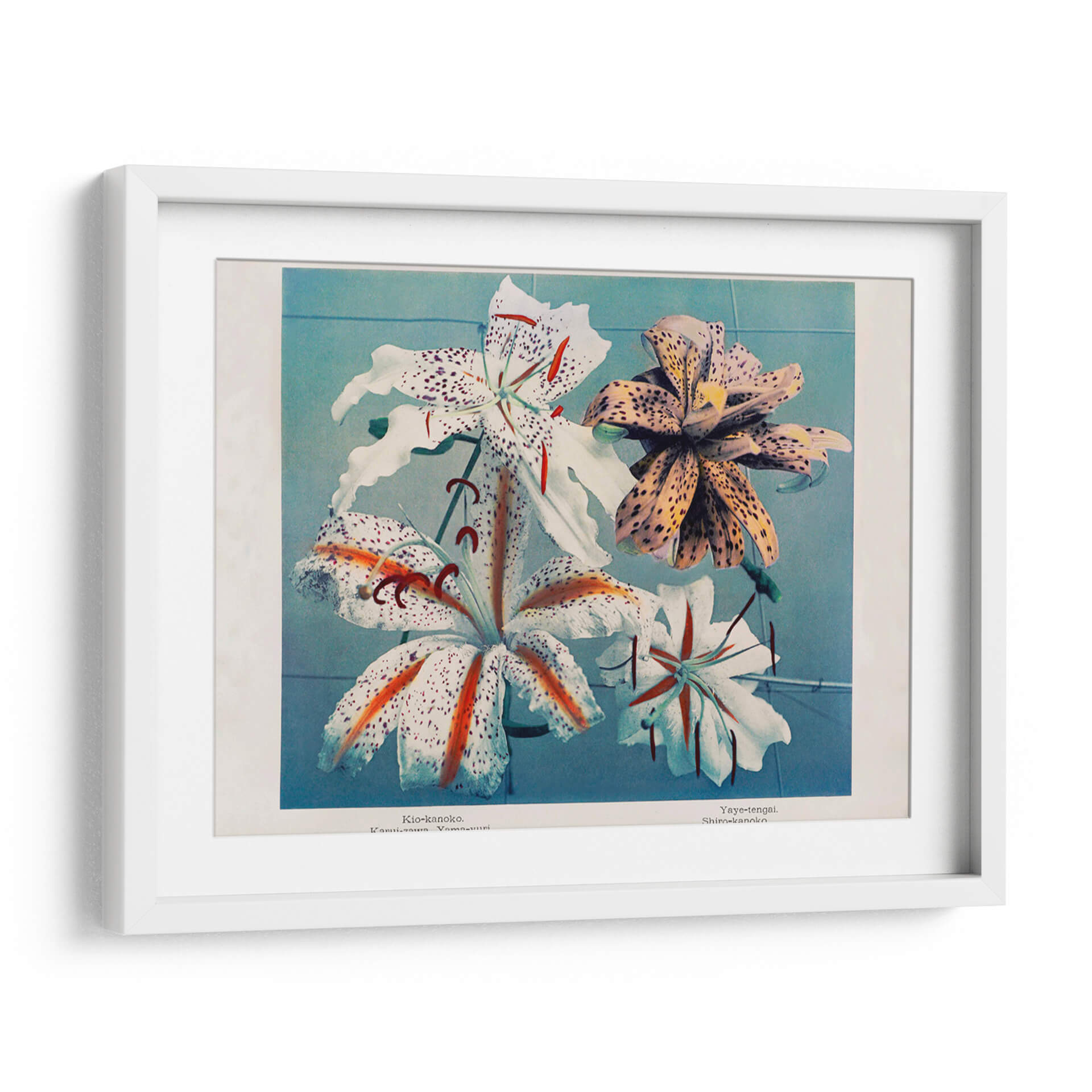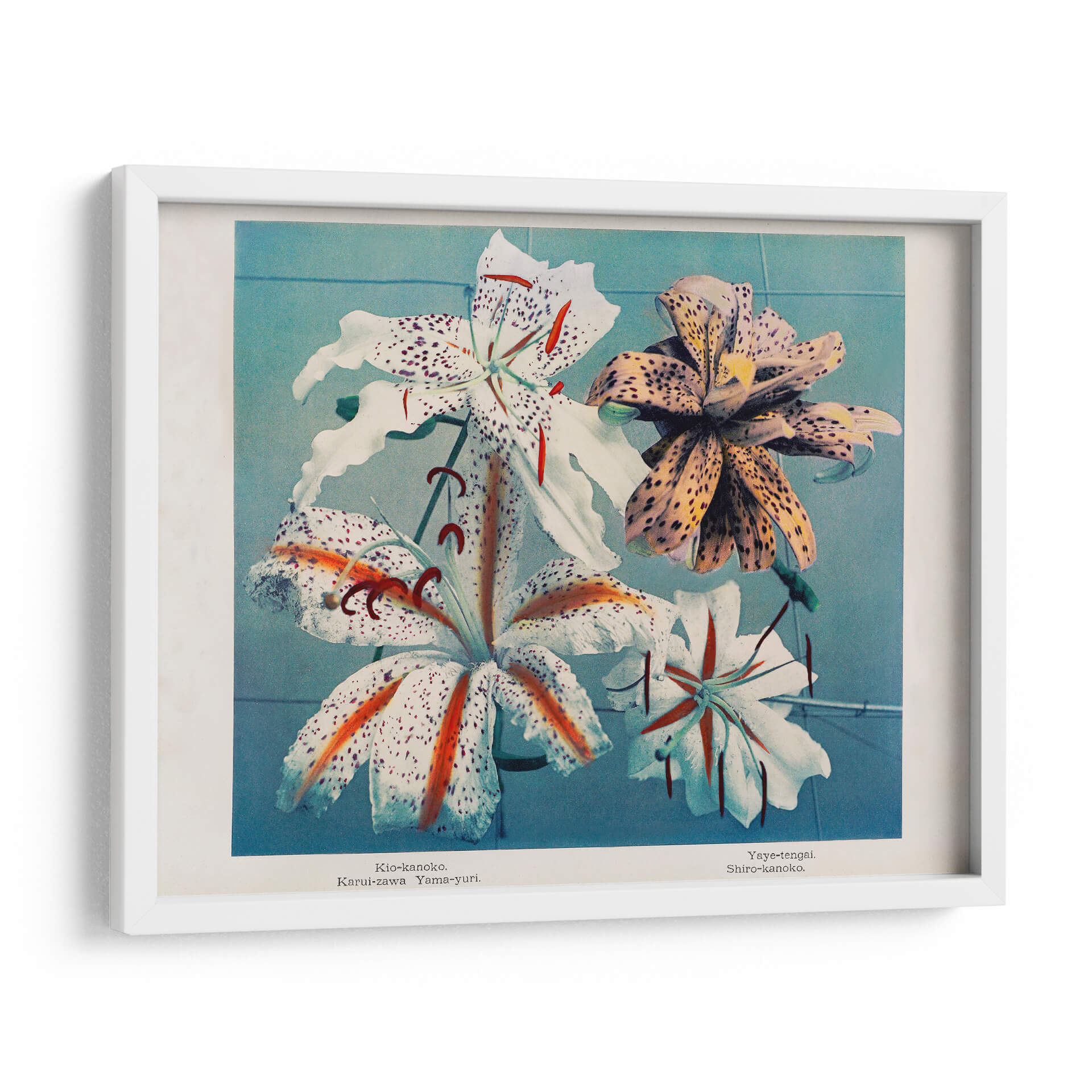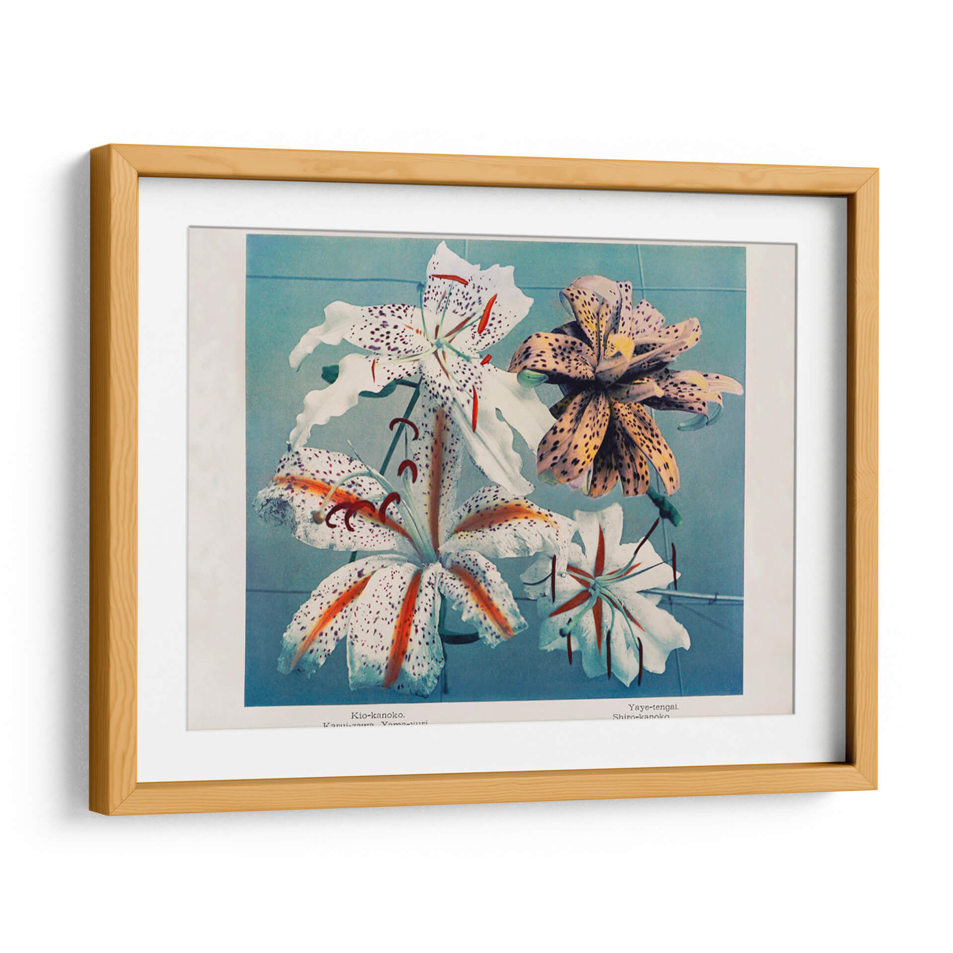 Sumérgete en la delicada belleza del lirio con esta exquisita obra de arte floral, 'Lirio - V', del aclamado artista Ogawa Kazumasa. Capturando la esencia de estas majestuosas flores, la pieza presenta varios lirios en diferentes etapas de floración, con sus pétalos blancos salpicados de vibrantes tonos naranjas y marrones moteados. La composición, con un suave fondo azul verdoso, realza la elegancia y el detalle de cada flor, creando una atmósfera de serenidad y contemplación. Este cuadro decorativo es una oda a la naturaleza y a la estética japonesa, ideal para añadir un toque de sofisticación y calma a cualquier espacio, ya sea un hogar o una oficina. La intrincada textura de los pétalos y el contraste de colores invitan a la admiración, haciendo de esta obra un punto focal cautivador. Perfecta para quienes aprecian el arte botánico y buscan infundir sus ambientes con una sensación de paz y belleza natural. Descubre la armonía y el detalle que Ogawa Kazumasa plasma en este impresionante cuadro de lirios, una pieza que trasciende el tiempo y el espacio.