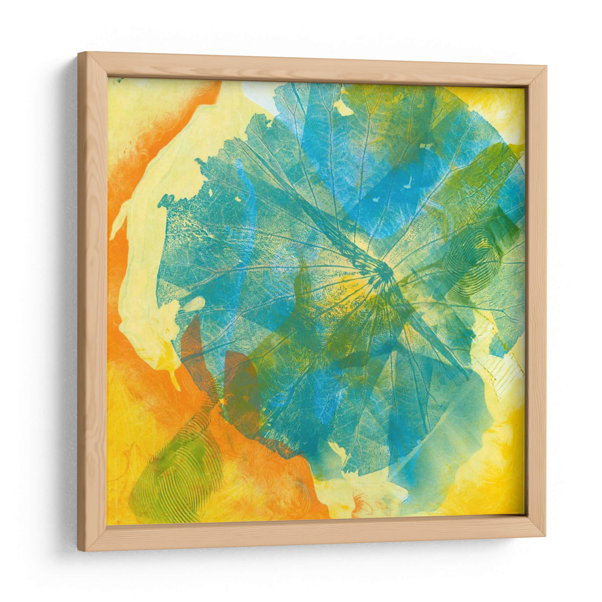 Sumérgete en la vibrante esencia de "Lotus II Monotype", una obra de arte contemporáneo que captura la delicada belleza de la naturaleza con un toque moderno. Este cuadro decorativo presenta una intrincada superposición de texturas y colores, donde los tonos azules y verdes profundos se entrelazan con vibrantes amarillos y naranjas, evocando la frescura de un estanque al amanecer o la calidez de un día soleado. La composición se centra en la forma orgánica de una flor de loto, representada a través de la técnica de monotipo, que confiere a la pieza una cualidad única y efímera. Las líneas detalladas de las hojas y los pétalos se fusionan con formas abstractas y pinceladas texturizadas, creando una profundidad visual cautivadora. Esta obra es perfecta para añadir un toque de color y serenidad a cualquier espacio, desde salas de estar modernas hasta oficinas inspiradoras o dormitorios tranquilos. "Lotus II Monotype" no es solo un elemento decorativo, sino una ventana a la armonía entre la forma natural y la expresión artística, ideal para quienes buscan arte de pared que inspire y revitalice su entorno diario.