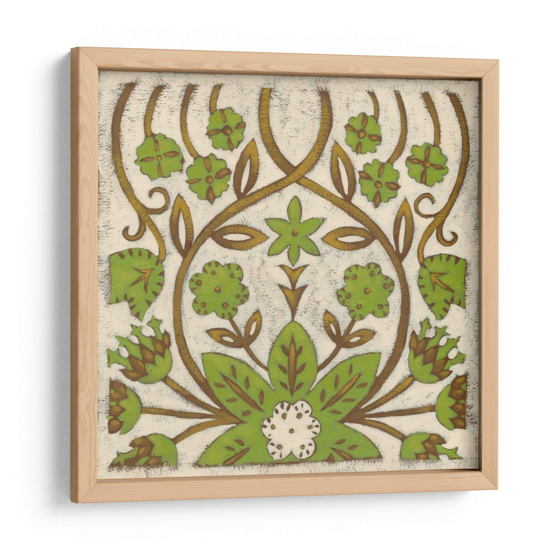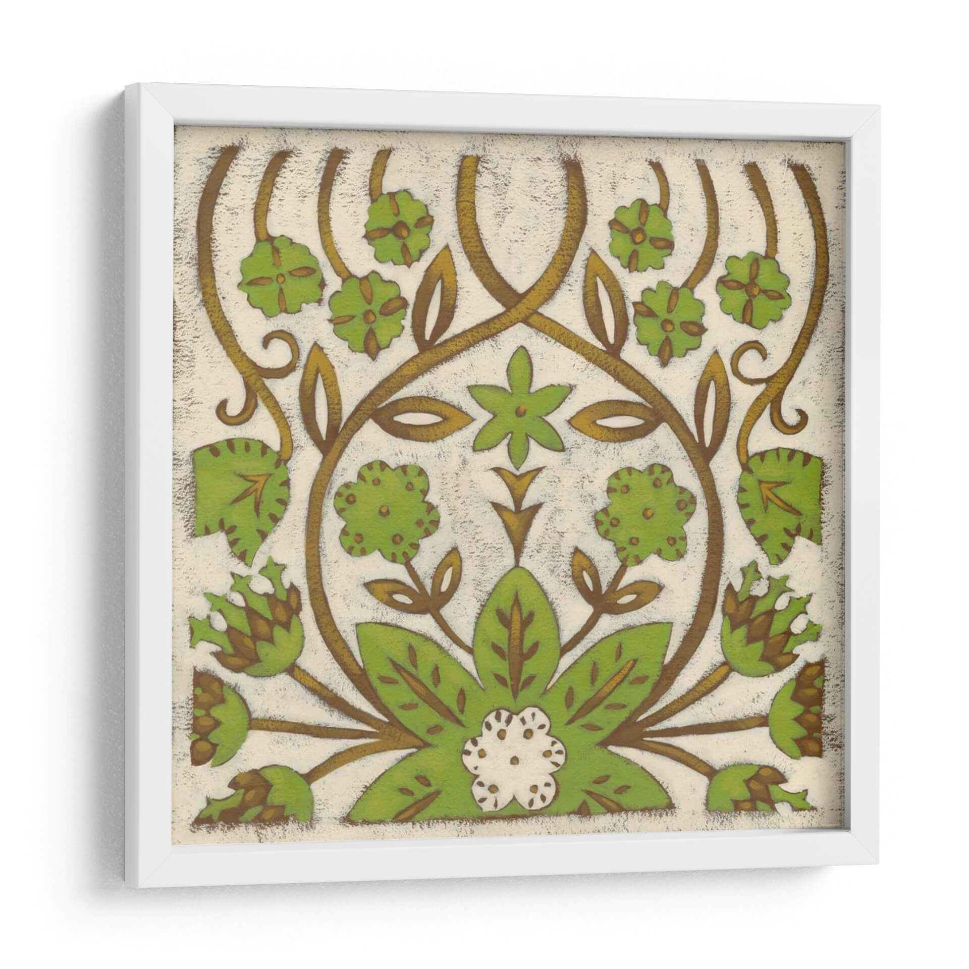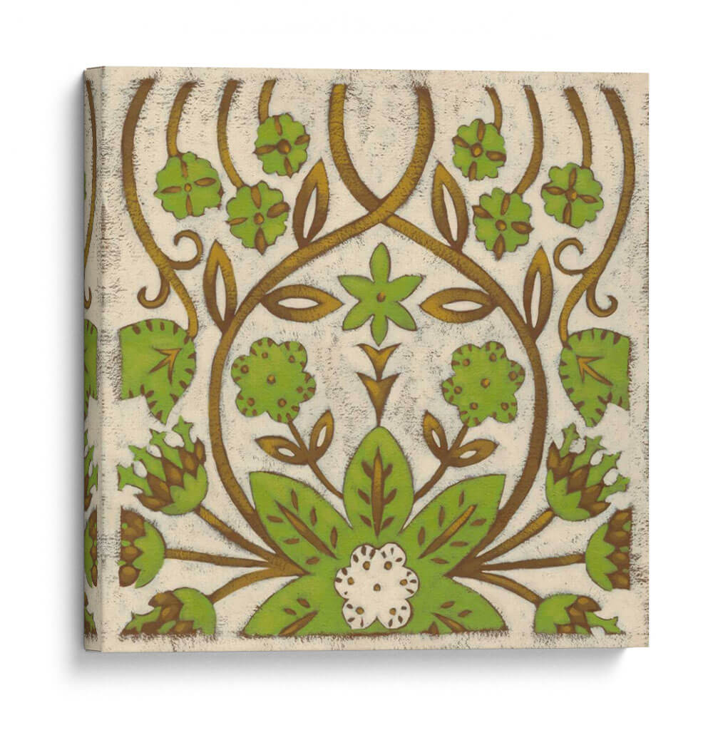 Embellece tu hogar con el cautivador cuadro decorativo "Lotus Tapestry I" de Chariklia Zarris. Esta obra de arte, inspirada en motivos botánicos y un estilo que evoca la artesanía tradicional, presenta una intrincada composición floral en tonos verdes y dorados sobre un fondo texturizado de color crema. Las delicadas flores y hojas se entrelazan en un diseño simétrico y armonioso, creando una sensación de calma y equilibrio. La paleta de colores suaves y terrosos, con toques vibrantes de verde y un elegante dorado, aporta calidez y sofisticación a cualquier espacio. "Lotus Tapestry I" es ideal para añadir un toque de naturaleza estilizada y elegancia atemporal a tu sala de estar, dormitorio o estudio. Su diseño detallado y su atmósfera serena invitan a la contemplación, transformando tu pared en un jardín de tranquilidad. Descubre la belleza de este cuadro decorativo y dale vida a tus ambientes con arte que inspira serenidad y estilo.