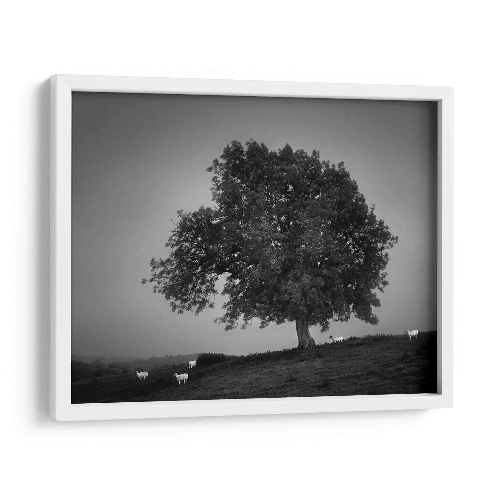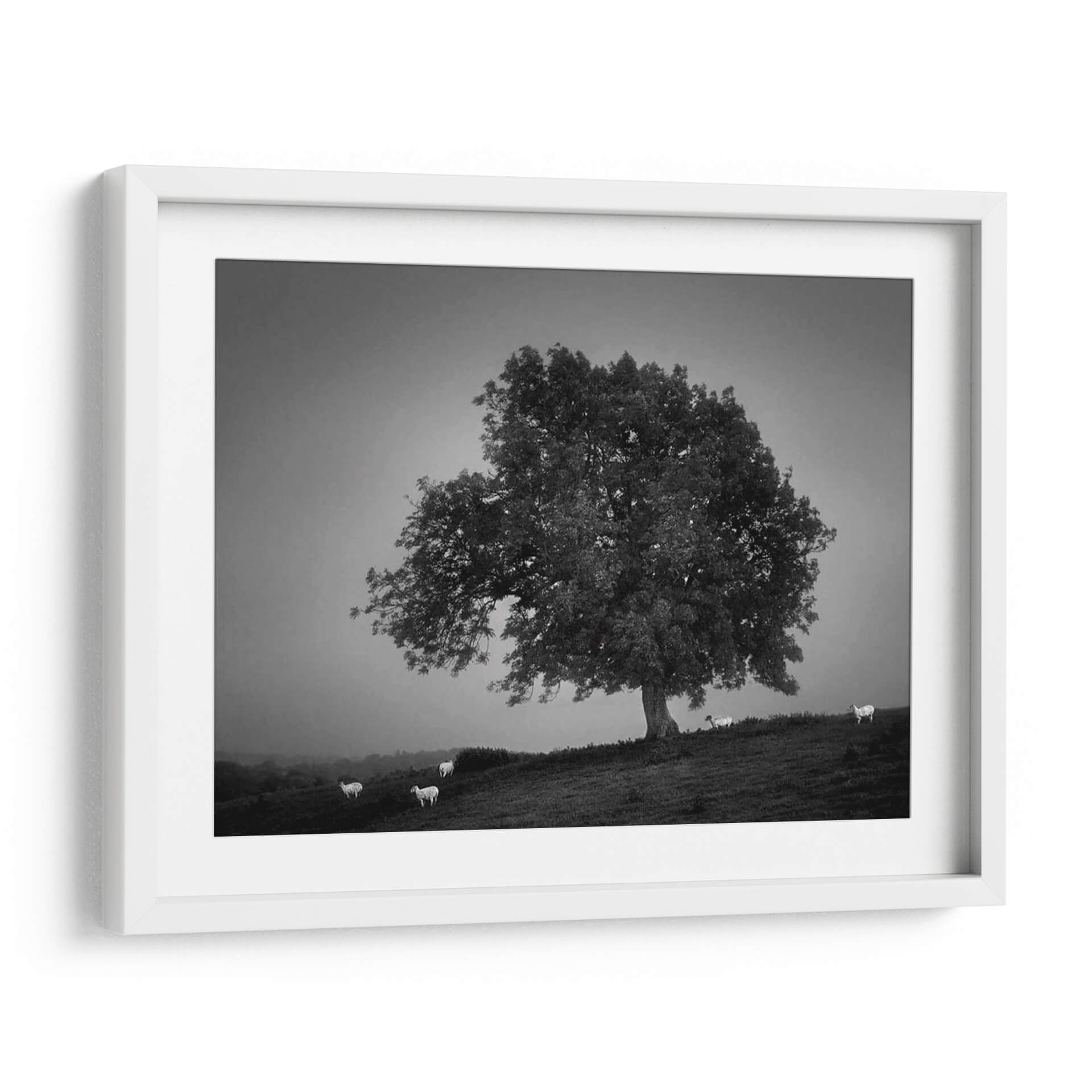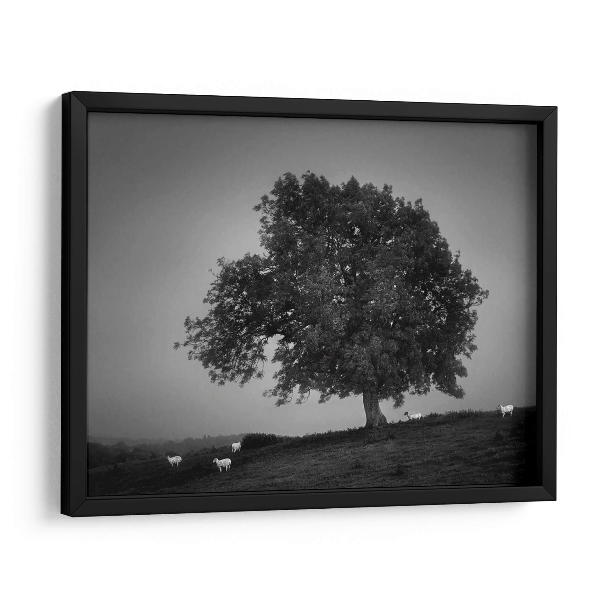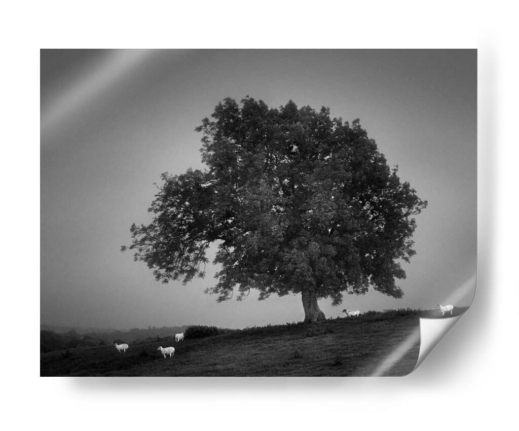 Captura la serenidad y la majestuosidad de la naturaleza con este evocador cuadro decorativo 'Luz De La Tarde Me' de Martin Henson. La obra presenta un imponente árbol solitario en un paisaje brumoso, rodeado por algunas ovejas que añaden una sensación de tranquilidad y vida pastoral. La paleta de colores monocromática, con sus sutiles gradaciones de grises, crea una atmósfera contemplativa y atemporal, ideal para cualquier espacio que busque un toque de calma y elegancia rústica. La composición, con el árbol como protagonista dominante y el suave desenfoque del fondo, invita a la reflexión y a la conexión con el entorno natural. Este cuadro decorativo es perfecto para salas de estar, dormitorios u oficinas que deseen transmitir paz y sofisticación. Su estilo fotográfico, con un enfoque nítido en el árbol y las ovejas, pero un fondo etéreo, aporta profundidad y carácter. Transforma tu hogar en un santuario de tranquilidad con esta pieza artística única que evoca la belleza serena de un atardecer en el campo. Una adición inspiradora a tu colección de arte de pared.