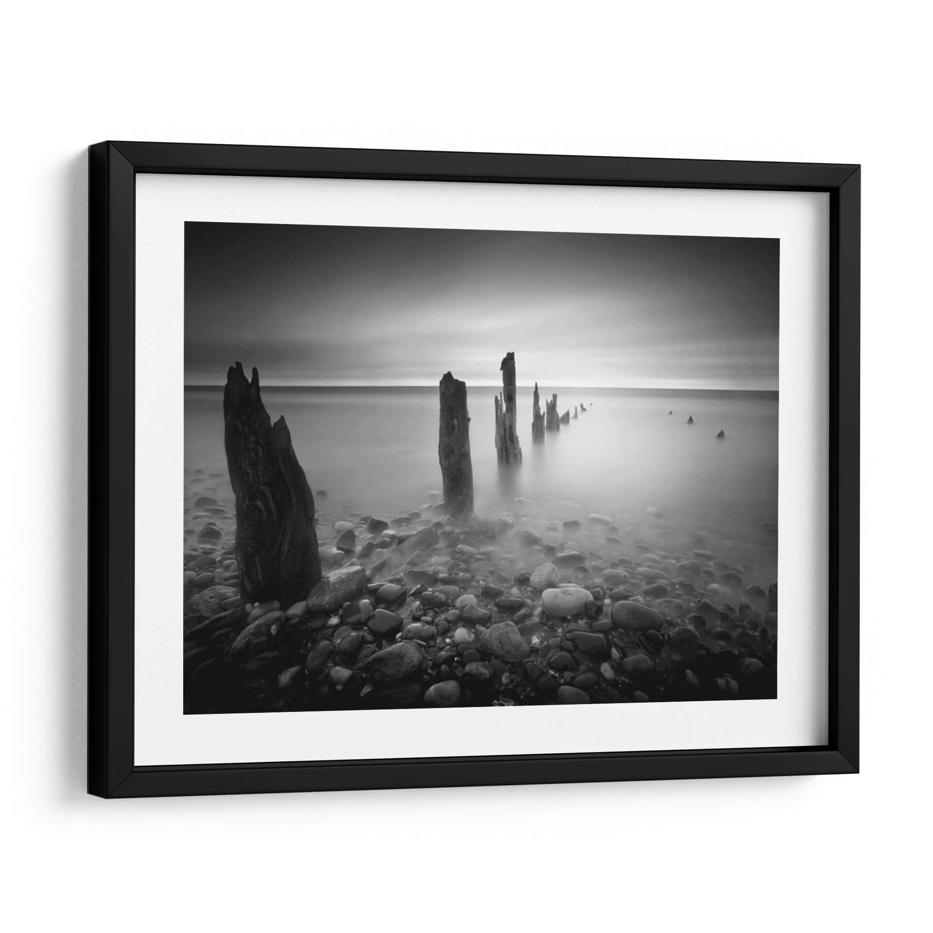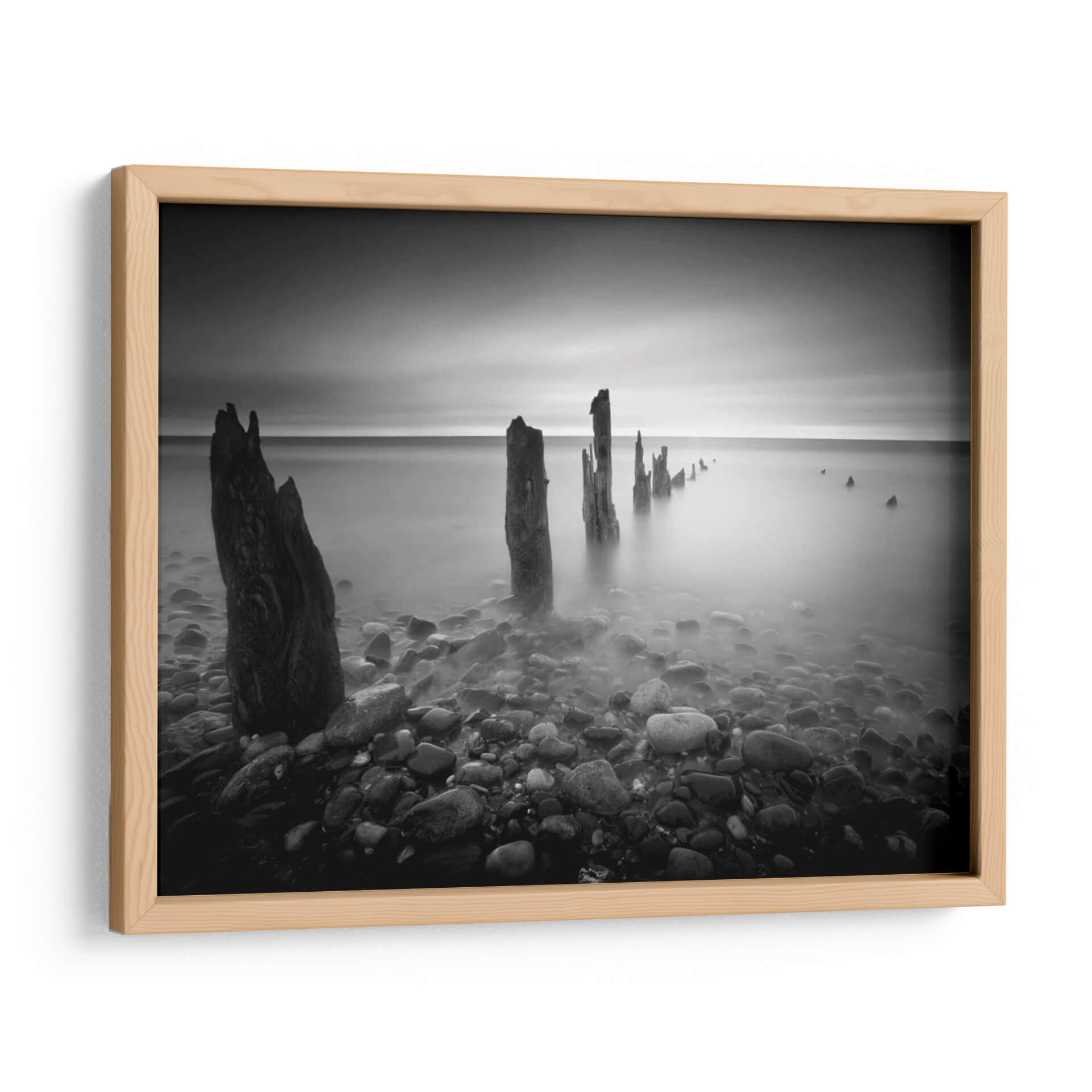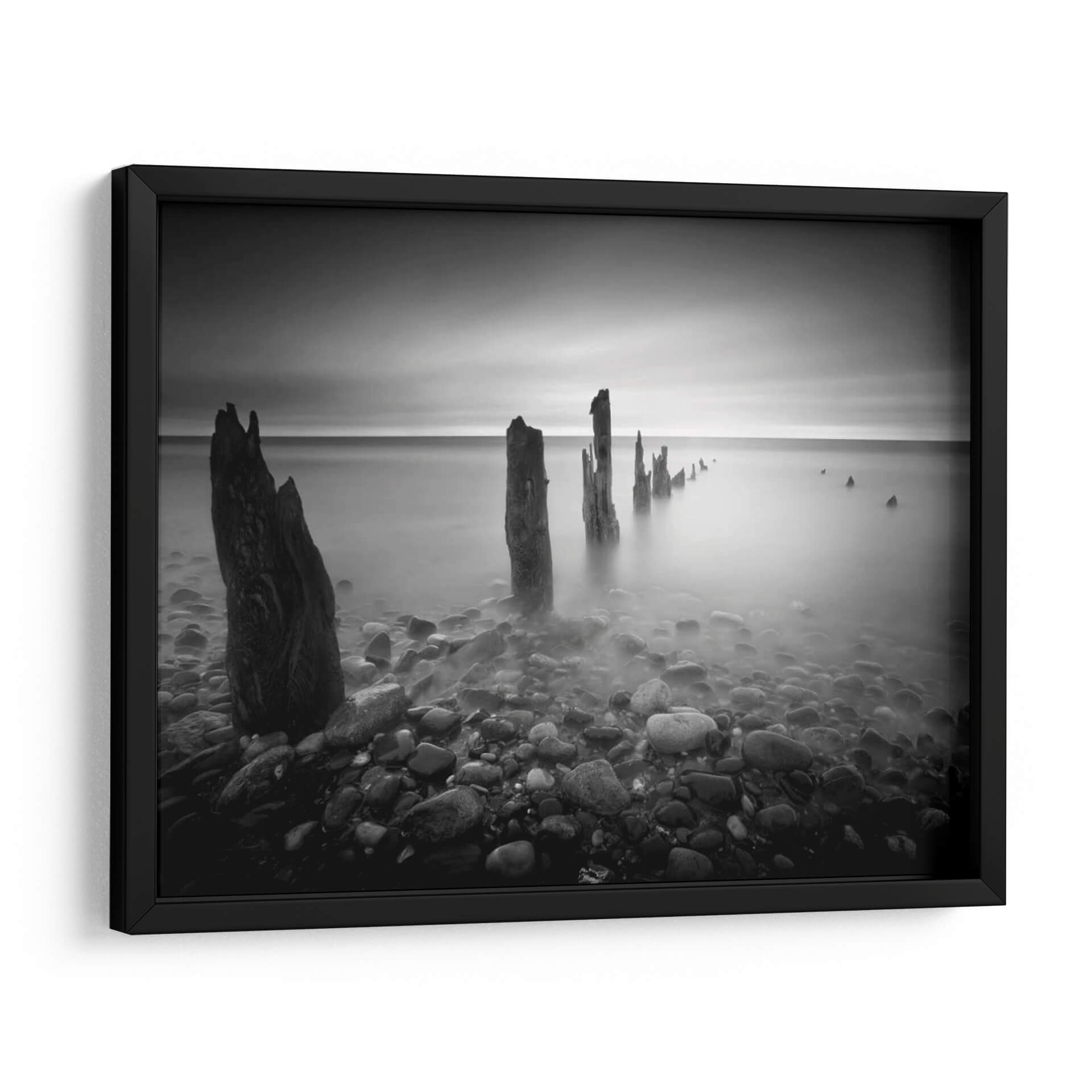Sumérgete en la atmósfera melancólica y serena de "Luz Tenue", una obra maestra fotográfica de Martin Henson. Esta pieza evoca la quietud de un paisaje costero al amanecer o atardecer, capturada en un estilo monocromático que resalta la textura y la forma. Los restos de antiguas estructuras de madera emergen del agua y se alinean en el horizonte, creando una sensación de historia y temporalidad. La paleta de grises, desde los negros profundos de los troncos hasta los blancos etéreos del cielo y el mar, otorga a la imagen una cualidad atemporal y contemplativa. Las piedras pulidas por el agua en primer plano añaden detalle y anclan la composición. "Luz Tenue" es ideal para aquellos que buscan infundir sus espacios con una sensación de calma y reflexión. Este cuadro decorativo es perfecto para salones modernos, oficinas minimalistas o dormitorios donde se desea un toque de serenidad y elegancia. Su composición lineal y la profundidad creada por la bruma marina invitan a la introspección, convirtiendo esta obra en un punto focal que inspira paz y tranquilidad. Añade esta fotografía artística a tu colección y transforma tu hogar en un santuario de calma.