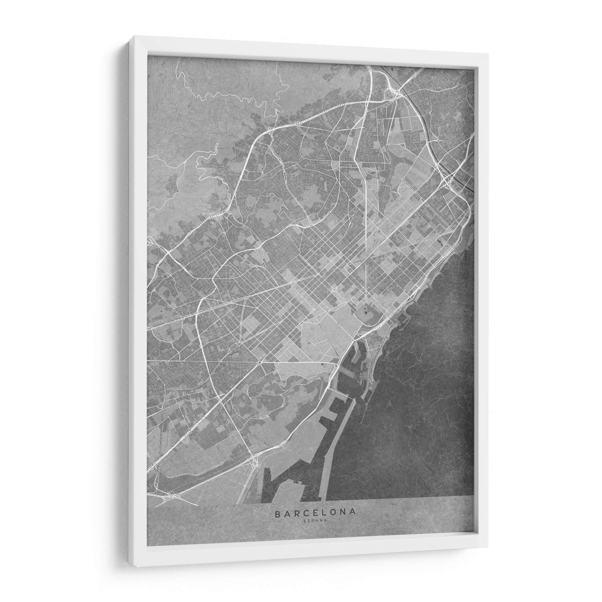 Transforma tu espacio con este evocador cuadro decorativo del mapa de Barcelona en estilo vintage gris. Diseñada por Rosana Laiz Blursbyai, esta obra captura la esencia de la ciudad condal a través de un detallado trazado urbano que se funde con un aire nostálgico. La paleta de grises, con sus sutiles variaciones tonales, confiere una atmósfera de sofisticación y calma, perfecta para integrarse en cualquier esquema decorativo, desde el más moderno hasta el más clásico. Las líneas blancas nítidas que delinean las calles, autopistas y el puerto crean un contraste visual dinámico, invitando a la contemplación y al descubrimiento de los intrincados detalles de la geografía urbana. Este mapa de Barcelona no es solo una representación geográfica, sino una pieza de arte que evoca recuerdos, sueños de viaje o la conexión personal con esta vibrante ciudad. Su diseño estilizado y su acabado vintage lo convierten en el punto focal ideal para salones, estudios u oficinas, aportando un toque de elegancia contemporánea y un aire de sofisticación intelectual. Añade un sentido de lugar y una estética atemporal a tu hogar u oficina con este impresionante cuadro decorativo que celebra la belleza única de Barcelona.