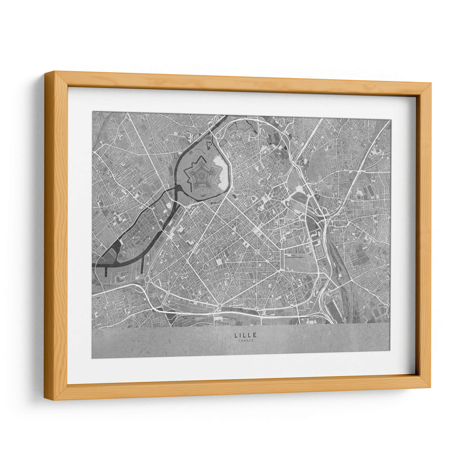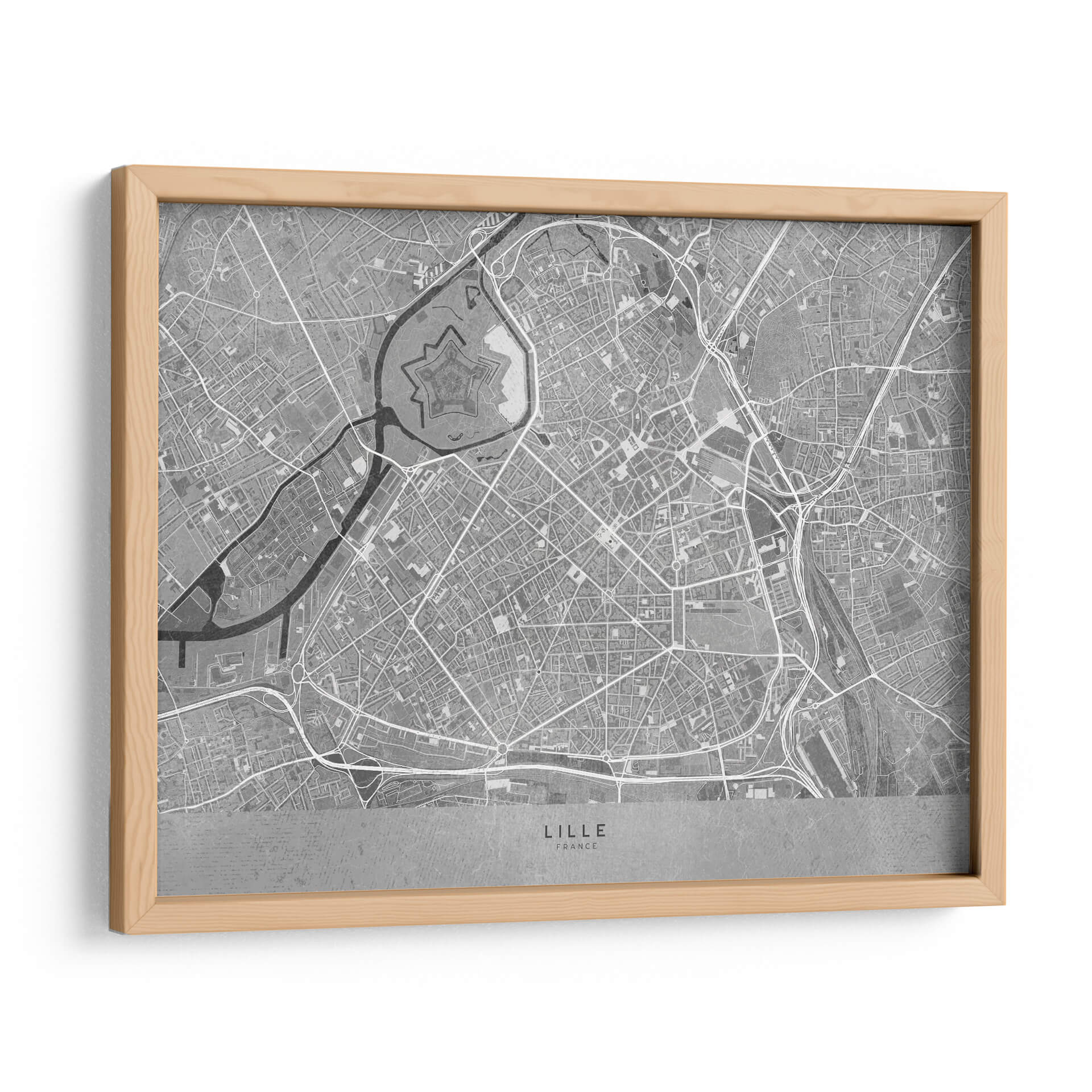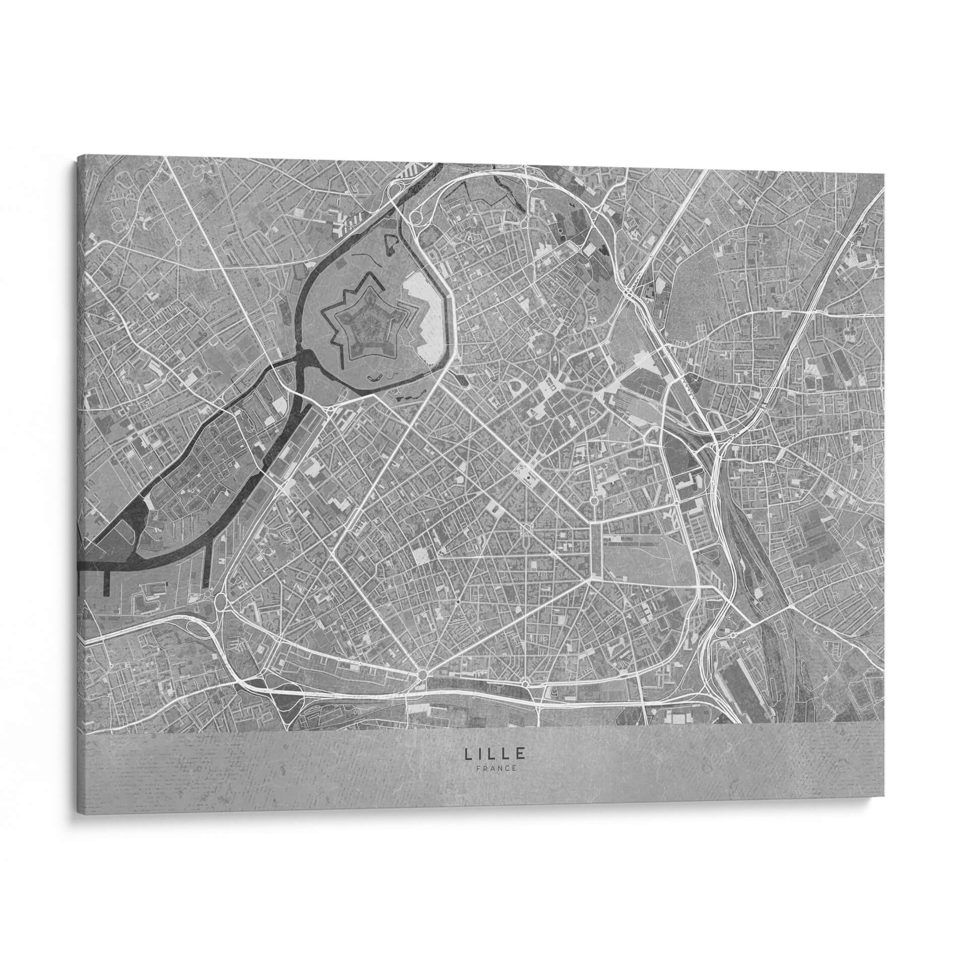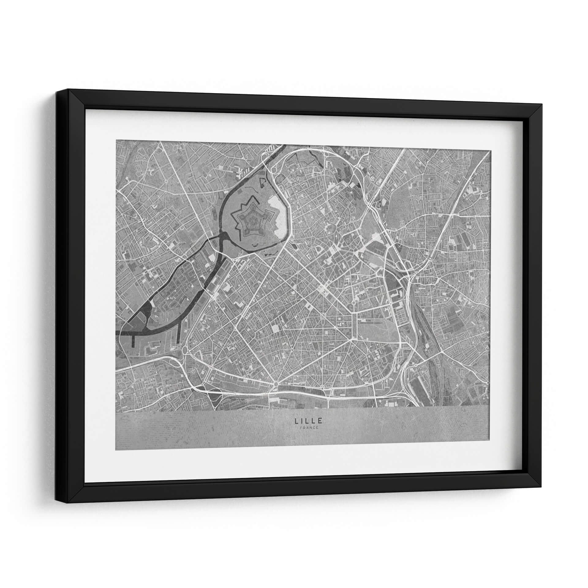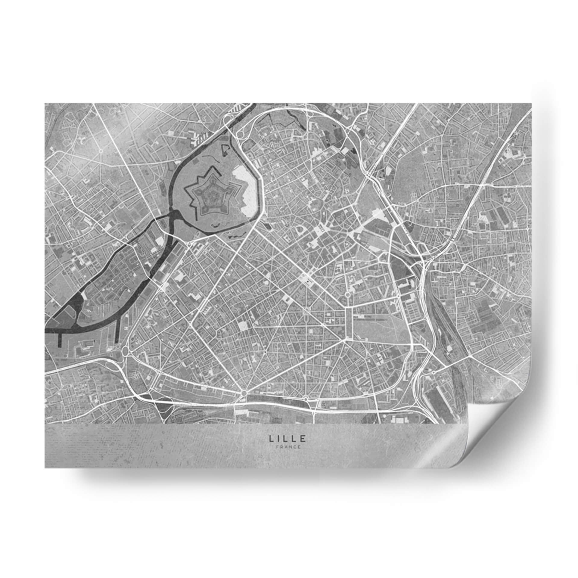 Mapa vintage gris del centro de Lille, Francia - Rosana Laiz Blursbyai