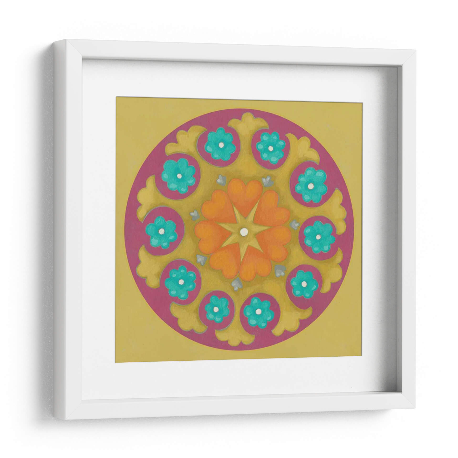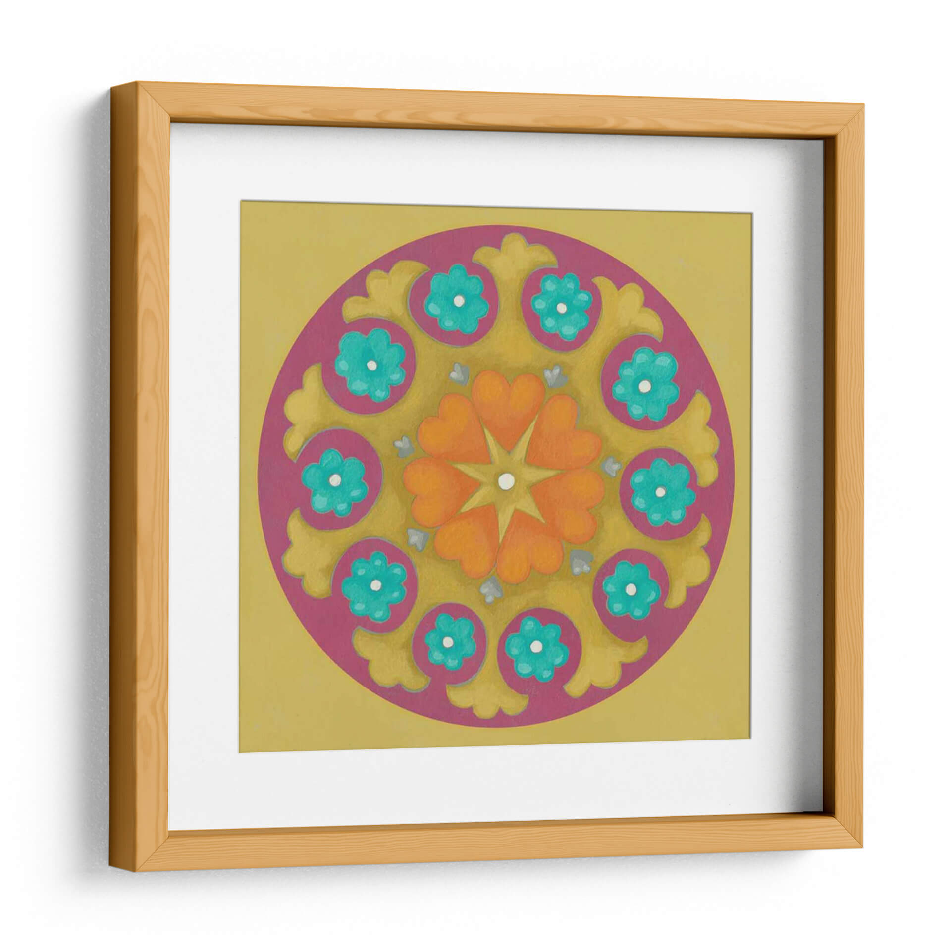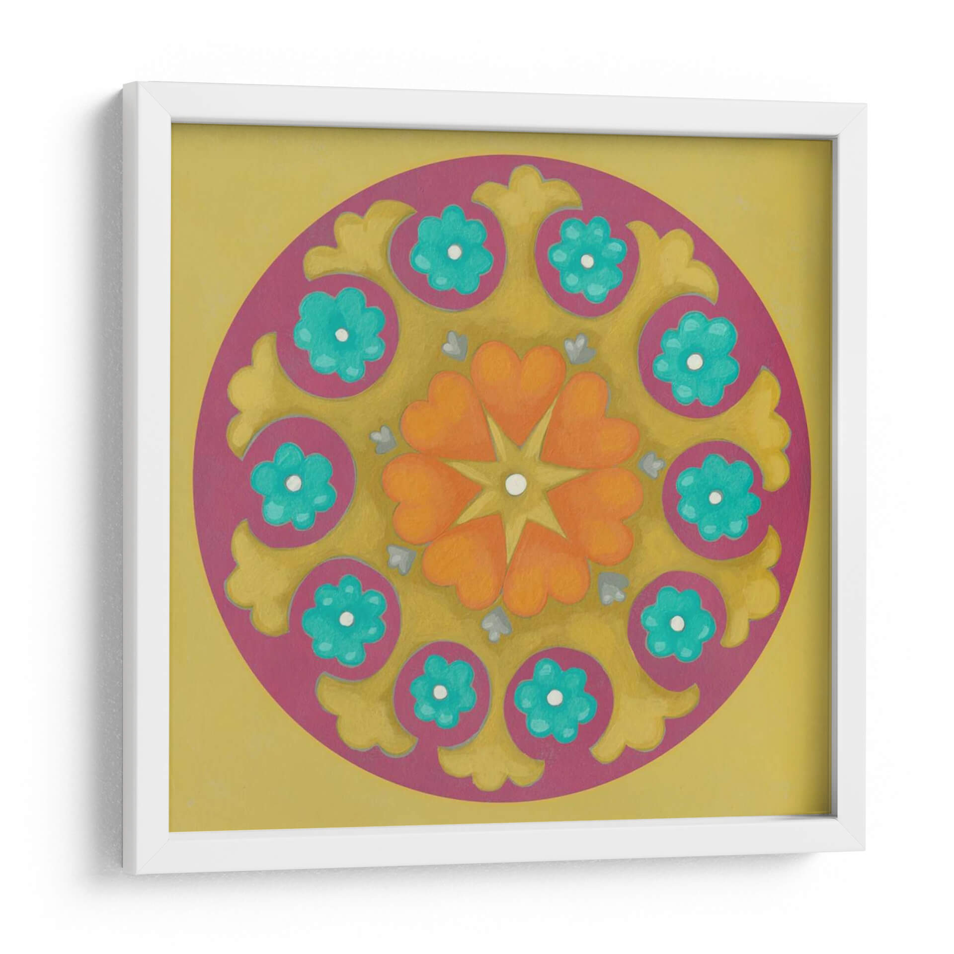 Embellece tu hogar con la vibrante energía del cuadro decorativo "Me Celebración Suzani" de Chariklia Zarris. Esta obra de arte presenta una cautivadora composición circular inspirada en los tradicionales motivos Suzani, reimaginados con un toque contemporáneo y audaz. El diseño se despliega en un armonioso patrón que evoca festividad y alegría, centrado en una flor estilizada de pétalos naranjas que irradia calidez. Alrededor, delicadas flores en tonos turquesa se asoman entre volutas en color magenta, todo ello sobre un fondo ocre que aporta luminosidad y un matiz terrenal. La paleta de colores, rica y contrastante, crea un punto focal dinámico que atrae la mirada y estimula los sentidos. Ideal para añadir un toque de color y personalidad a salones modernos, comedores o incluso a espacios de trabajo que busquen inspirar creatividad. Este cuadro decorativo no es solo una pieza de arte, sino una ventana a una celebración de la vida y la cultura, perfecta para quienes aprecian la artesanía detallada y el diseño lleno de carácter. Añade un acento de diseño étnico y moderno a tu decoración.