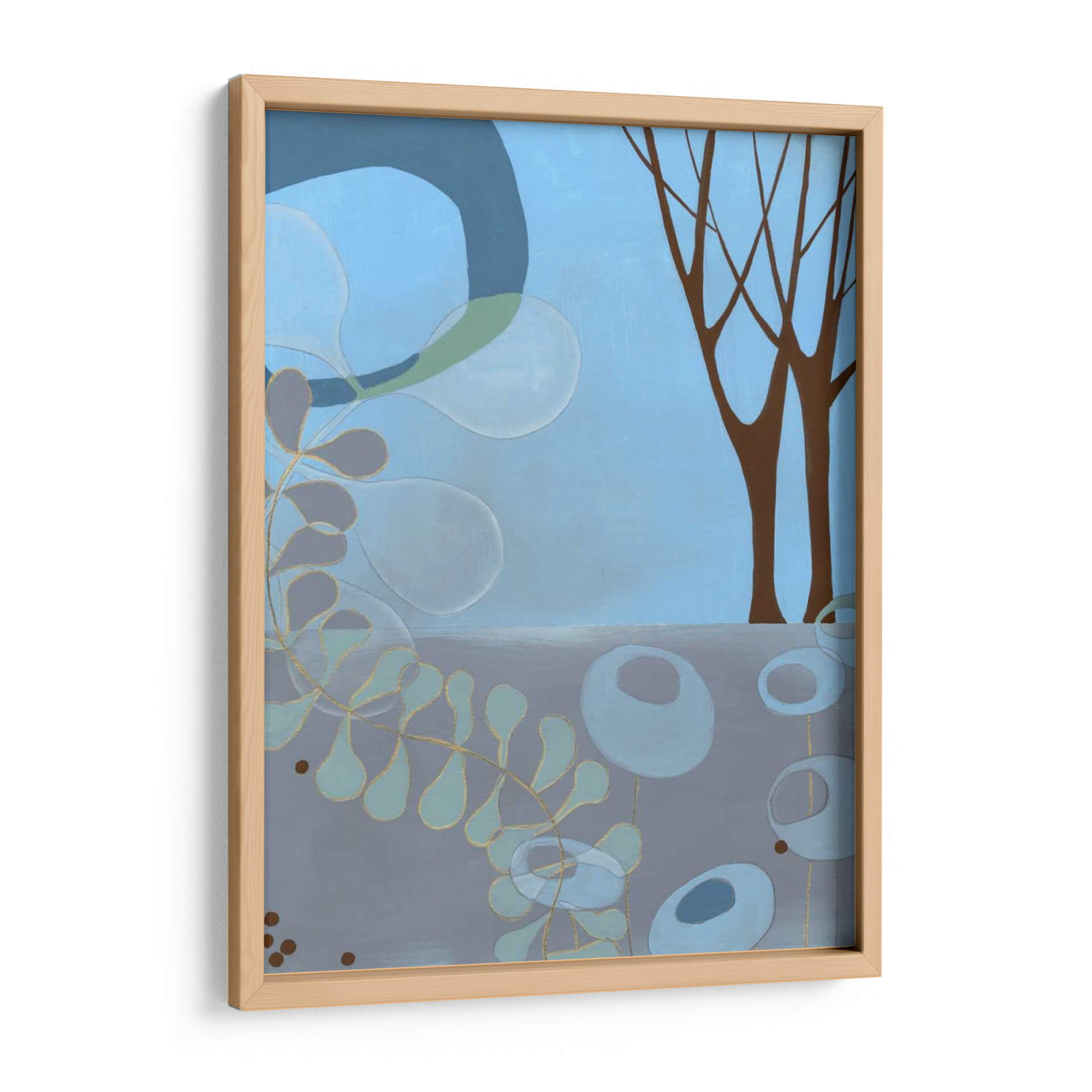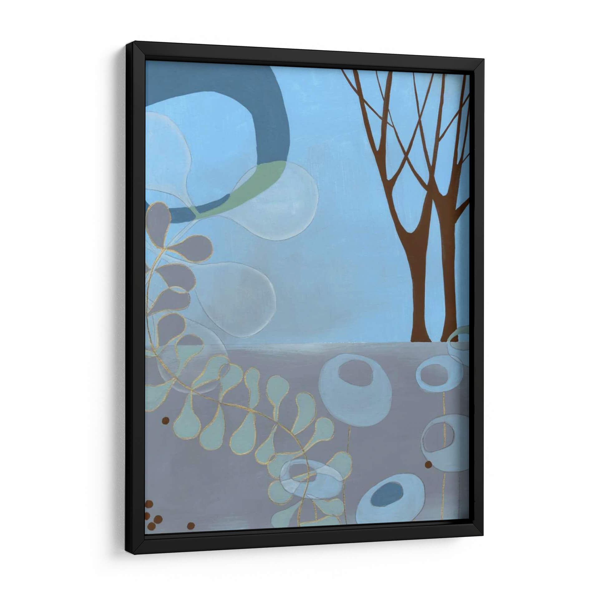 Sumérgete en la serenidad de "Me Olio", una cautivadora obra de arte de June Erica Vess. Este cuadro decorativo abstracto evoca una sensación de tranquilidad con su paleta de colores celestes y grises suaves, acentuados por delicadas líneas doradas que recorren motivos botánicos etéreos. La composición presenta un juego de formas orgánicas y siluetas estilizadas, incluyendo dos árboles esbeltos que se alzan contra un cielo claro y un gran elemento curvo en un tono azul más profundo. La obra transmite una atmósfera de calma contemplativa, ideal para espacios que buscan un toque de naturaleza y sofisticación minimalista. "Me Olio" es una pieza versátil que puede transformar un dormitorio en un santuario de paz, añadir un matiz de dulzura a una sala de estar o infundir serenidad en un espacio de oficina. Su estilo contemporáneo y su ejecución refinada la convierten en una adición perfecta para quienes aprecian el arte que equilibra la abstracción con elementos reconocibles de la naturaleza, creando un ambiente de ensueño y relajación.