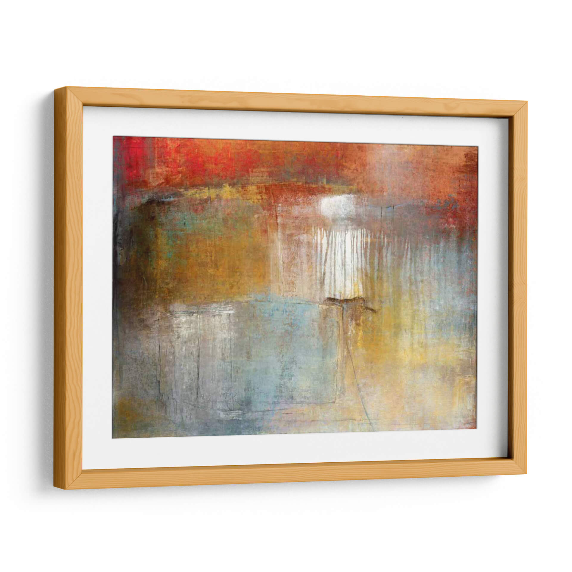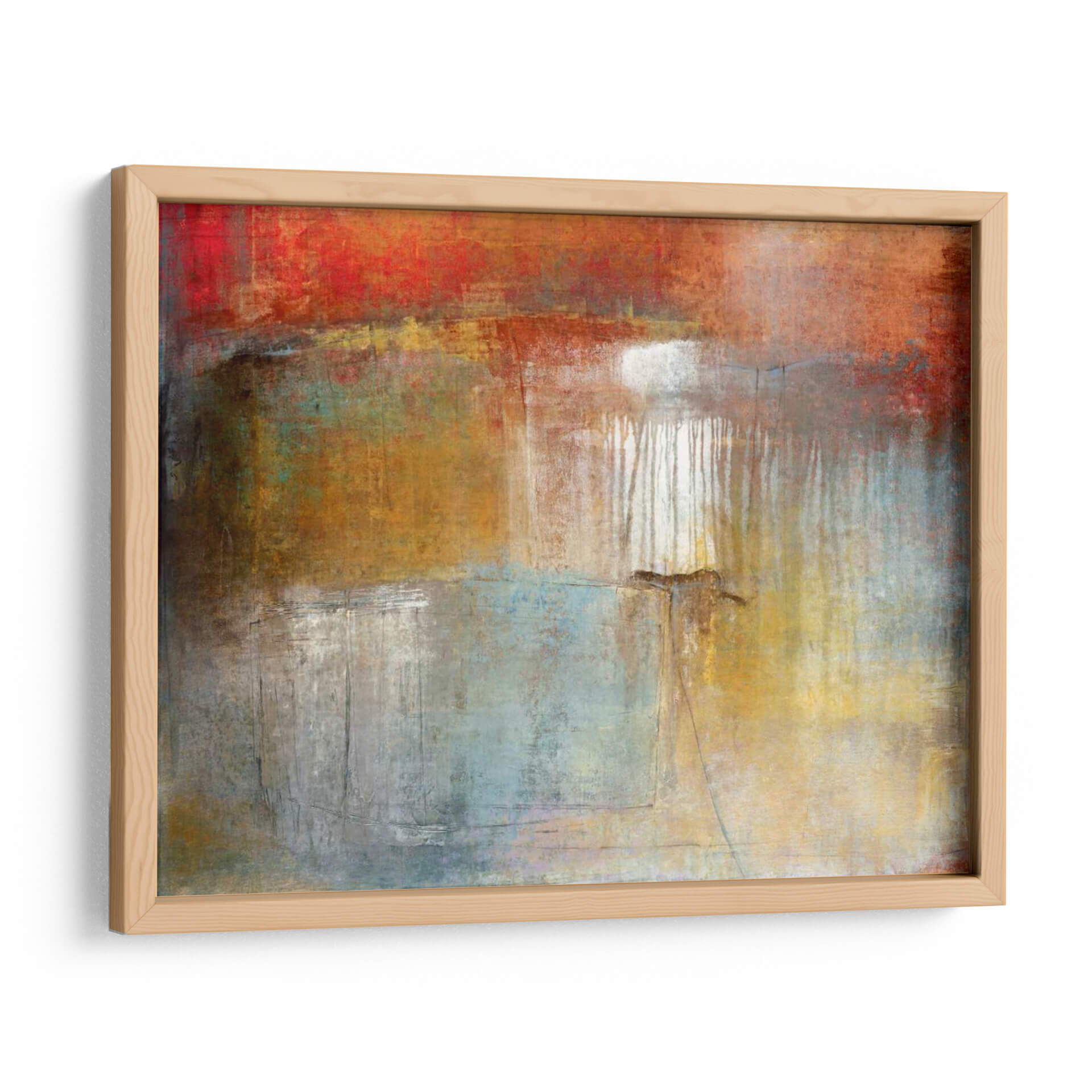 Sumérgete en la cautivadora obra abstracta "Mica" de Maeve Harris, un cuadro decorativo que trasciende la mera representación para invocar una profunda experiencia emocional. Esta pieza se caracteriza por su rica paleta de colores terrosos, ocres y azules serenos, con vibrantes toques de rojo y blanco que aportan dinamismo y contraste. La composición se despliega en capas de textura, simulando superficies desgastadas y revelando sutiles detalles que invitan a la contemplación. Las pinceladas verticales, casi como gotas de lluvia o texturas naturales, añaden un elemento orgánico y dinámico a la abstracción, creando una atmósfera de calma reflexiva pero con una energía subyacente. Ideal para espacios que buscan un toque de sofisticación y profundidad, "Mica" es perfecta para salones modernos, estudios o dormitorios donde se desee fomentar la introspección y la serenidad. Su estilo abstracto contemporáneo permite que se integre armoniosamente en diversas decoraciones, convirtiéndose en un punto focal que dialoga con la luz y el espacio circundante, aportando calidez y carácter. Transforma tu hogar en una galería personal con esta impresionante obra.