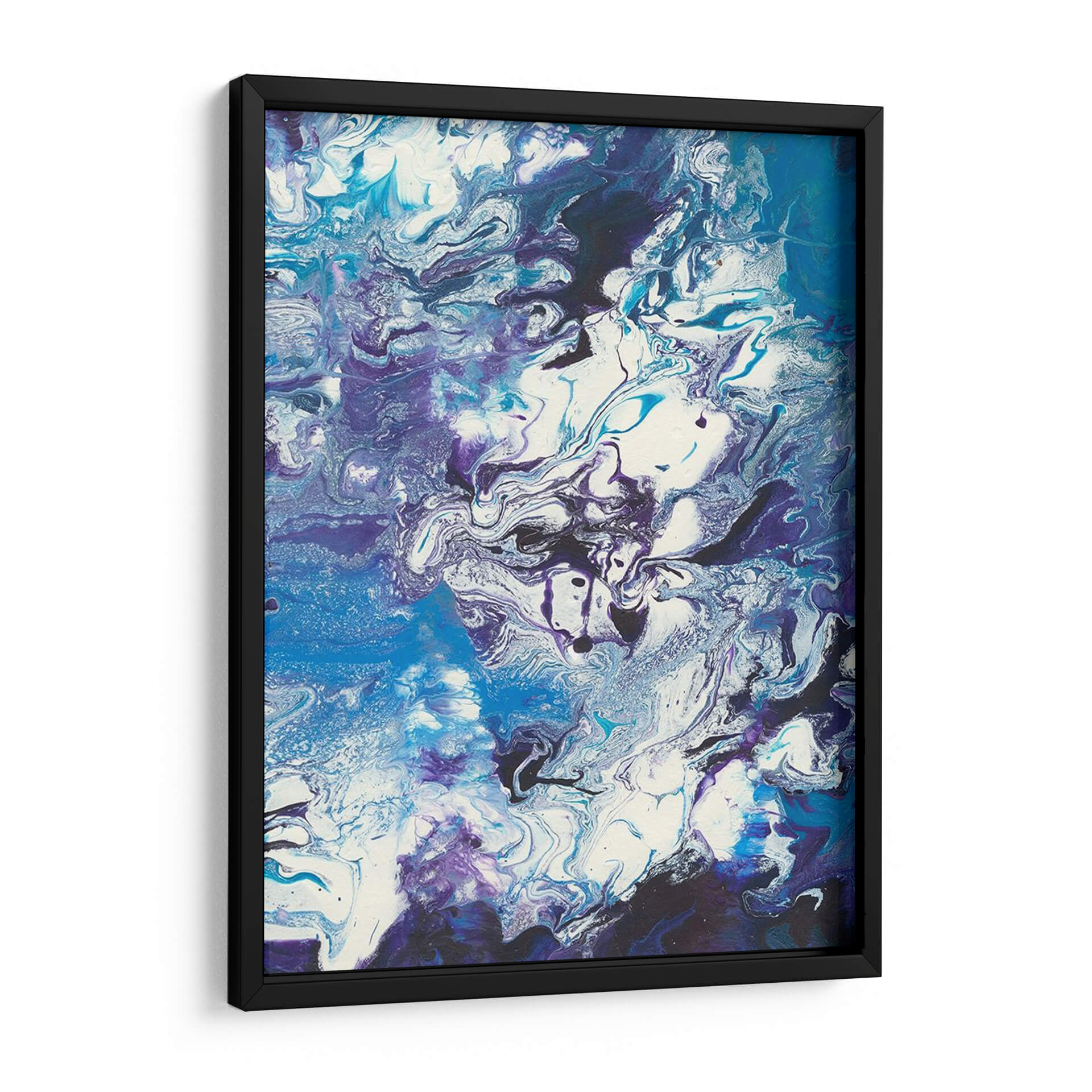 Sumérgete en la hipnótica obra "Morberry II Serpenteante" de Regina Moore, una pieza de arte abstracto que evoca la fluidez y el misterio de las profundidades marinas o de un cielo tormentoso. Los intensos azules, morados y blancos se entrelazan en un remolino dinámico de texturas y formas, creando una sensación de movimiento perpetuo y energía contenida. La técnica utilizada, reminiscente del arte de vertido (pour art), genera patrones orgánicos y fluidos que invitan a la contemplación y a la interpretación personal. Este cuadro decorativo es ideal para añadir un toque de sofisticación y profundidad a cualquier espacio, ya sea una sala de estar moderna, un estudio o una oficina que busque un punto focal intrigante. La paleta de colores fríos y vibrantes aporta una atmósfera de calma y elegancia, pero también de vitalidad. Cada línea y cada mancha de color cuentan una historia visual única, haciendo de "Morberry II Serpenteante" una adición cautivadora a cualquier colección de arte contemporáneo, un verdadero diálogo entre el caos controlado y la belleza inherente a la naturaleza. Transforma tu pared en una ventana a un universo abstracto y personal.