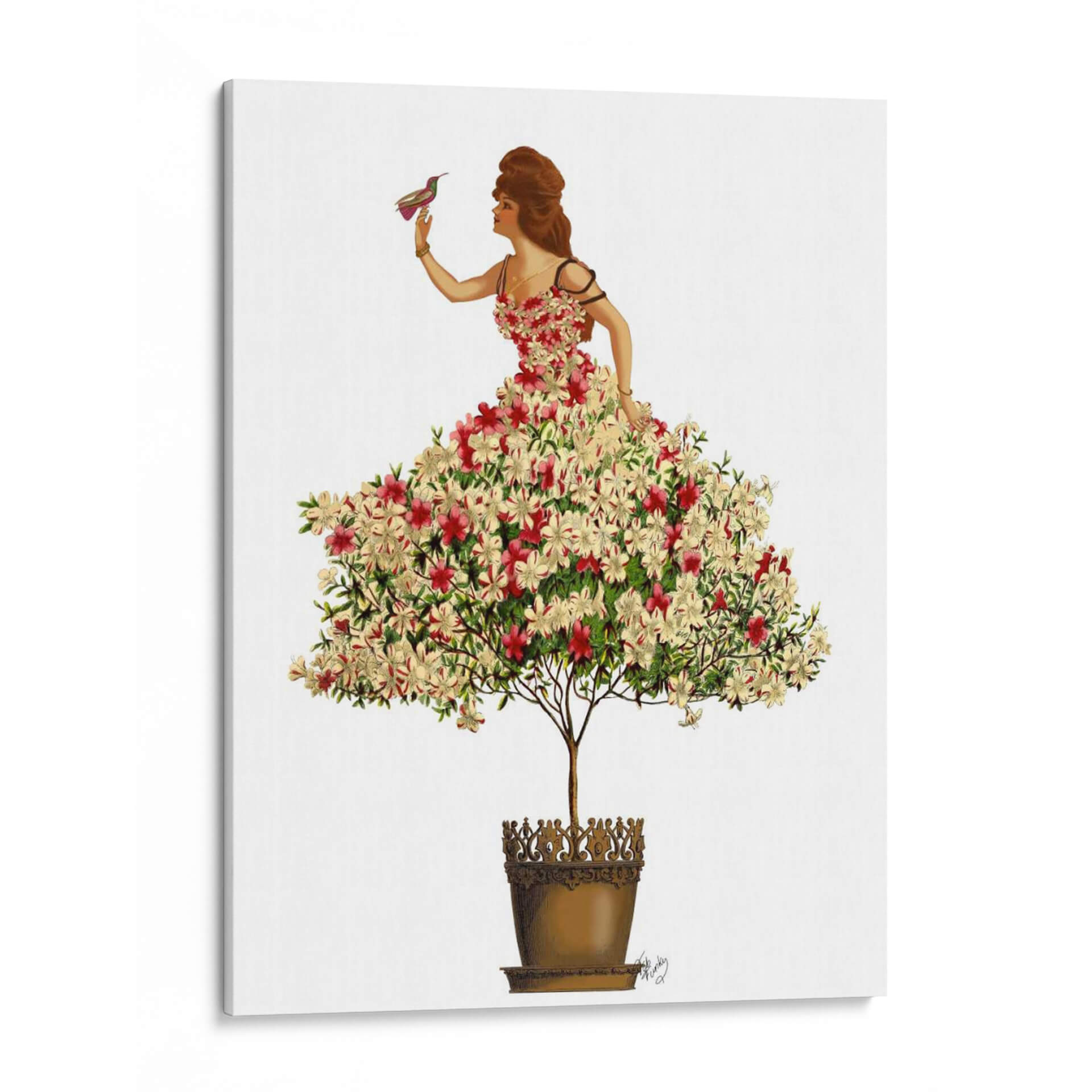 Embellece tu espacio con 'Mujer en Vestido Floral', una obra de arte cautivadora del artista Fab Funky. Esta pieza exquisita presenta a una mujer etérea cuya vestimenta se transforma en un exuberante y vibrante jardín de flores. Los delicados pétalos en tonos crema y rojo se entrelazan con hojas verdes, creando un espectáculo visual que evoca la belleza de la naturaleza y la feminidad. La composición, centrada en la figura y la explosión floral, transmite una sensación de delicadeza, crecimiento y conexión con el mundo natural. La paleta de colores, con sus contrastes sutiles y armónicos, añade profundidad y vitalidad, haciendo de este cuadro decorativo una pieza versátil para cualquier ambiente. Ideal para añadir un toque de encanto bohemio y sofisticación a tu sala de estar, dormitorio o estudio, este cuadro invita a la contemplación y a la admiración. Es una representación artística única que celebra la fusión entre la figura humana y la exuberancia floral, transformando cualquier pared en un jardín de inspiración. La atención al detalle en cada flor y la gracia de la figura central la convierten en una adición memorable a tu colección de arte de pared, resonando con quienes aprecian la estética delicada y la fantasía poética.