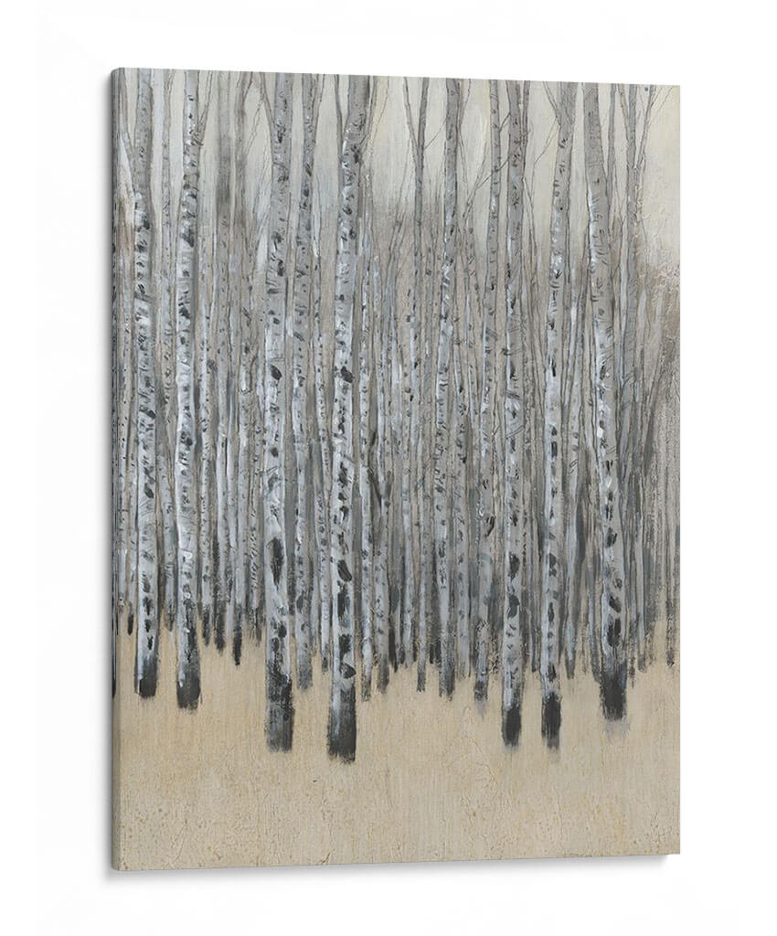 Adéntrate en la serena belleza del bosque de abedules con "Neutral Aspen I" de Tim O'Toole. Este cautivador cuadro decorativo transporta la tranquilidad de la naturaleza a tu hogar u oficina. La obra presenta una densa arboleda de abedules, con sus icónicos troncos blancos y negros que se alzan graciosamente contra un fondo etéreo y de tonos tierra. La paleta de colores, dominada por grises suaves, blancos y beiges, evoca una atmósfera de calma y serenidad, perfecta para crear un oasis de paz en tu espacio vital. El estilo artístico, con pinceladas sutiles y una composición que sugiere profundidad, captura la esencia del bosque de una manera contemporánea y evocadora. "Neutral Aspen I" es ideal para aquellos que buscan añadir un toque de naturaleza serena y elegancia atemporal a su decoración. Este cuadro es una pieza versátil que complementa una amplia gama de estilos interiores, desde el minimalista hasta el rústico moderno, aportando una sensación de conexión con el exterior y un refugio visual del ajetreo diario. Descubre la armonía y el equilibrio que esta obra de arte única puede infundir en tu ambiente.