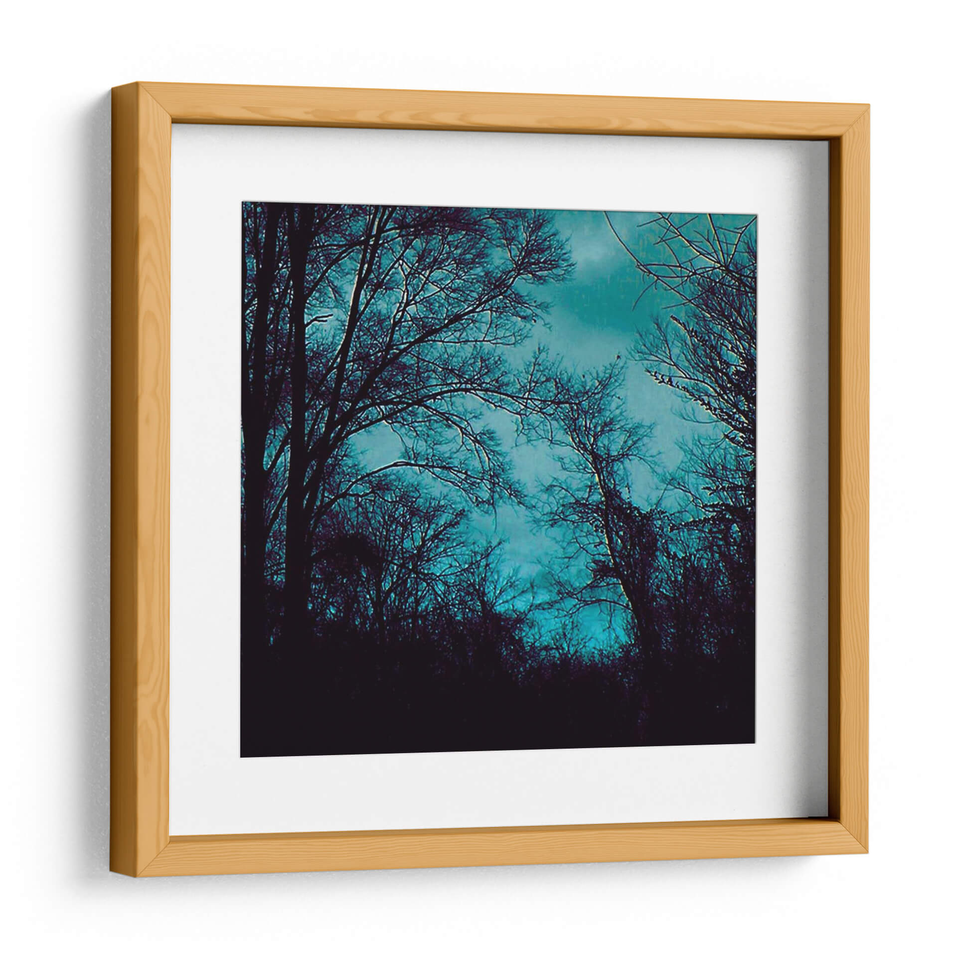 Adéntrate en la enigmática belleza de 'Nocturne IV', una obra de arte que captura la esencia de un bosque nocturno bañado en tonos teal profundos y misteriosos. La artista Alicia Ludwig nos transporta a un paisaje onírico donde las siluetas de los árboles desnudos se recortan contra un cielo etéreo y vibrante. La composición, con un enfoque ascendente, invita a contemplar la intrincada red de ramas que se entrelazan, creando un efecto visual hipnotizante. Los colores, dominados por el azul verdoso intenso y las sombras profundas, evocan una atmósfera de serenidad melancólica, casi mágica. Este cuadro decorativo es perfecto para aquellos que buscan añadir un toque de misterio y sofisticación a sus espacios. Imagina este lienzo aportando una calma introspectiva a un rincón de lectura, o convirtiéndose en un punto focal intrigante en un salón moderno. 'Nocturne IV' no es solo una pieza decorativa, es una invitación a la contemplación, una ventana a un mundo silencioso y cautivador que transformará cualquier habitación en un santuario de arte contemporáneo.