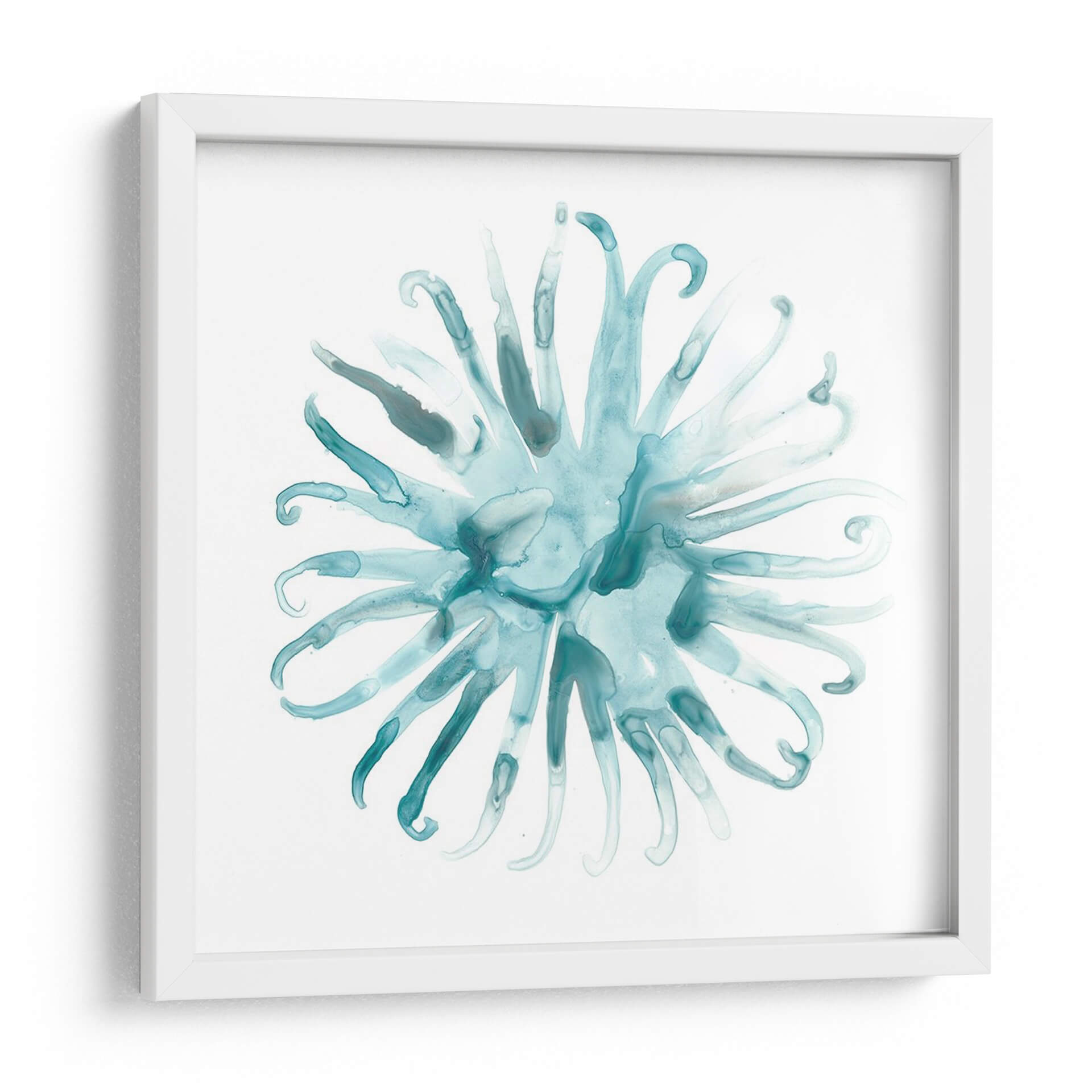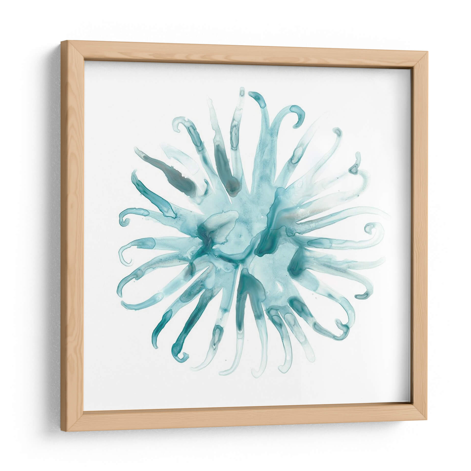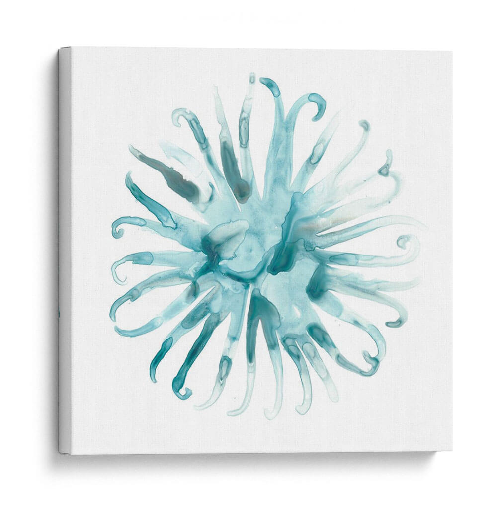 Sumérgete en la serena belleza de 'Ocean Cameo II', una obra de arte abstracta que evoca la delicadeza de la vida marina con su cautivadora paleta de azules y turquesas. La artista June Erica Vess captura la esencia etérea de un elemento acuático, como un coral o una anémona, a través de pinceladas fluidas y traslúcidas que parecen danzar sobre el lienzo. La composición se centra en una forma orgánica que se expande radialmente, con tentáculos suaves y curvos que invitan a la contemplación. Los tonos profundos y acuosos se mezclan con sutiles matices grises, creando una profundidad y un movimiento hipnóticos. Este cuadro decorativo es perfecto para añadir un toque de calma y sofisticación a cualquier espacio, desde un dormitorio que busca tranquilidad hasta una sala de estar moderna que necesita un acento de color sutil pero impactante. Su estilo abstracto y su conexión con el océano lo convierten en una pieza versátil, ideal para interiores de estilo costero, contemporáneo o bohemio. Transforma tu hogar en un oasis de paz con esta impresionante pieza artística que captura la magia del mundo submarino y la fluidez del agua.