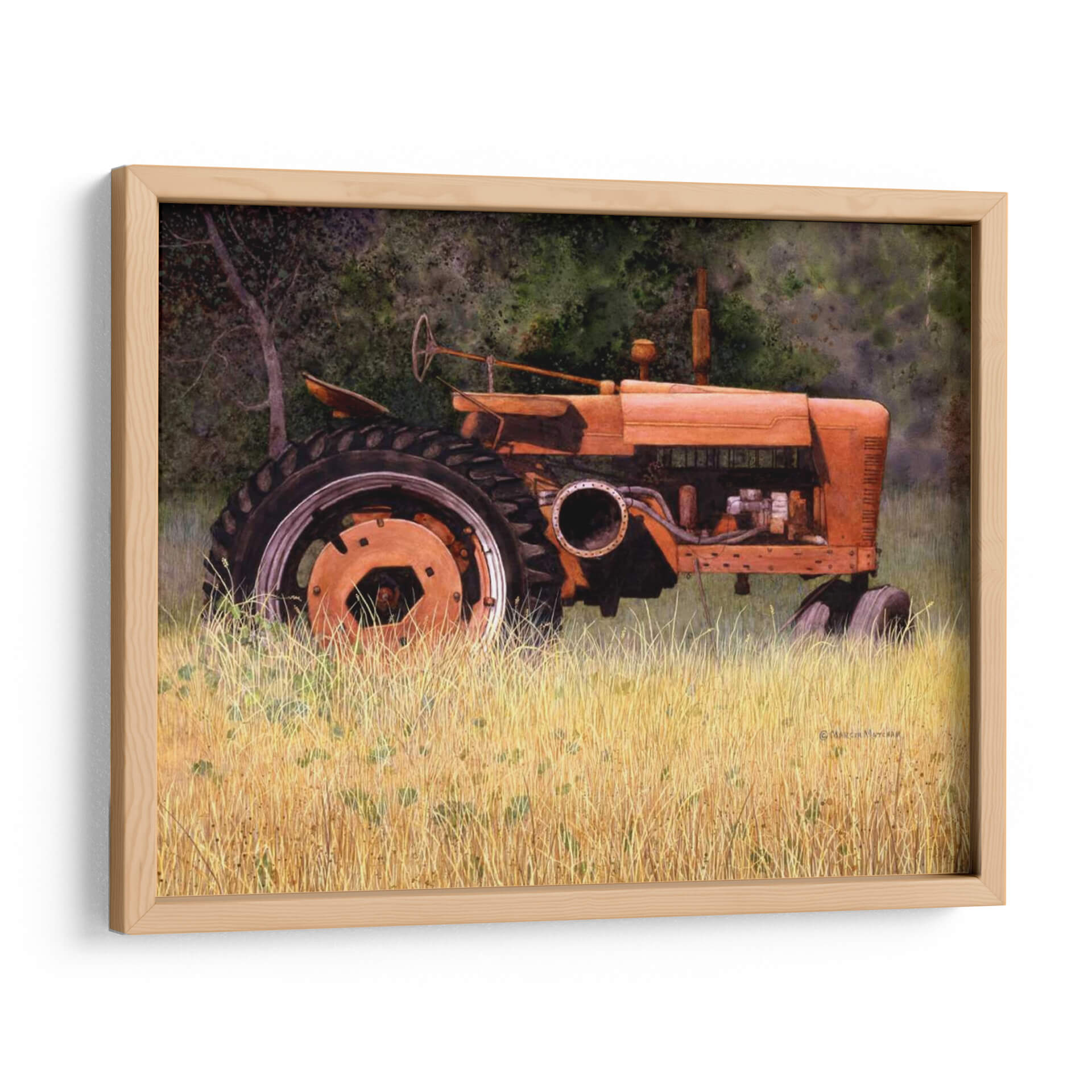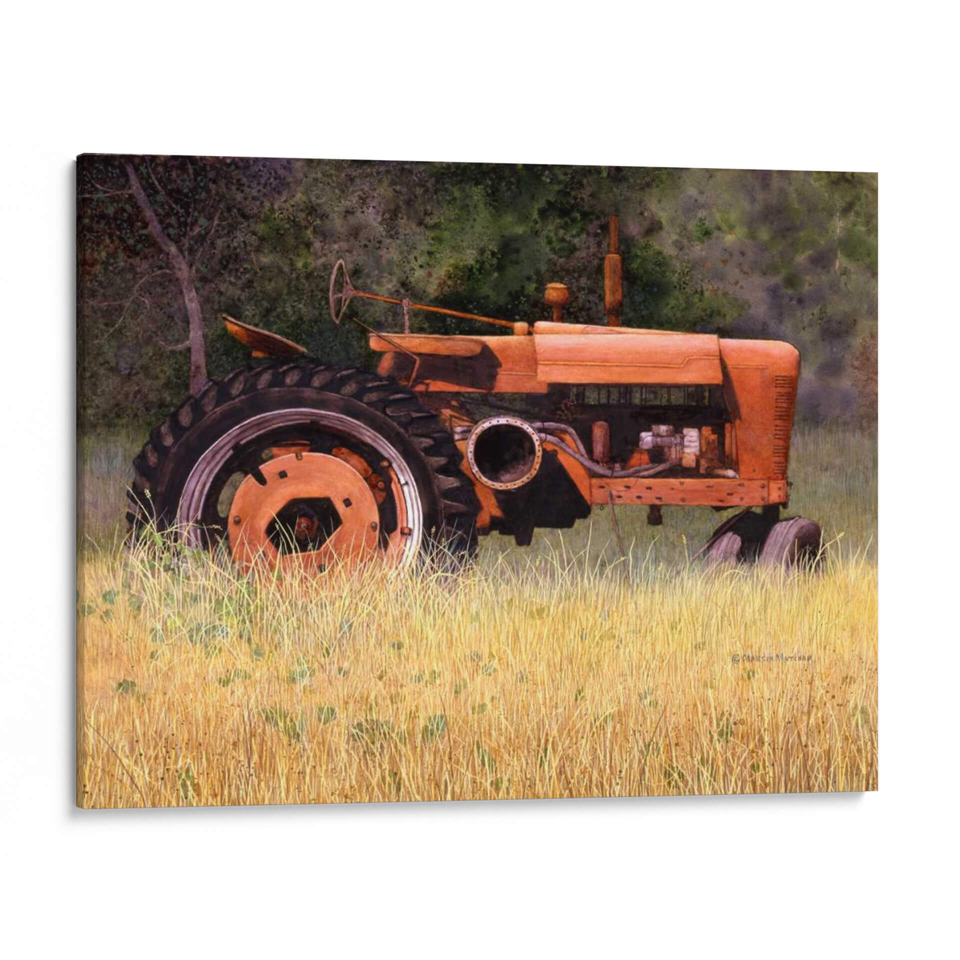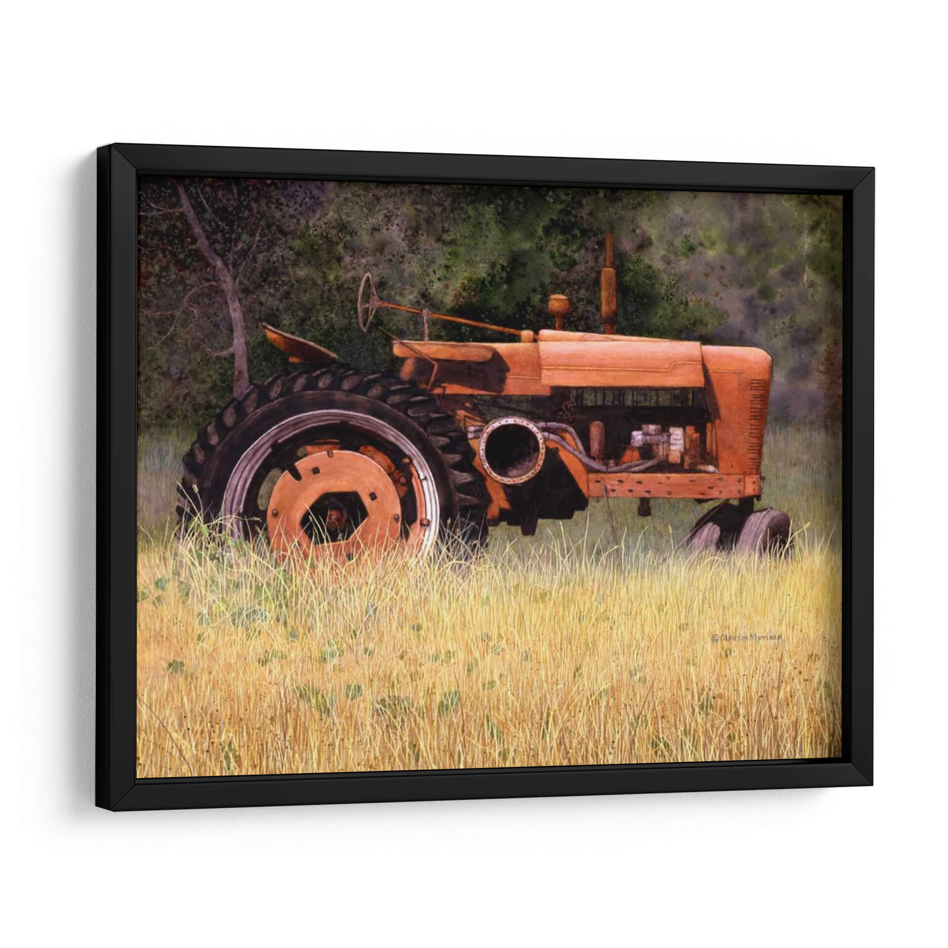 Sumérgete en la nostálgica belleza de "Olvidado" de Marcia Matcham, un cuadro decorativo que captura la esencia de un tractor anaranjado detenido en el tiempo entre la hierba dorada. Esta obra de arte evoca una sensación de paz rural y reflexión sobre el paso del tiempo. La paleta de colores cálidos, dominada por tonos ocres y verdes profundos del follaje de fondo, crea una atmósfera serena pero a la vez melancólica. La técnica detallada de Matcham da vida a la textura del óxido y la robustez de la maquinaria, contrastando con la delicadeza de la naturaleza que lo rodea. Ideal para espacios que buscan un toque de carácter rústico y una historia silenciosa. Este cuadro decorativo es perfecto para salas de estar, estudios o cualquier rincón que necesite una pieza con alma y profundidad. Añade un elemento de arte contemporáneo que habla de historias pasadas y la belleza encontrada en lo que ha sido dejado atrás. Una elección única para amantes del arte y la estética vintage.