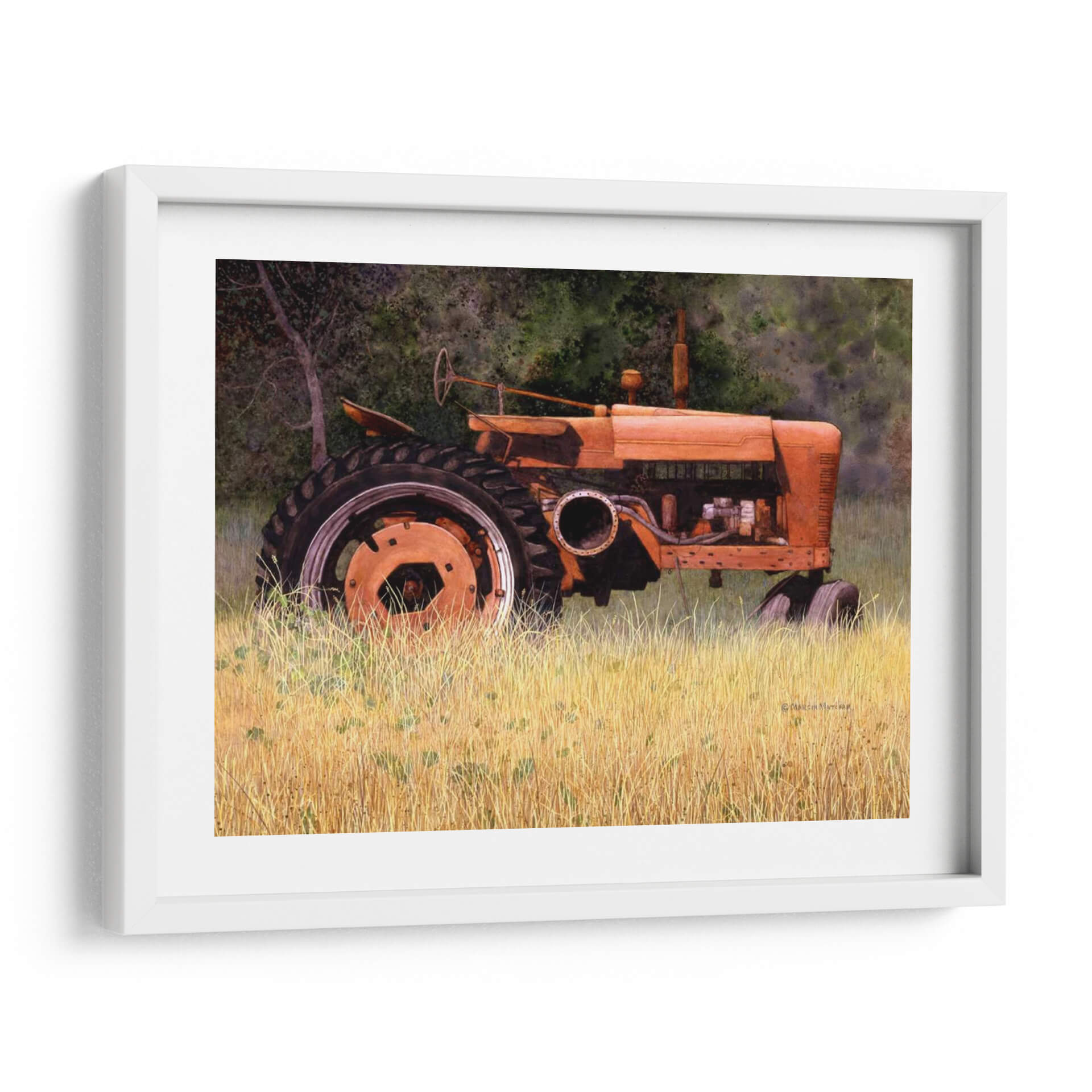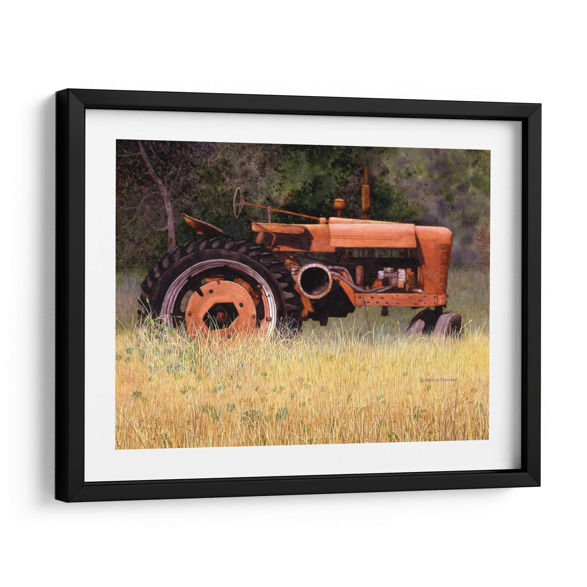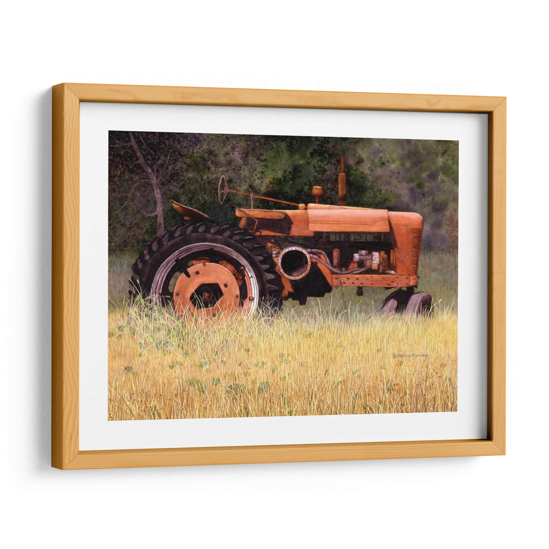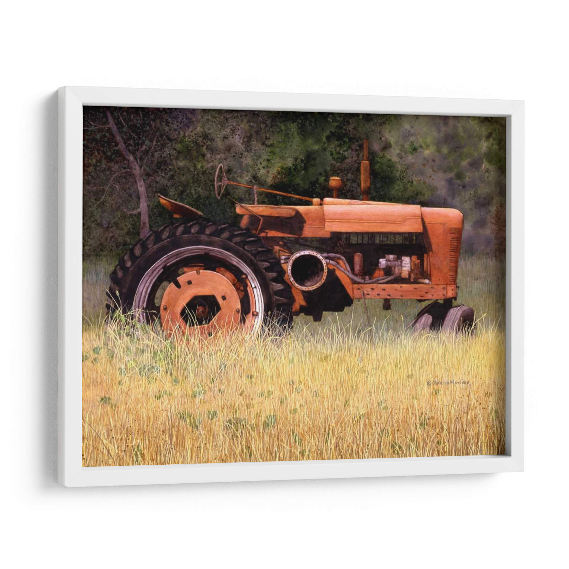 Sumérgete en la nostálgica belleza de "Olvidado" de Marcia Matcham, un cuadro decorativo que captura la esencia de un tractor anaranjado detenido en el tiempo entre la hierba dorada. Esta obra de arte evoca una sensación de paz rural y reflexión sobre el paso del tiempo. La paleta de colores cálidos, dominada por tonos ocres y verdes profundos del follaje de fondo, crea una atmósfera serena pero a la vez melancólica. La técnica detallada de Matcham da vida a la textura del óxido y la robustez de la maquinaria, contrastando con la delicadeza de la naturaleza que lo rodea. Ideal para espacios que buscan un toque de carácter rústico y una historia silenciosa. Este cuadro decorativo es perfecto para salas de estar, estudios o cualquier rincón que necesite una pieza con alma y profundidad. Añade un elemento de arte contemporáneo que habla de historias pasadas y la belleza encontrada en lo que ha sido dejado atrás. Una elección única para amantes del arte y la estética vintage.