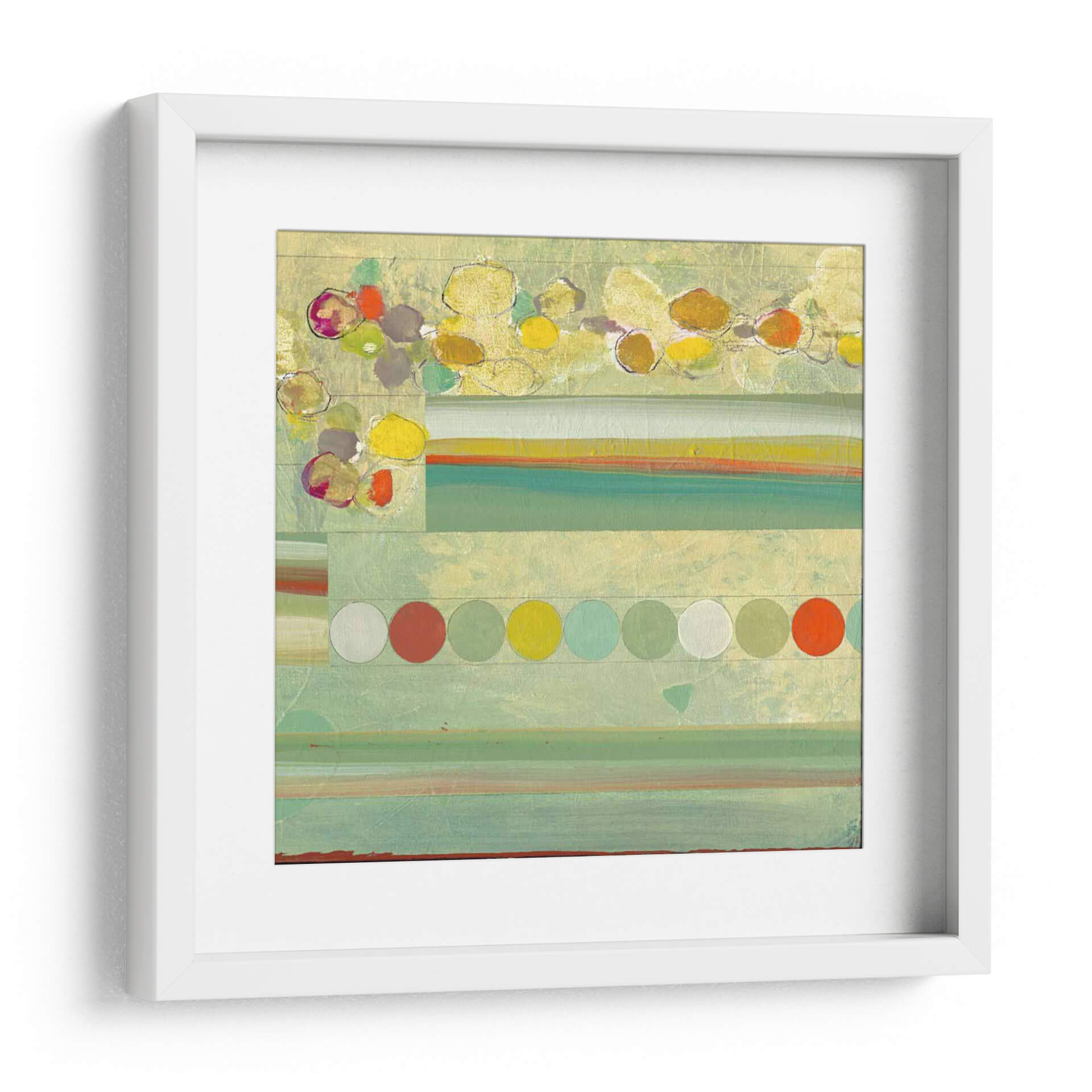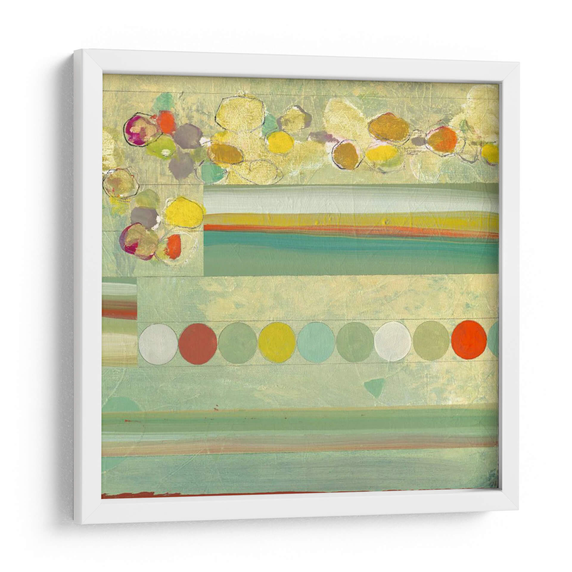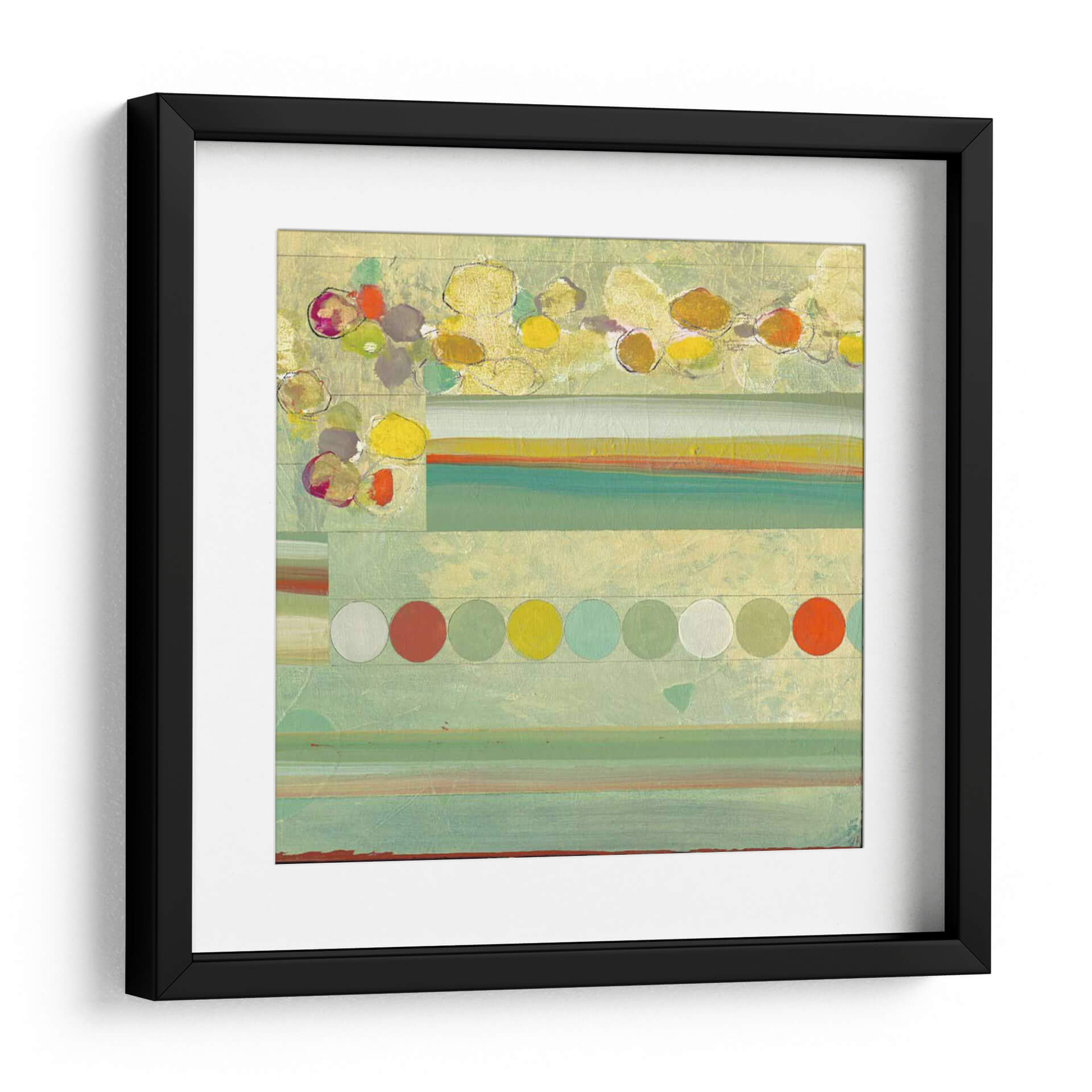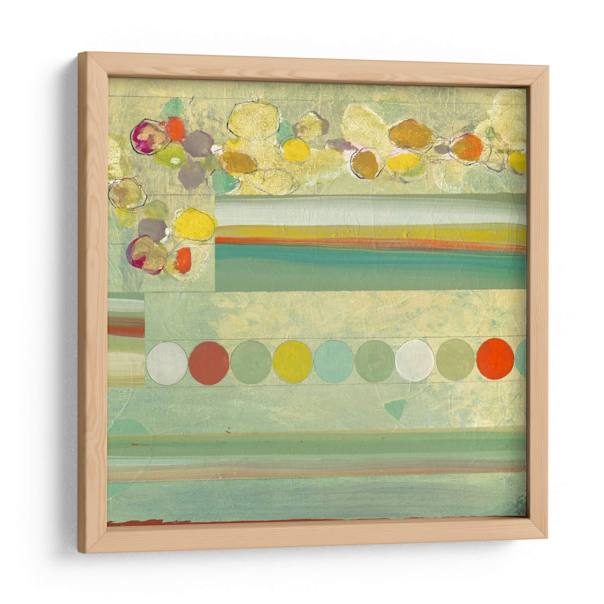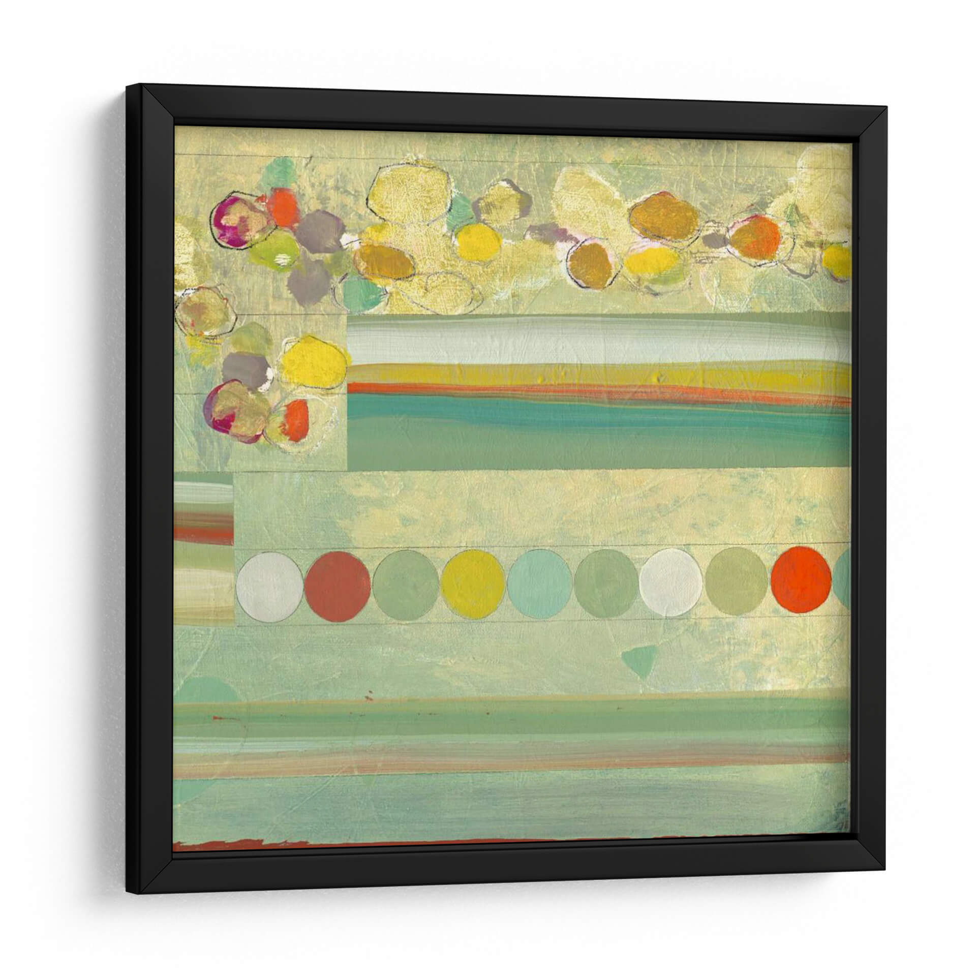Sumérgete en la armonía visual de "Orquestate II" de Jodi Fuchs, una obra de arte contemporáneo que combina capas texturizadas y una paleta de colores suaves para crear una atmósfera de serenidad y dinamismo. Este cuadro decorativo abstracto presenta una composición intrigante con formas orgánicas y círculos en una secuencia rítmica, juxtapuestos contra bandas horizontales de tonos verdes, amarillos y acentos de naranja y rojo. La profundidad se logra a través de sutiles variaciones de color y la superposición de elementos, invitando a la contemplación. La obra evoca una sensación de orden lúdico y vitalidad, perfecta para infundir carácter y un toque de originalidad a cualquier espacio. Ya sea que busques una pieza central para tu sala de estar, un elemento de calma para tu estudio o un acento vibrante en tu oficina, "Orquestate II" es una elección excepcional que resuena con estilo y sofisticación. Su diseño abstracto y colores cuidadosamente seleccionados lo convierten en un complemento ideal para interiores modernos, minimalistas o eclécticos, añadiendo una dimensión artística única y una conversación visual que cautivará a tus invitados.