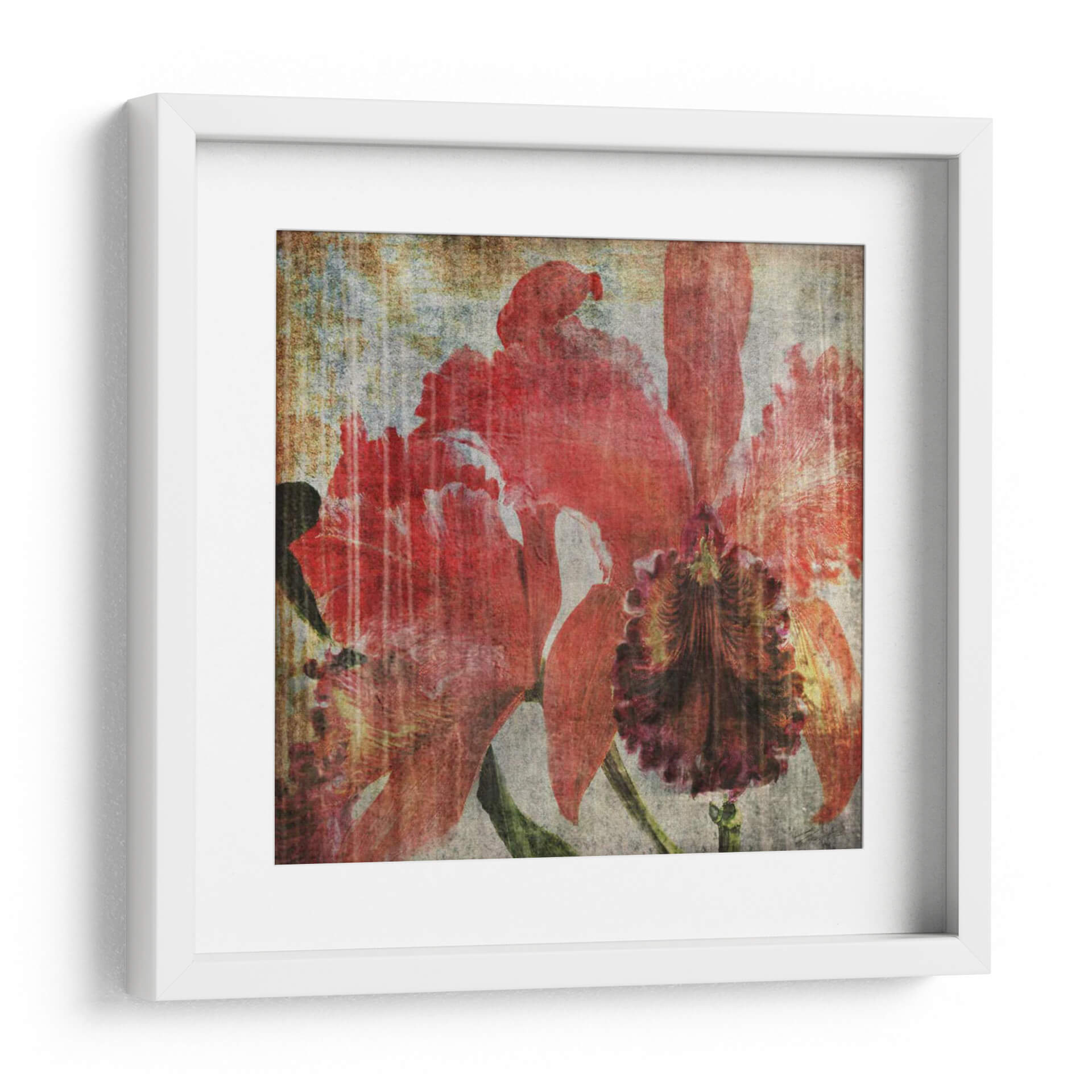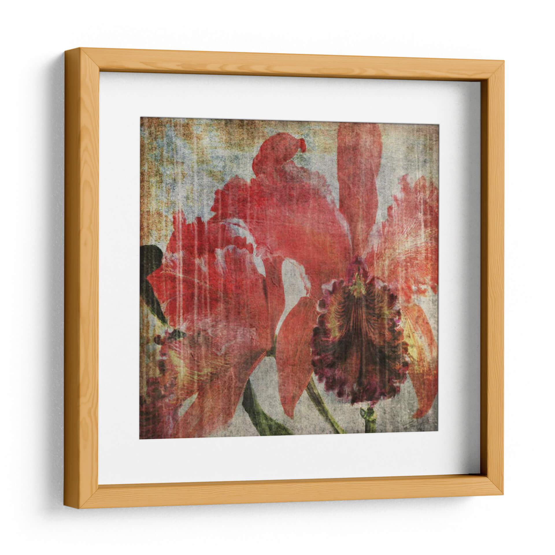 Sumérgete en la opulencia botánica con "Pacífico Orquídea I" de John Butler, una obra de arte decorativo que captura la intensidad y la delicadeza de estas flores exóticas. Este cuadro presenta un primer plano de orquídeas en vibrantes tonos rojos y borgoña, cuyas texturas detalladas y pétalos ondulantes parecen cobrar vida sobre un fondo texturizado y desgastado que evoca una sensación de historia y profundidad. La composición se centra en la majestuosidad de las flores, creando un punto focal cautivador que atrae la mirada y estimula los sentidos. Los colores cálidos y ricos, combinados con toques de verde y amarillos sutiles, generan una atmósfera de pasión controlada y elegancia natural. El estilo de Butler, que fusiona lo fotográfico con lo pictórico, añade una dimensión única, transformando la orquídea en una figura casi etérea. "Pacífico Orquídea I" es una elección excepcional para quienes buscan añadir un toque de sofisticación y naturaleza exuberante a su hogar u oficina. Ideal para salas de estar, comedores o estudios, este cuadro decorativo aportará un aire de refinamiento y un estallido de color que complementará a la perfección tanto decoraciones modernas como clásicas, invitando a la contemplación y admiración.