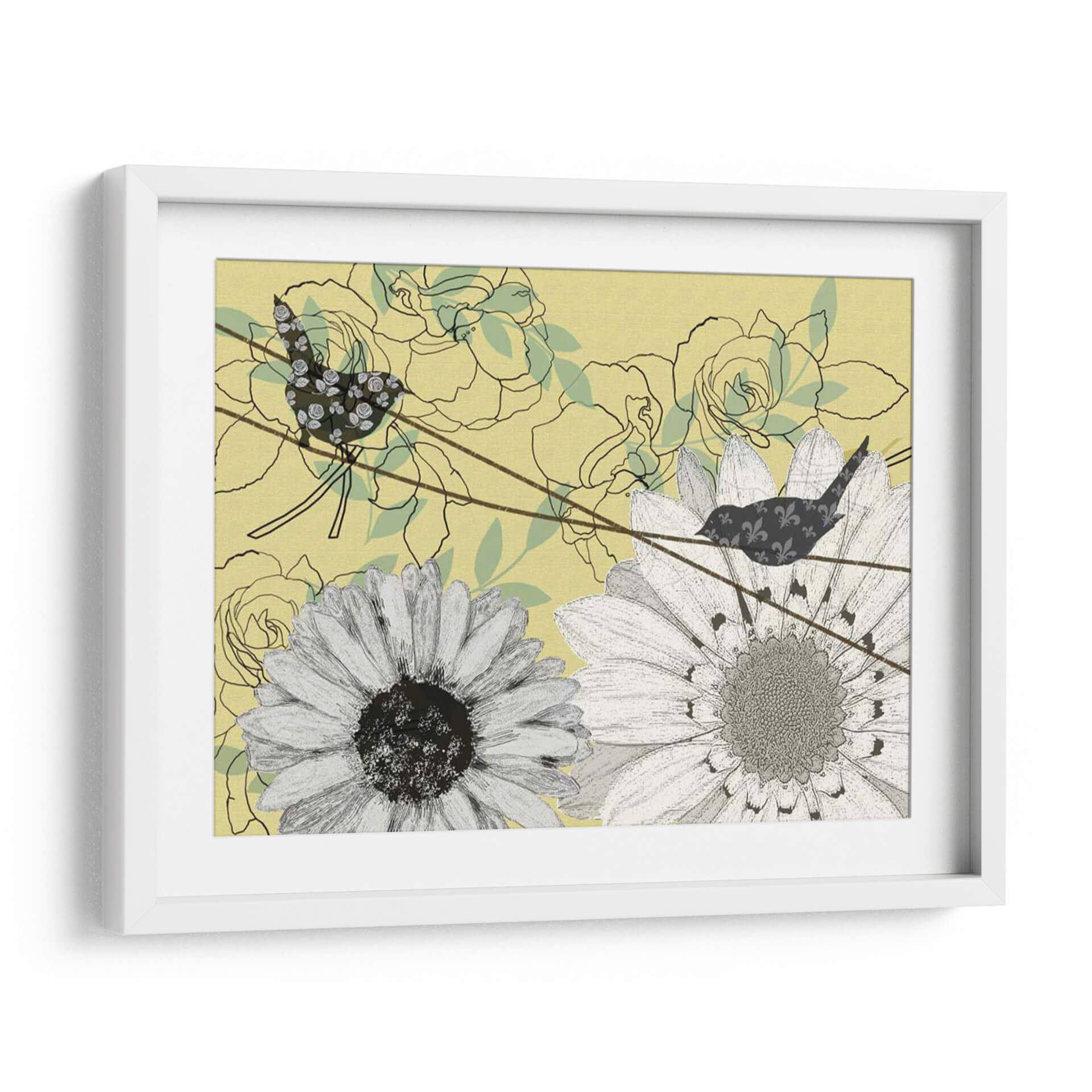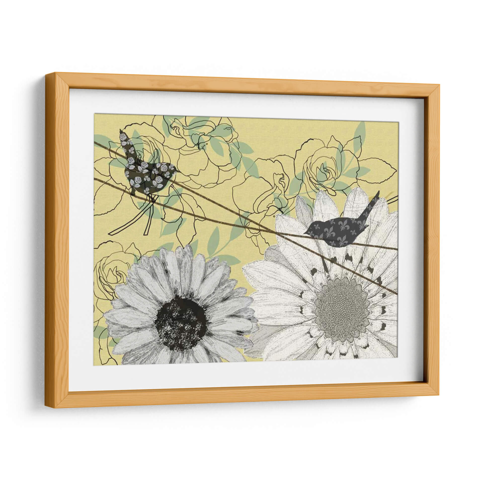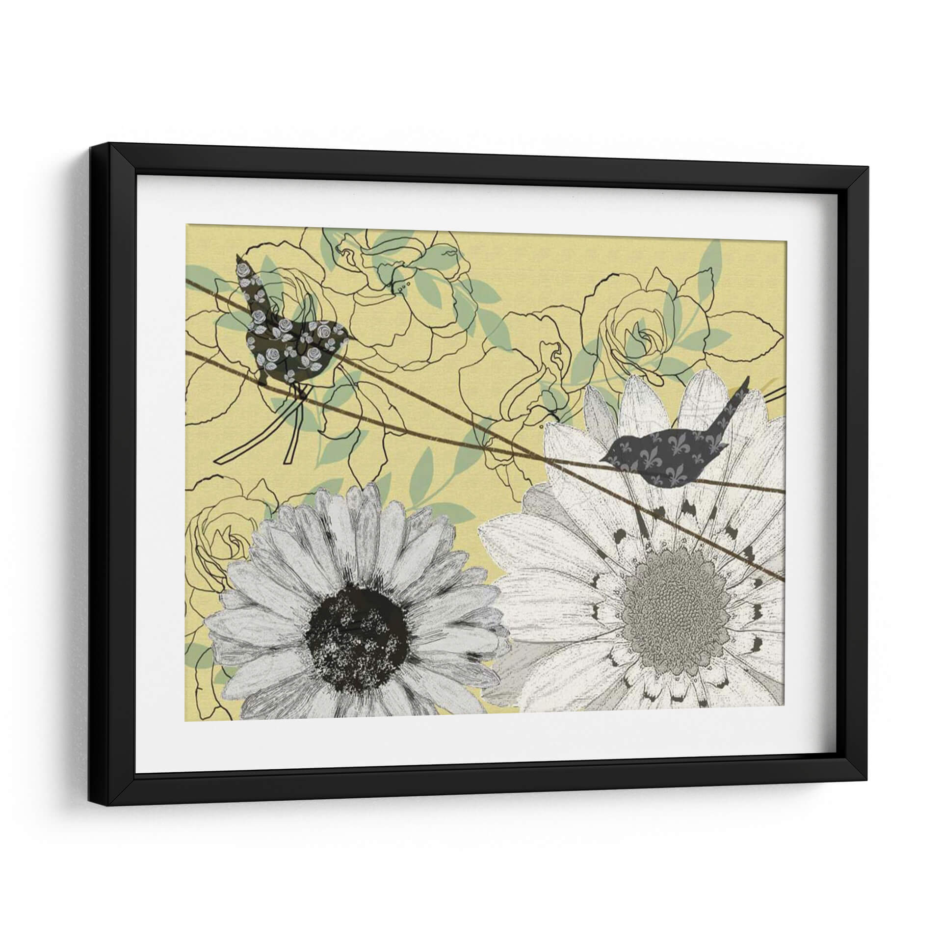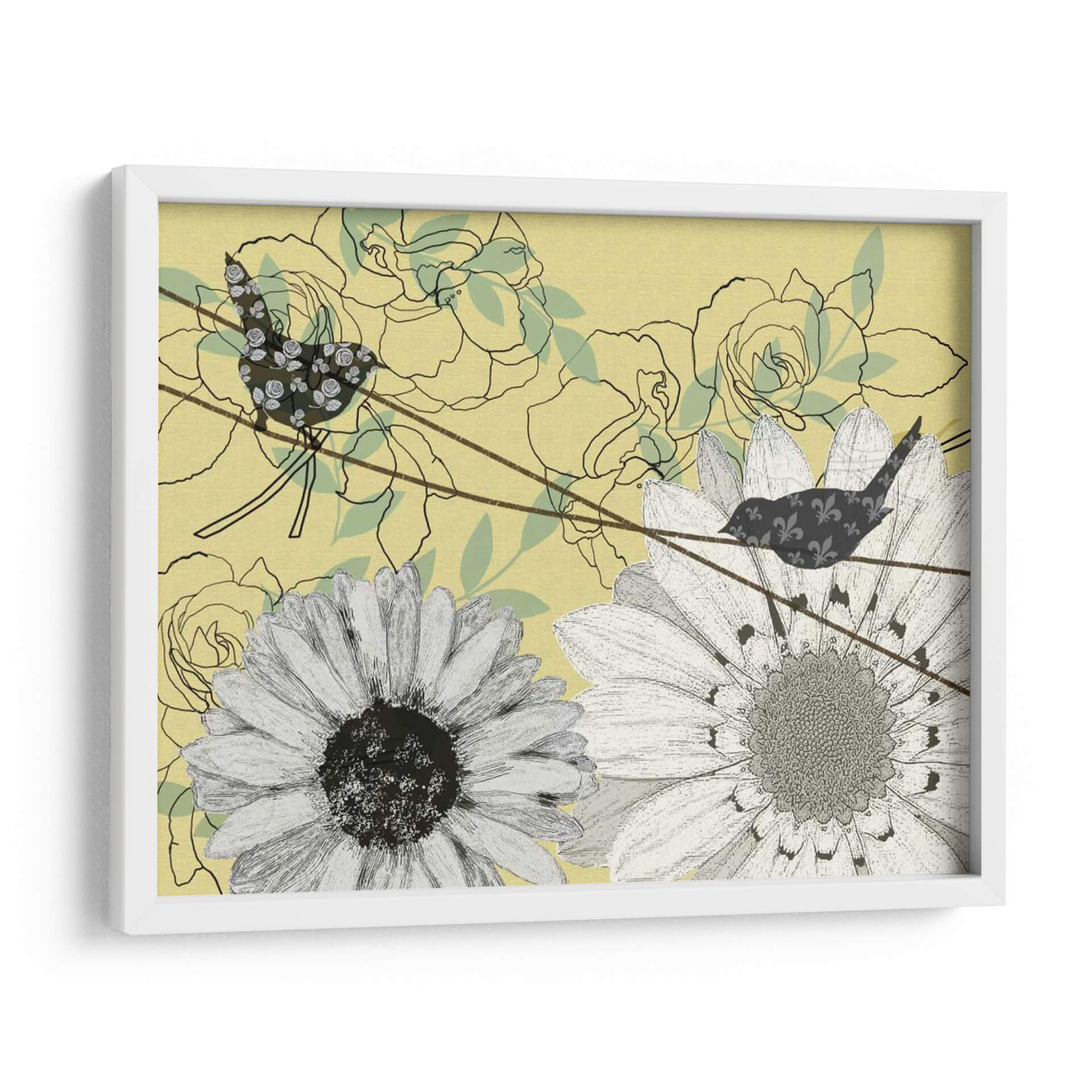 Aporta un toque de encanto natural y serenidad a tu espacio con "Pájaros En Un Alambre II", una obra de arte contemporáneo que captura la delicadeza de la naturaleza. Esta pieza presenta un diseño estilizado con flores de gran tamaño en tonos blancos y grises, delineadas con trazos finos y oscuros que contrastan con un fondo amarillo suave y texturizado. Dos siluetas de pájaros, una de ellas adornada con un sutil patrón de flor de lis, se posan sobre alambres finos que atraviesan la composición, añadiendo un elemento dinámico y poético. La paleta de colores, dominada por el amarillo pálido, el verde menta, el negro y el blanco, crea una atmósfera tranquila y aireada, perfecta para cualquier habitación que busque un acento de calma y elegancia. Ideal para salas de estar, dormitorios o incluso oficinas, este cuadro decorativo infunde una sensación de paz y conexión con el mundo natural. Su estilo gráfico y moderno lo convierte en una adición versátil que complementa una variedad de decoraciones interiores, desde las más minimalistas hasta las más bohemias. "Pájaros En Un Alambre II" es más que una simple imagen; es una ventana a un jardín sereno, invitando a la contemplación y al disfrute estético.