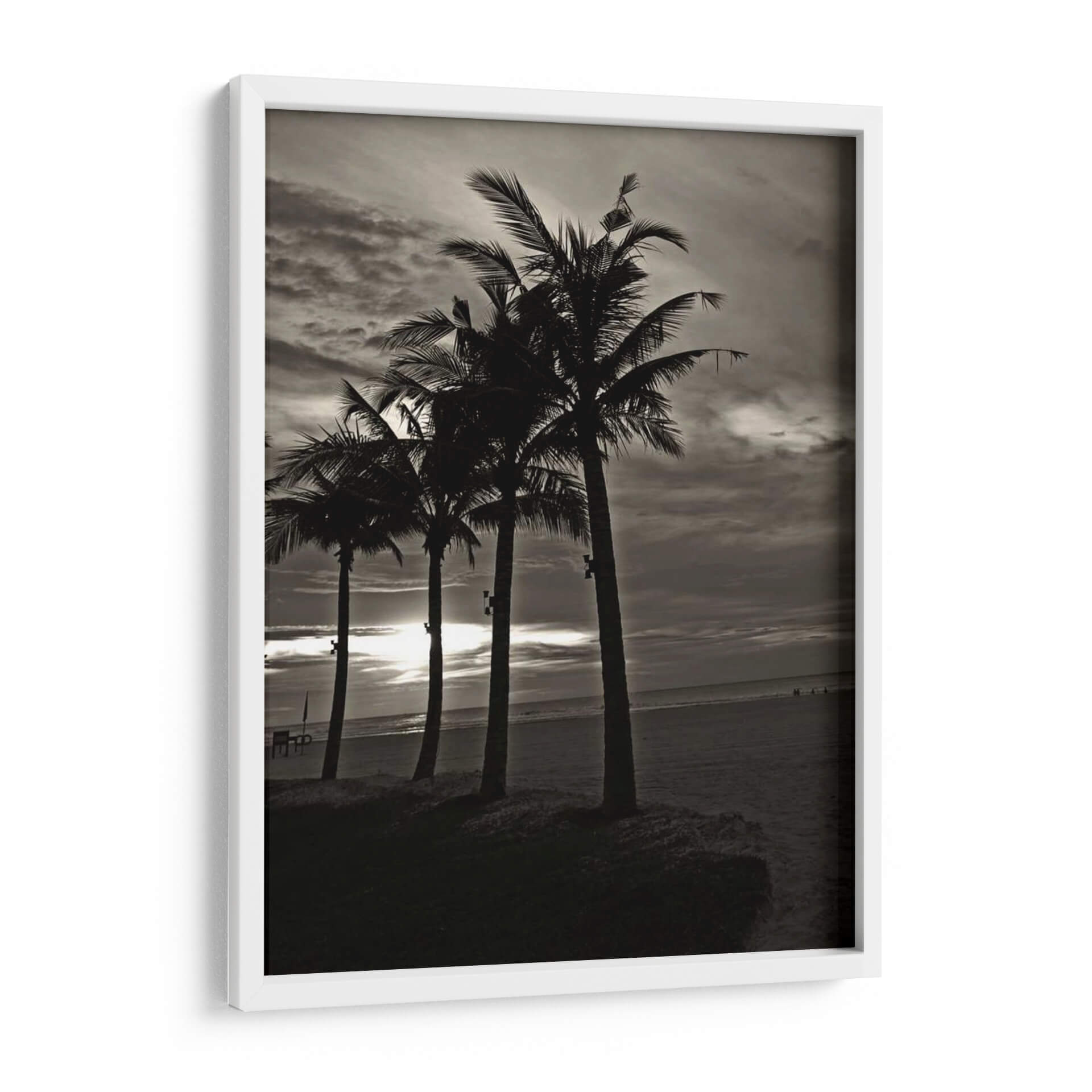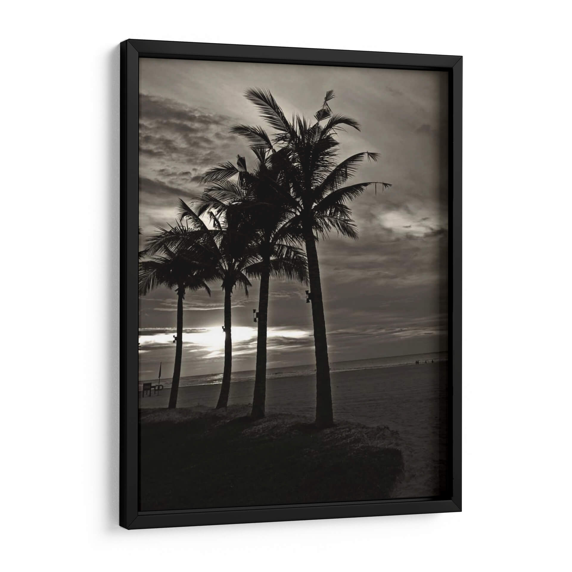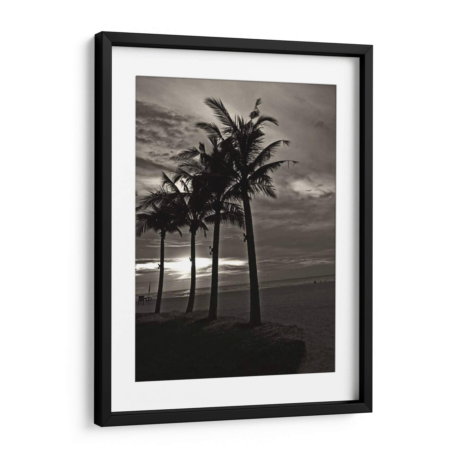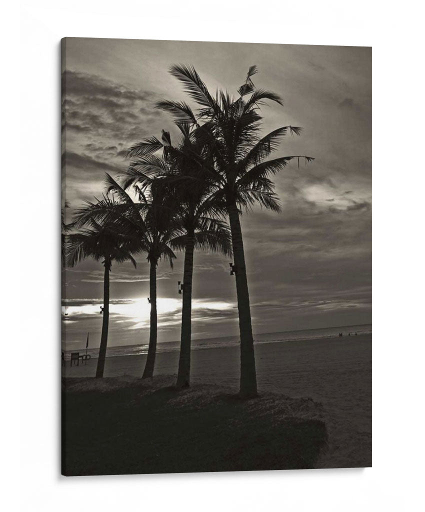 Sumérgete en la serenidad de "Palmas En La Noche Iii" de Tang Ling, un cuadro decorativo que captura la esencia de una playa al atardecer. Esta obra en blanco y negro presenta una fila de palmeras recortadas contra un cielo dramático y nublado, con el sol filtrándose tenuemente a través de las nubes, creando un ambiente de tranquilidad y misterio. La composición, con las palmeras como siluetas protagonistas sobre la arena y el mar al fondo, invita a la contemplación y evoca la calma de una brisa marina nocturna. Su estilo fotográfico y la paleta de tonos grises y negros la convierten en una pieza versátil, ideal para añadir un toque de sofisticación y un aire vacacional a salones modernos, dormitorios acogedores u oficinas que buscan inspiración. "Palmas En La Noche Iii" no es solo una decoración de pared, sino una ventana a un momento de paz, perfecta para quienes buscan arte que conecte con la naturaleza y ofrezca un refugio visual. Transforma tu espacio con esta cautivadora estampa que evoca la belleza atemporal de la costa.