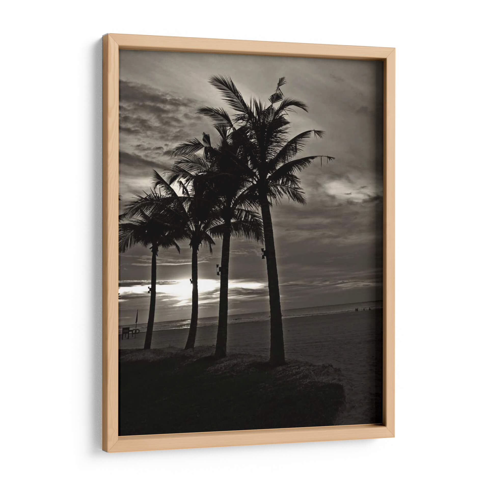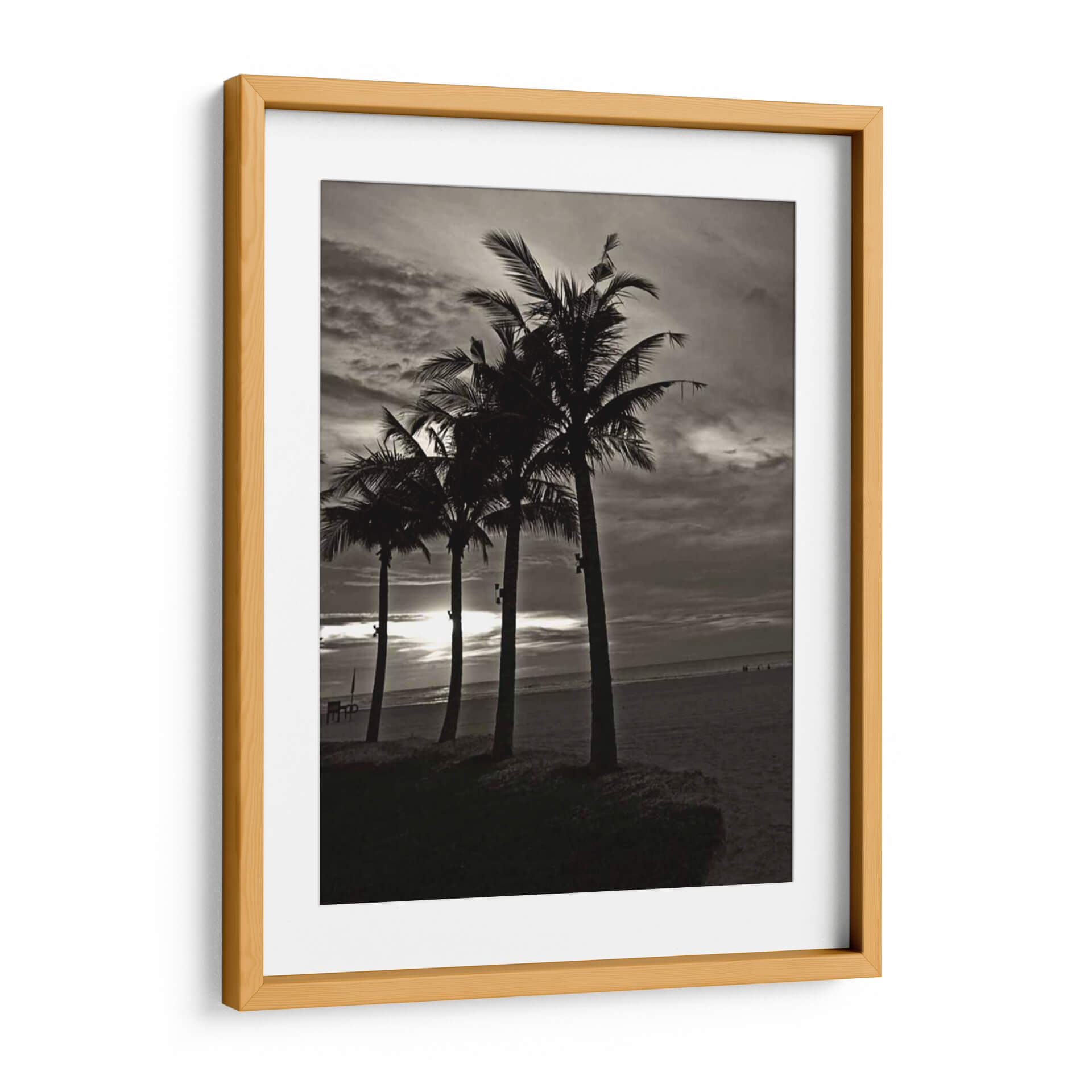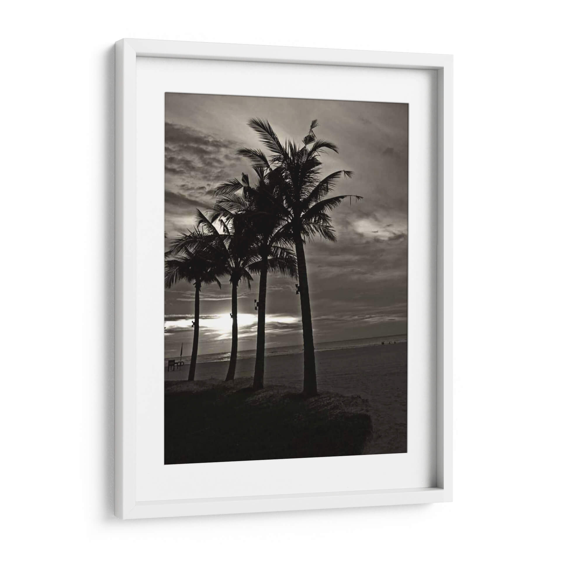 Sumérgete en la serenidad de "Palmas En La Noche Iii" de Tang Ling, un cuadro decorativo que captura la esencia de una playa al atardecer. Esta obra en blanco y negro presenta una fila de palmeras recortadas contra un cielo dramático y nublado, con el sol filtrándose tenuemente a través de las nubes, creando un ambiente de tranquilidad y misterio. La composición, con las palmeras como siluetas protagonistas sobre la arena y el mar al fondo, invita a la contemplación y evoca la calma de una brisa marina nocturna. Su estilo fotográfico y la paleta de tonos grises y negros la convierten en una pieza versátil, ideal para añadir un toque de sofisticación y un aire vacacional a salones modernos, dormitorios acogedores u oficinas que buscan inspiración. "Palmas En La Noche Iii" no es solo una decoración de pared, sino una ventana a un momento de paz, perfecta para quienes buscan arte que conecte con la naturaleza y ofrezca un refugio visual. Transforma tu espacio con esta cautivadora estampa que evoca la belleza atemporal de la costa.
