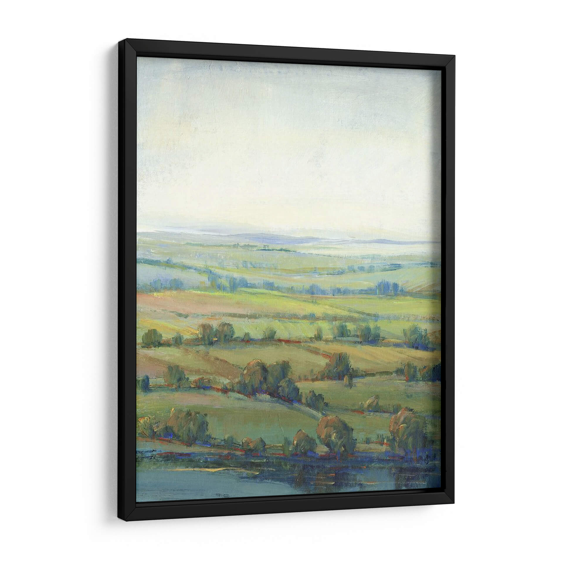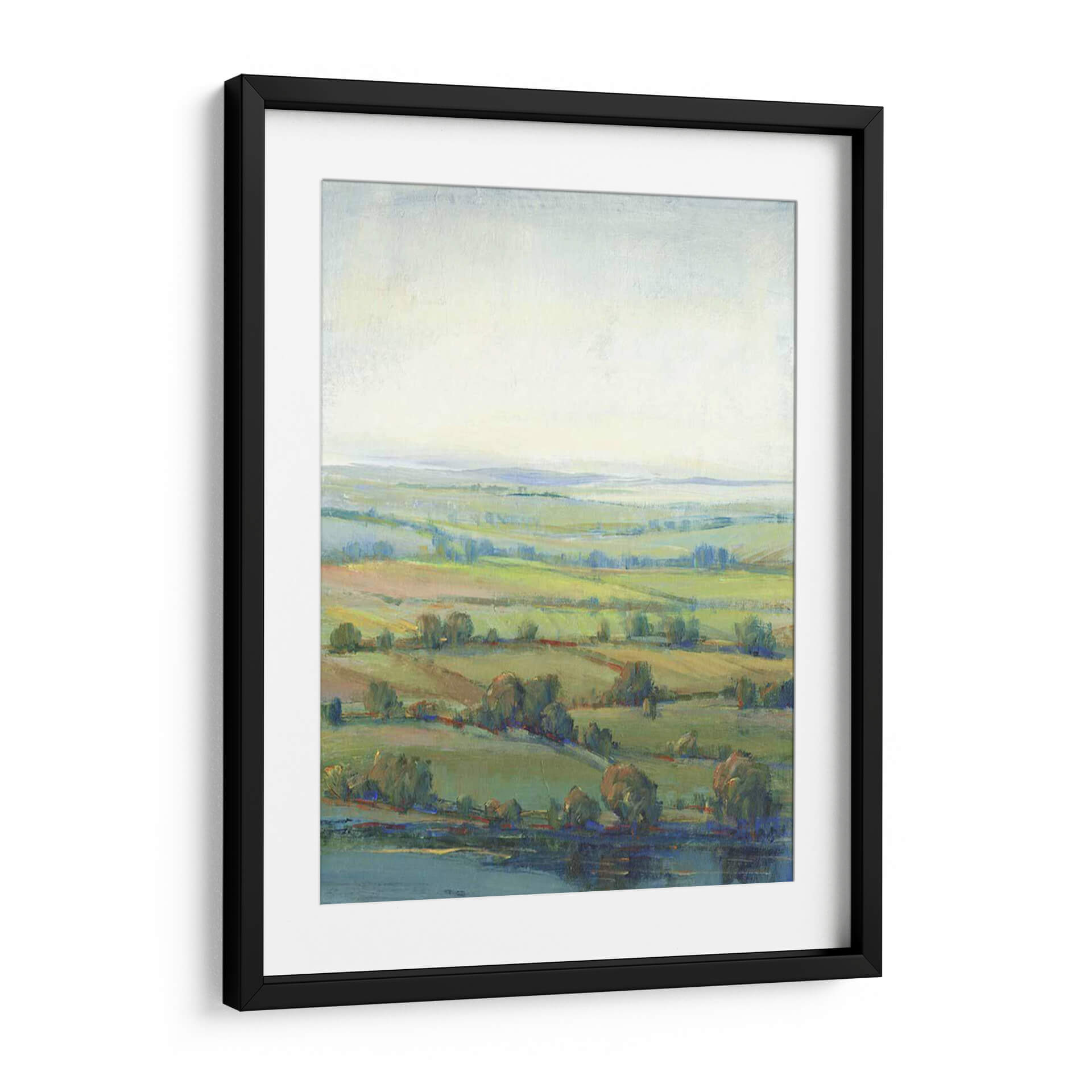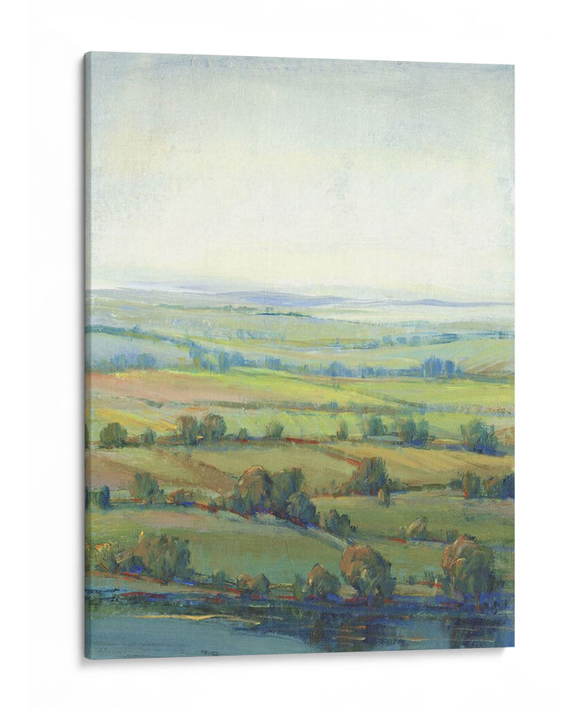 Sumérgete en la serena belleza de 'Paradise Valley I', una cautivadora obra de arte de Tim O'Toole que captura la esencia de un paisaje pastoral idílico. Esta pieza evoca una sensación de paz y tranquilidad a través de su delicada paleta de colores, dominada por suaves tonos verdes, azules celestes y ocres terrosos. Las pinceladas sueltas y la técnica impresionista crean una atmósfera etérea, invitando al espectador a perderse en la profundidad de sus colinas onduladas y la calma de su cuerpo de agua. El juego de luces y sombras, sutil pero efectivo, da vida al lienzo, sugiriendo una brisa suave que acaricia los campos y árboles dispersos. 'Paradise Valley I' es más que un simple cuadro decorativo; es una ventana a un mundo de contemplación y serenidad, ideal para añadir un toque de calma y sofisticación a tu sala de estar, dormitorio u oficina. Su composición expansiva y sus colores armoniosos lo convierten en una adición versátil para cualquier espacio que busque evocar una conexión con la naturaleza y un refugio visual del ajetreo diario. Descubre cómo esta obra puede transformar tu hogar en un santuario de paz.