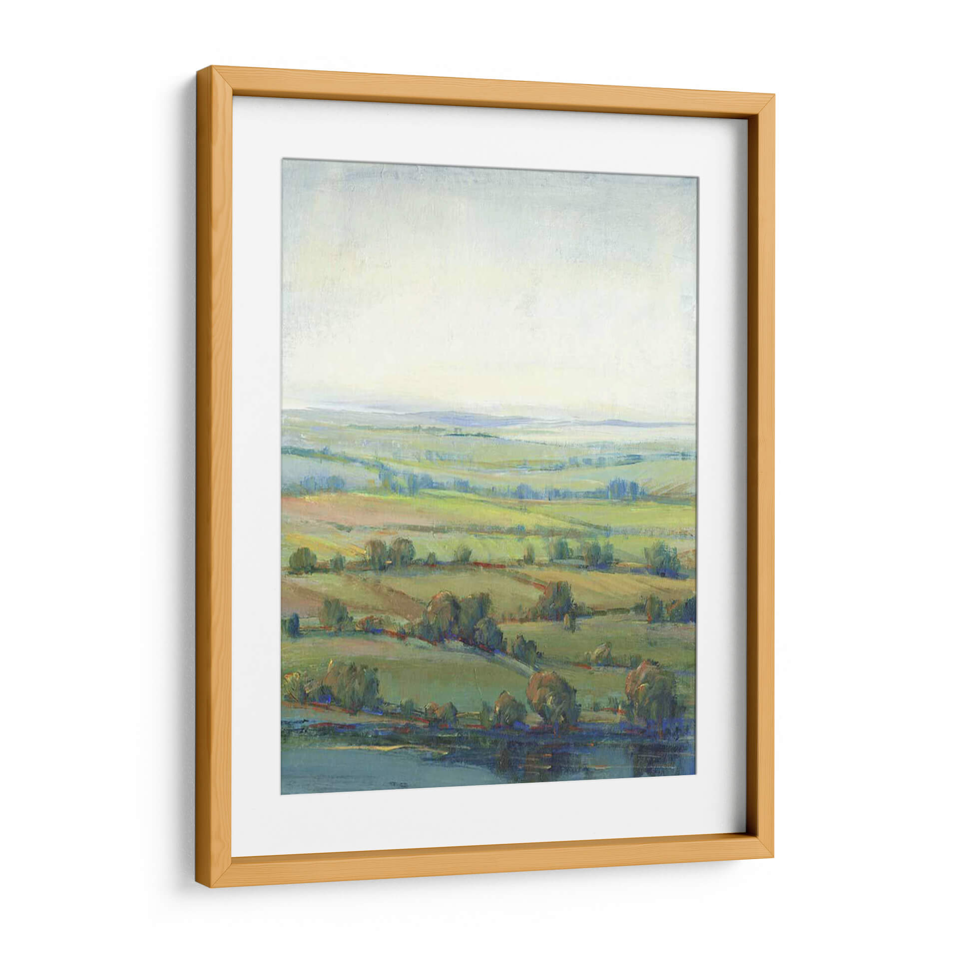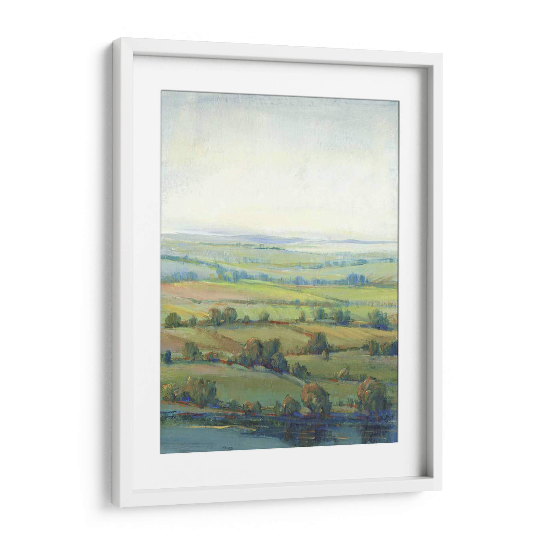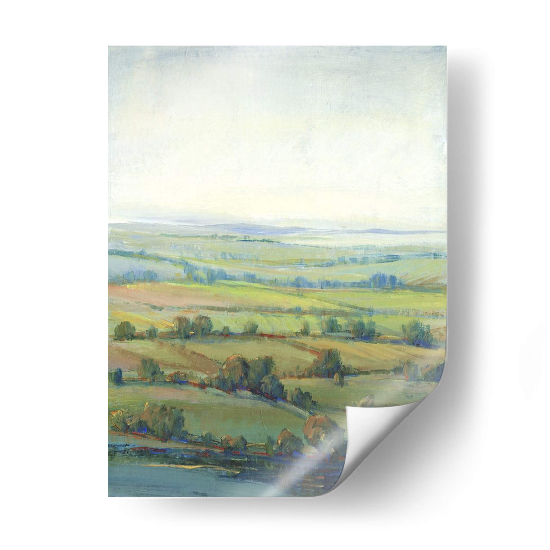 Sumérgete en la serena belleza de 'Paradise Valley I', una cautivadora obra de arte de Tim O'Toole que captura la esencia de un paisaje pastoral idílico. Esta pieza evoca una sensación de paz y tranquilidad a través de su delicada paleta de colores, dominada por suaves tonos verdes, azules celestes y ocres terrosos. Las pinceladas sueltas y la técnica impresionista crean una atmósfera etérea, invitando al espectador a perderse en la profundidad de sus colinas onduladas y la calma de su cuerpo de agua. El juego de luces y sombras, sutil pero efectivo, da vida al lienzo, sugiriendo una brisa suave que acaricia los campos y árboles dispersos. 'Paradise Valley I' es más que un simple cuadro decorativo; es una ventana a un mundo de contemplación y serenidad, ideal para añadir un toque de calma y sofisticación a tu sala de estar, dormitorio u oficina. Su composición expansiva y sus colores armoniosos lo convierten en una adición versátil para cualquier espacio que busque evocar una conexión con la naturaleza y un refugio visual del ajetreo diario. Descubre cómo esta obra puede transformar tu hogar en un santuario de paz.