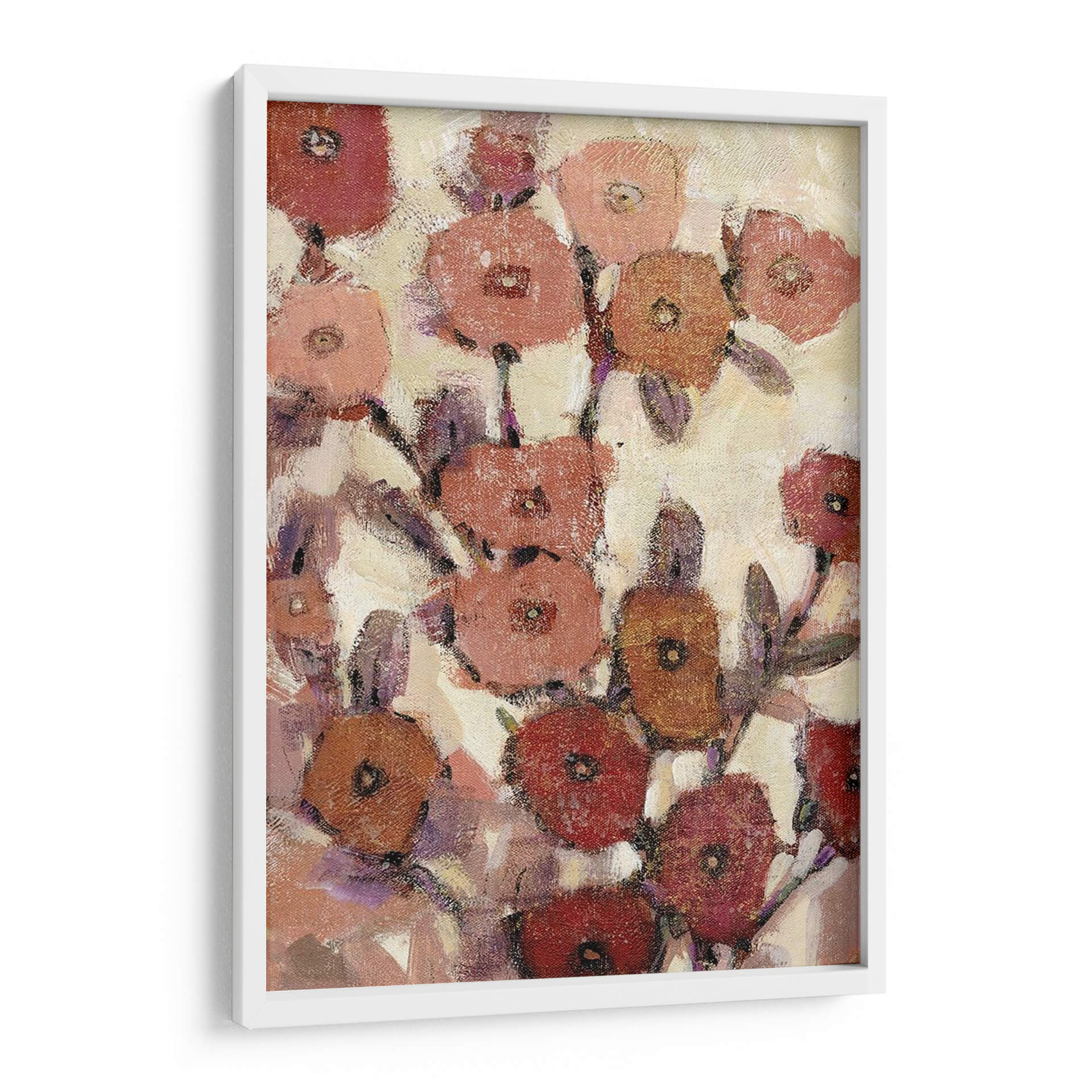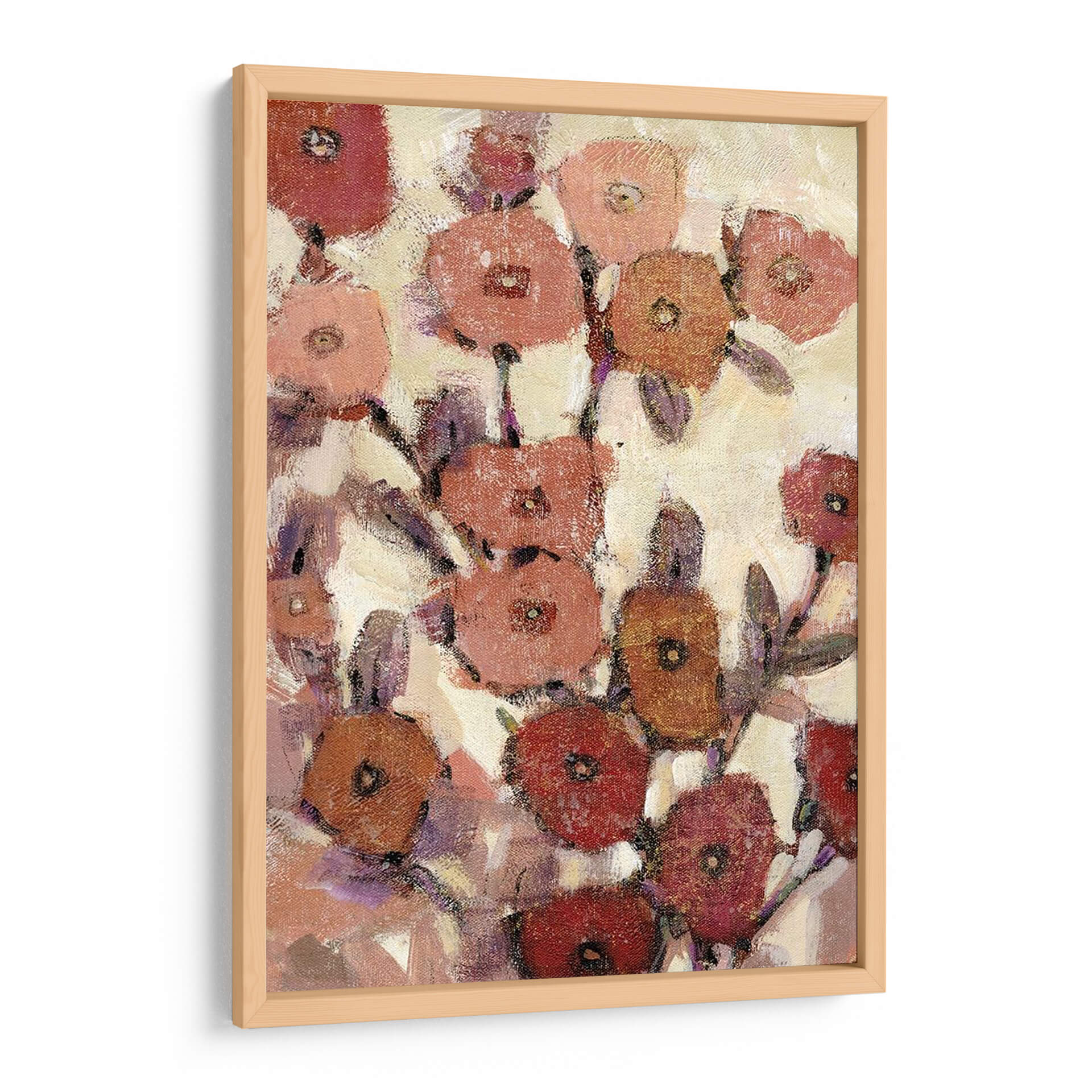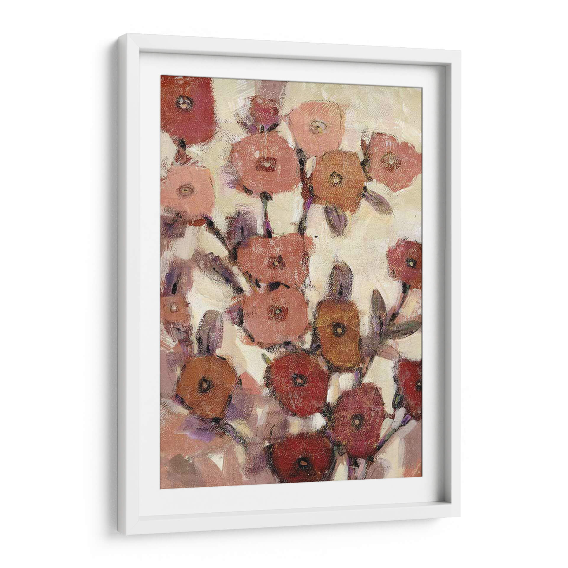 Sumérgete en la delicadeza de "Patrones Florales II", una obra de arte contemporáneo de Tim O'Toole que captura la esencia de un jardín en plena floración con un estilo expresionista y una paleta de colores cálidos y terrosos. Cada pétalo, pintado con pinceladas audaces pero sutiles, evoca una sensación de movimiento y vida, creando un tapiz visual que invita a la contemplación. Los tonos rojizos, rosados, anaranjados y púrpuras se entrelazan sobre un fondo cremoso, aportando calidez y serenidad a cualquier espacio. Esta pieza es ideal para añadir un toque de naturaleza estilizada y elegancia a salones modernos, dormitorios acogedores u oficinas que buscan un ambiente inspirador y relajante. "Patrones Florales II" no es solo una decoración, es una invitación a la belleza efímera de las flores, reinterpretada a través de la visión artística de O'Toole, transformando tu pared en un lienzo de emociones y texturas.