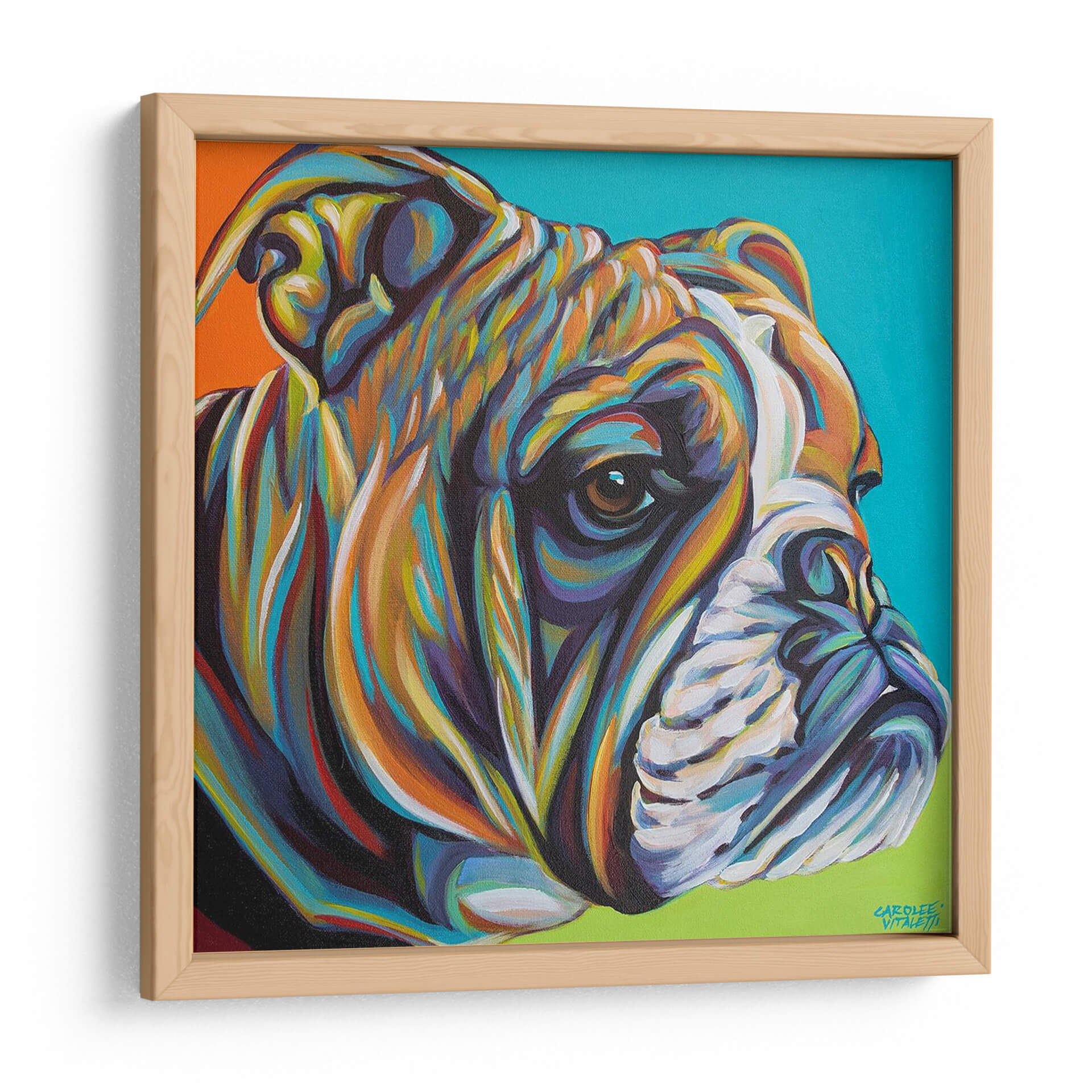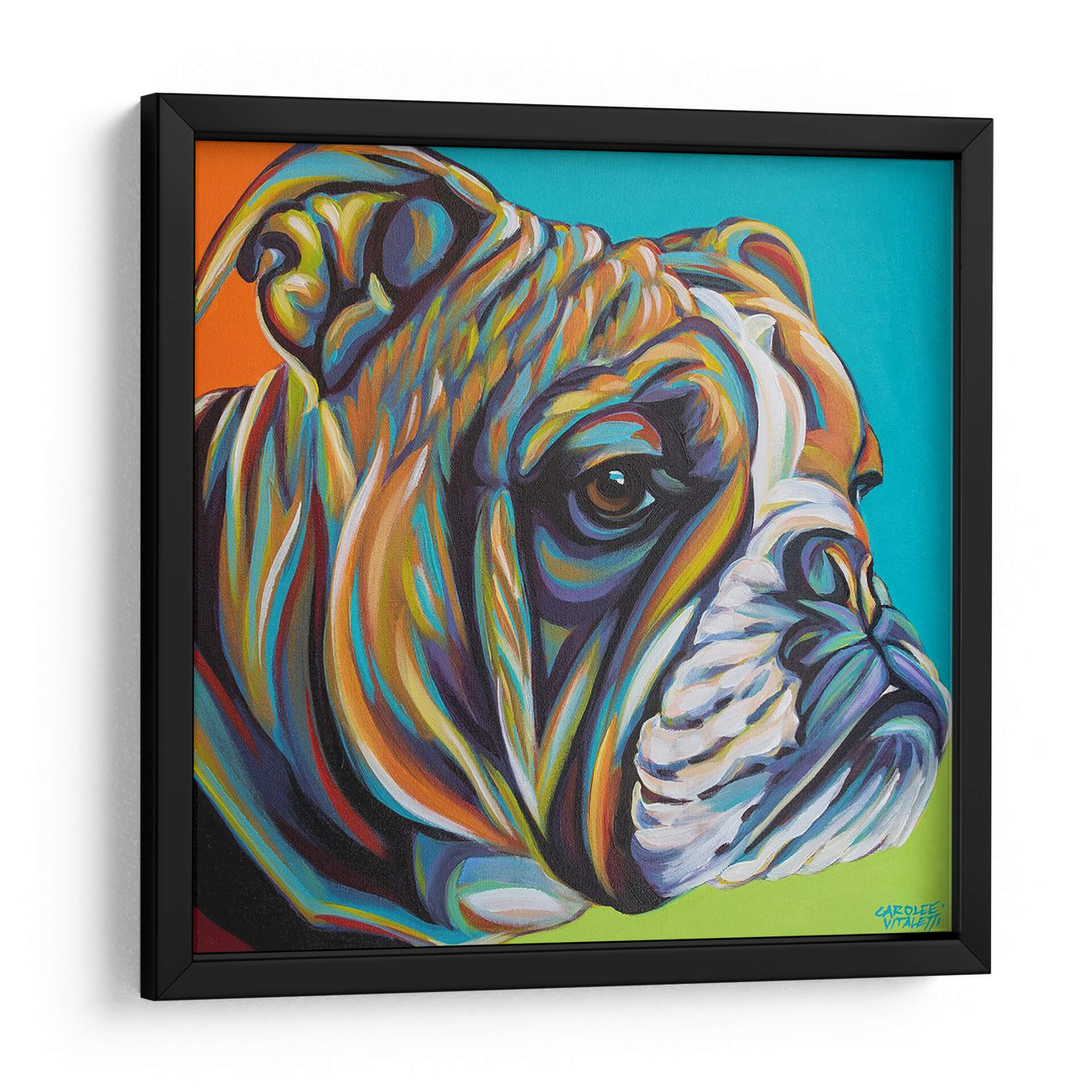 Captura la esencia de la lealtad y el carácter juguetón con "Perro Amigo I", una obra de arte vibrante y expresiva de Carolee Vitaletti. Este cuadro decorativo presenta un retrato estilizado de un bulldog, donde las pinceladas audaces y la paleta de colores rica y saturada dan vida a la expresión del animal. Tonos de azul turquesa, naranja intenso, amarillo vibrante y toques de púrpura y verde se entrelazan para crear una imagen dinámica que irradia energía y calidez. El estilo distintivo de Vitaletti, que fusiona elementos de arte pop con una técnica casi cubista en la representación de formas, hace de esta pieza un punto focal cautivador. Es el tipo de arte de pared que no solo decora, sino que también genera conversación, aportando personalidad a cualquier espacio. Ideal para amantes de los perros, coleccionistas de arte contemporáneo o cualquiera que busque añadir un toque de color y alegría a su hogar u oficina. Este cuadro decorativo es perfecto para iluminar un salón moderno, añadir carácter a un estudio o infundir vitalidad a un dormitorio.