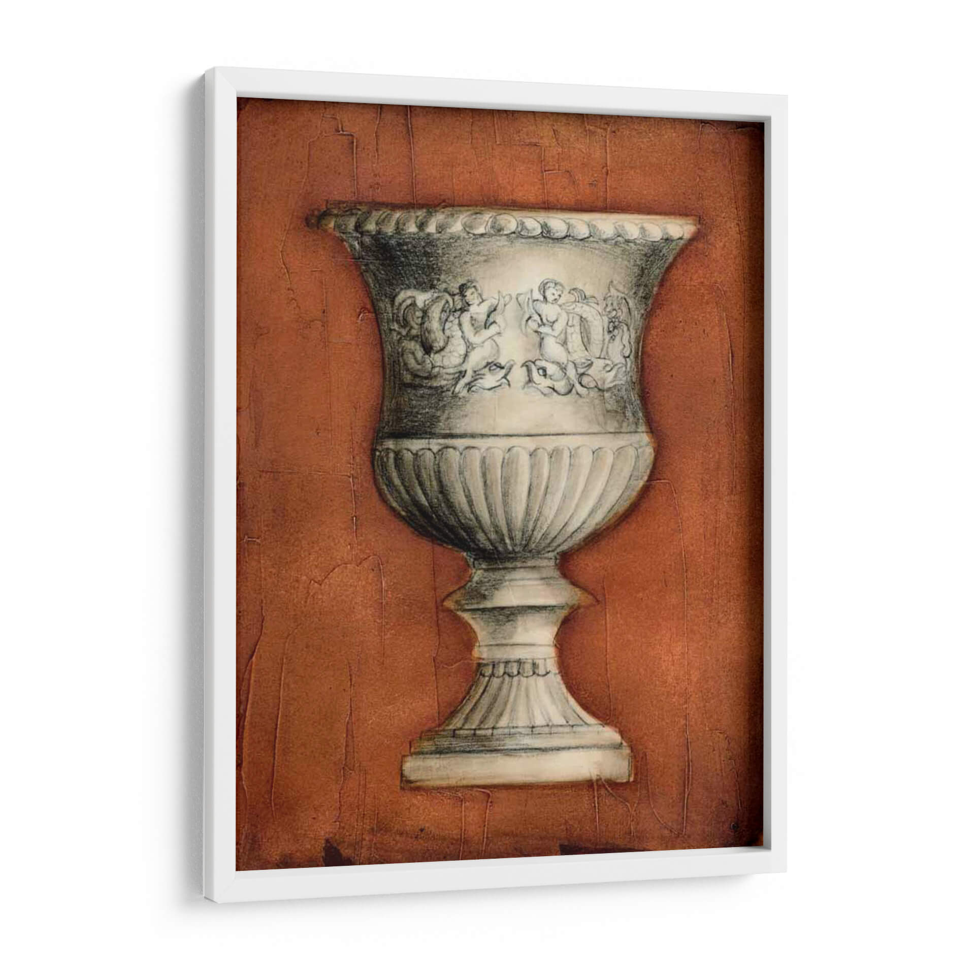Descubre la obra "Piedra Embarcaciones III" de Ethan Harper, un cuadro decorativo que evoca la magnificencia de la antigüedad con un toque contemporáneo. Esta pieza cautiva por su detallada representación de una urna clásica, adornada con figuras alegóricas y motivos clásicos, ejecutada con una técnica que recuerda al carboncillo y al pastel sobre un fondo texturizado de tonos terracota y óxido. La paleta de colores, centrada en grises, blancos y el vibrante marrón rojizo del fondo, crea un contraste visual impactante, aportando profundidad y calidez a cualquier espacio. El estilo, que fusiona el dibujo académico con una atmósfera expresionista, dota a la urna de una presencia sólida y atemporal. La composición se centra en la majestuosidad del objeto, invitando a la contemplación y al aprecio por la historia y el arte. "Piedra Embarcaciones III" es ideal para añadir un punto de sofisticación y carácter a salones, estudios o despachos, transformando paredes vacías en lienzos de conversación y elegancia. Transmite una sensación de historia reinterpretada, perfecta para quienes buscan piezas únicas con alma y narrativa.