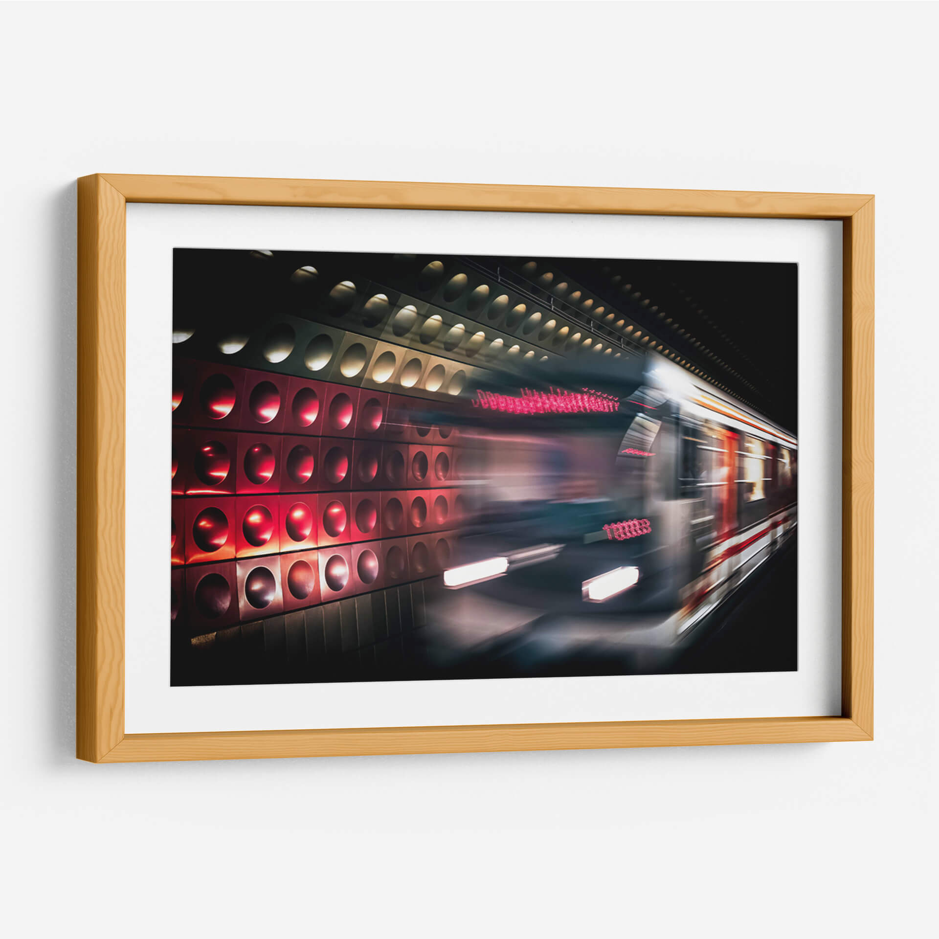 Captura la esencia dinámica y el misterio urbano con "Praga. Viaje en metro", una obra de arte contemporáneo que te transporta al corazón de la ciudad. Este cuadro decorativo, de la artista Claudia Luna, inmortaliza la energía de un tren en movimiento a través de una estación subterránea, creando una sensación de velocidad y profundidad. La paleta de colores se centra en tonos oscuros y contrastes vibrantes, con el rojo intenso de las luces y la pared decorada con círculos que parecen perforar la oscuridad, interactuando con el blanco brillante de los faros del tren. La composición, con su perspectiva dinámica y el efecto de desenfoque, evoca la fugacidad del momento y la constante evolución de la vida urbana. "Praga. Viaje en metro" es ideal para espacios que buscan un toque de modernidad y sofisticación, como una sala de estar contemporánea, un estudio o una oficina. Su atmósfera enigmática y llena de movimiento puede ser un excelente punto focal, inspirando conversaciones y añadiendo carácter a cualquier ambiente. Transforma tu pared con este fascinante viaje visual a través de la arquitectura y el alma de una ciudad en constante movimiento, una pieza que combina arte y vida urbana de manera excepcional, perfecta para quienes aprecian la fotografía urbana y el arte abstracto con narrativas sugerentes.