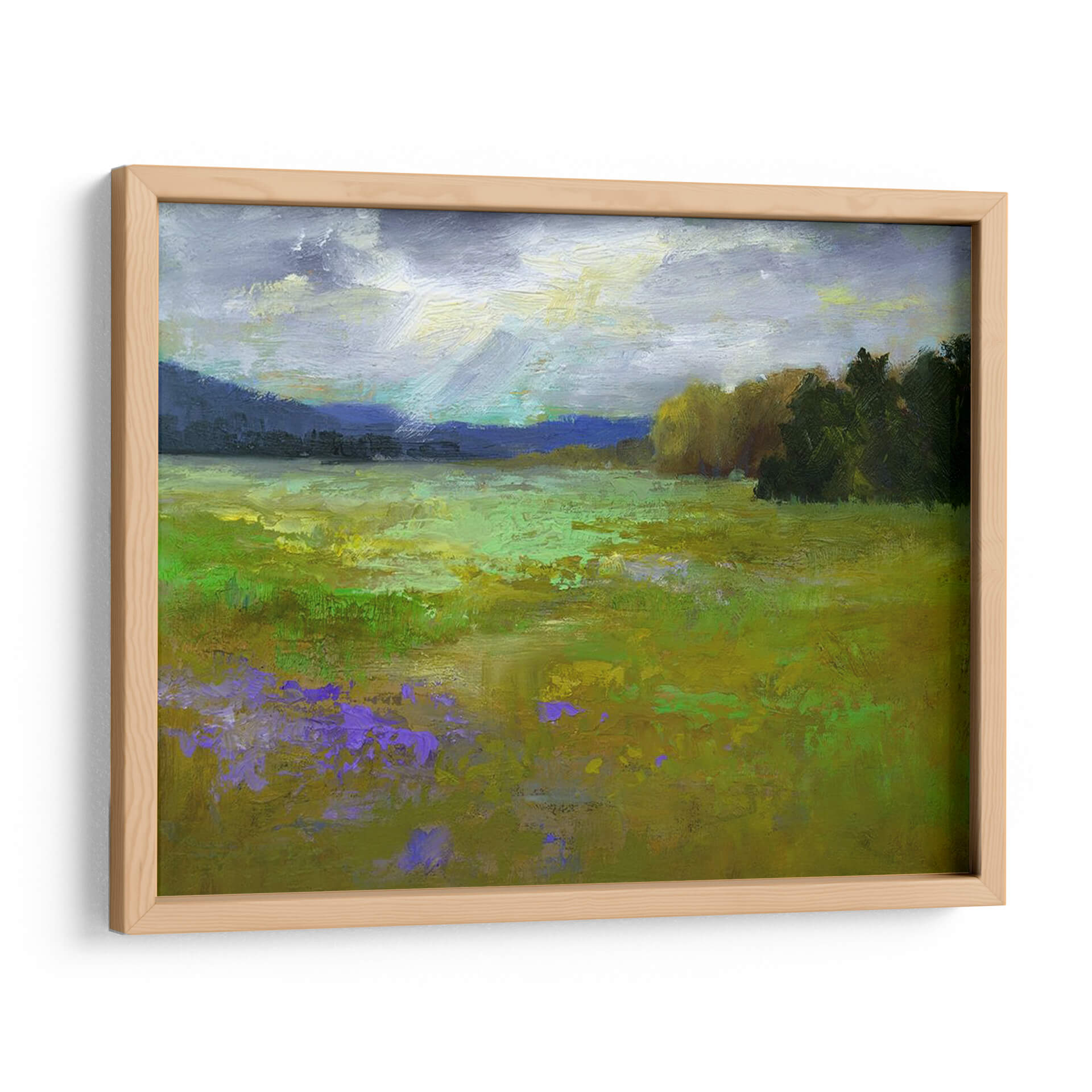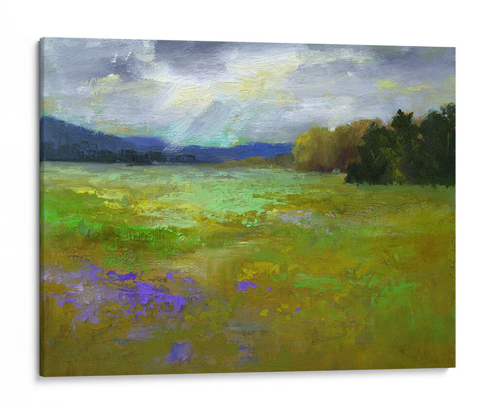 Sumérgete en la serena belleza de "Primavera" de Sheila Finch, un cuadro decorativo que captura la esencia de un paisaje exuberante en plena floración. Esta obra maestra evoca una sensación de tranquilidad y renovación, transportando al espectador a un prado bañado por la luz y salpicado de vibrantes toques de color púrpura. La paleta de verdes intensos, amarillos dorados y el delicado azul del cielo crean una atmósfera armoniosa y llena de vida. Finch utiliza pinceladas expresivas para dar textura y profundidad, invitando a la contemplación. El contraste entre las suaves colinas del fondo y el primer plano detallado de flores silvestres atrae la mirada, generando un dinamismo sutil. Ideal para añadir un toque de naturaleza y serenidad a tu sala de estar, dormitorio o incluso a un espacio de oficina que necesite un respiro visual. Este cuadro decorativo es perfecto para quienes buscan una pieza que combine arte contemporáneo con la atemporalidad de la naturaleza, añadiendo un punto focal inspirador y refrescante a cualquier ambiente. Transforma tu hogar en un santuario de paz y belleza con esta exquisita representación de la primavera.