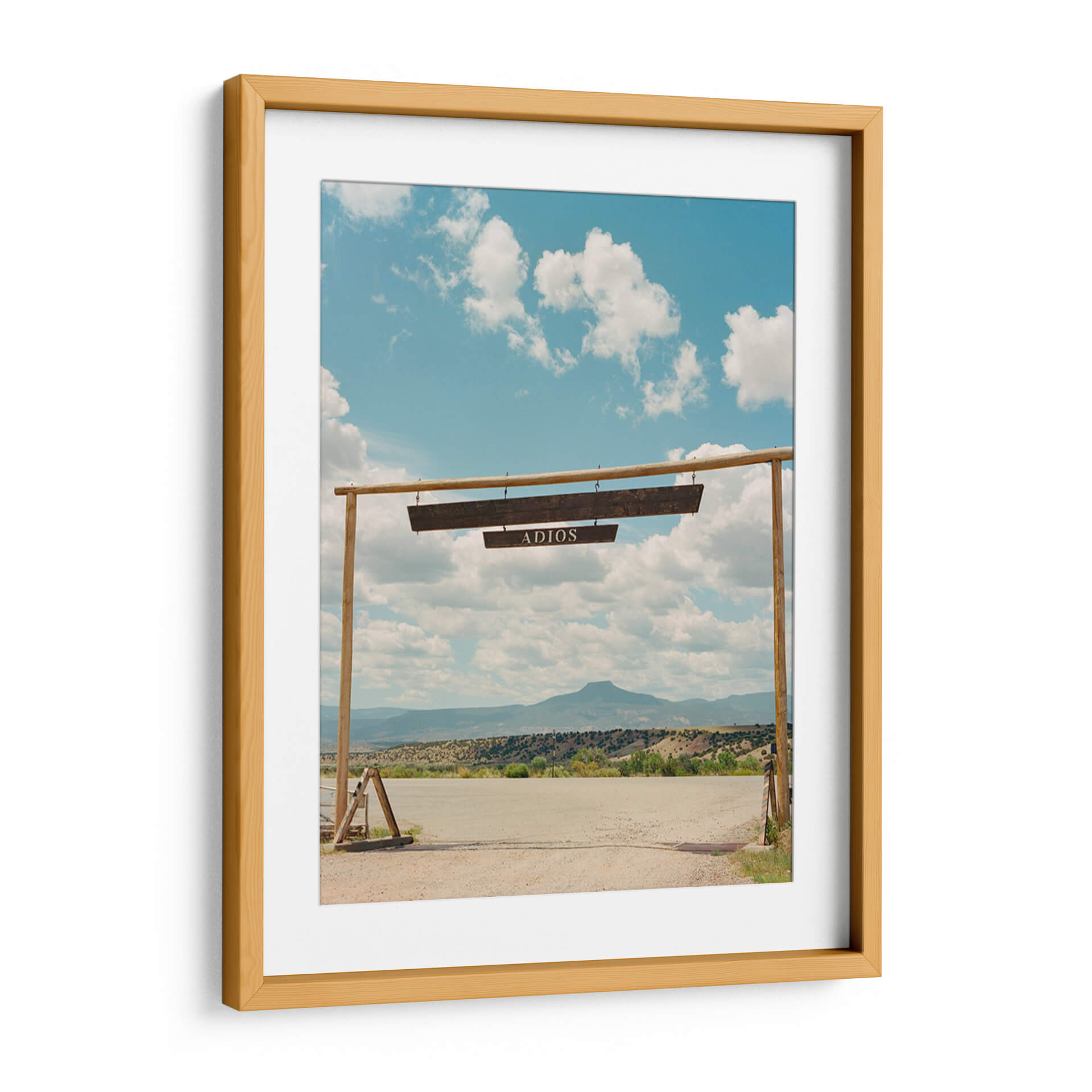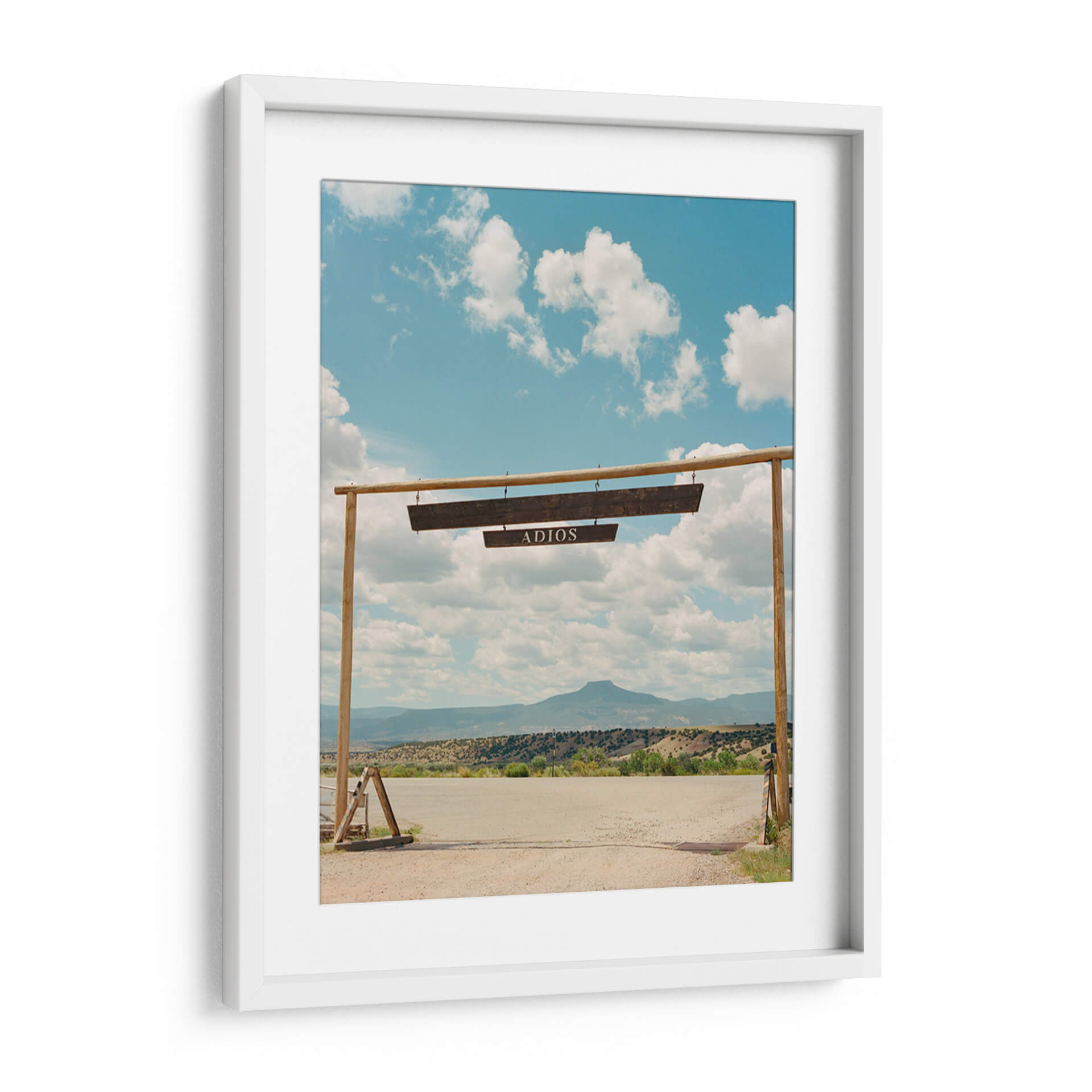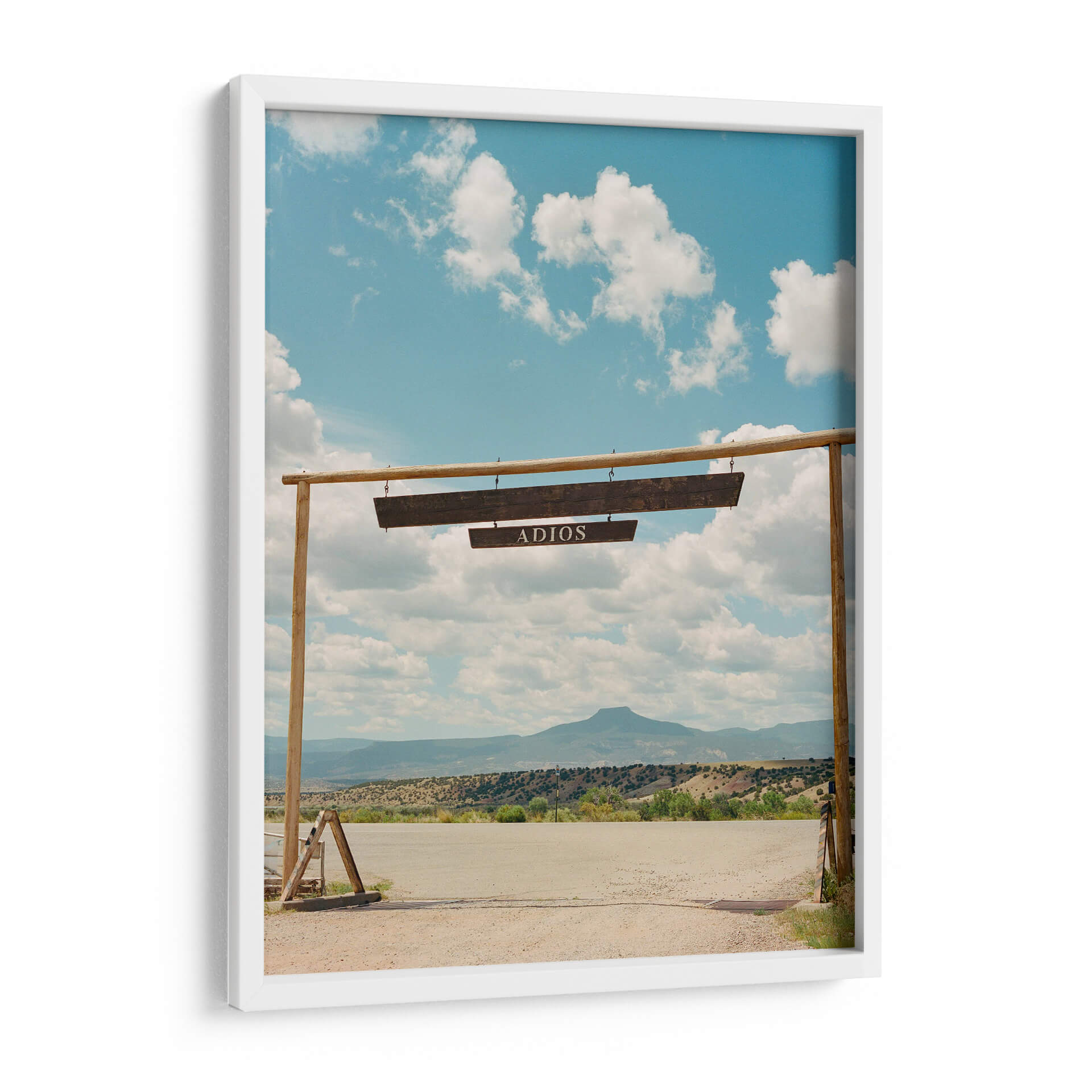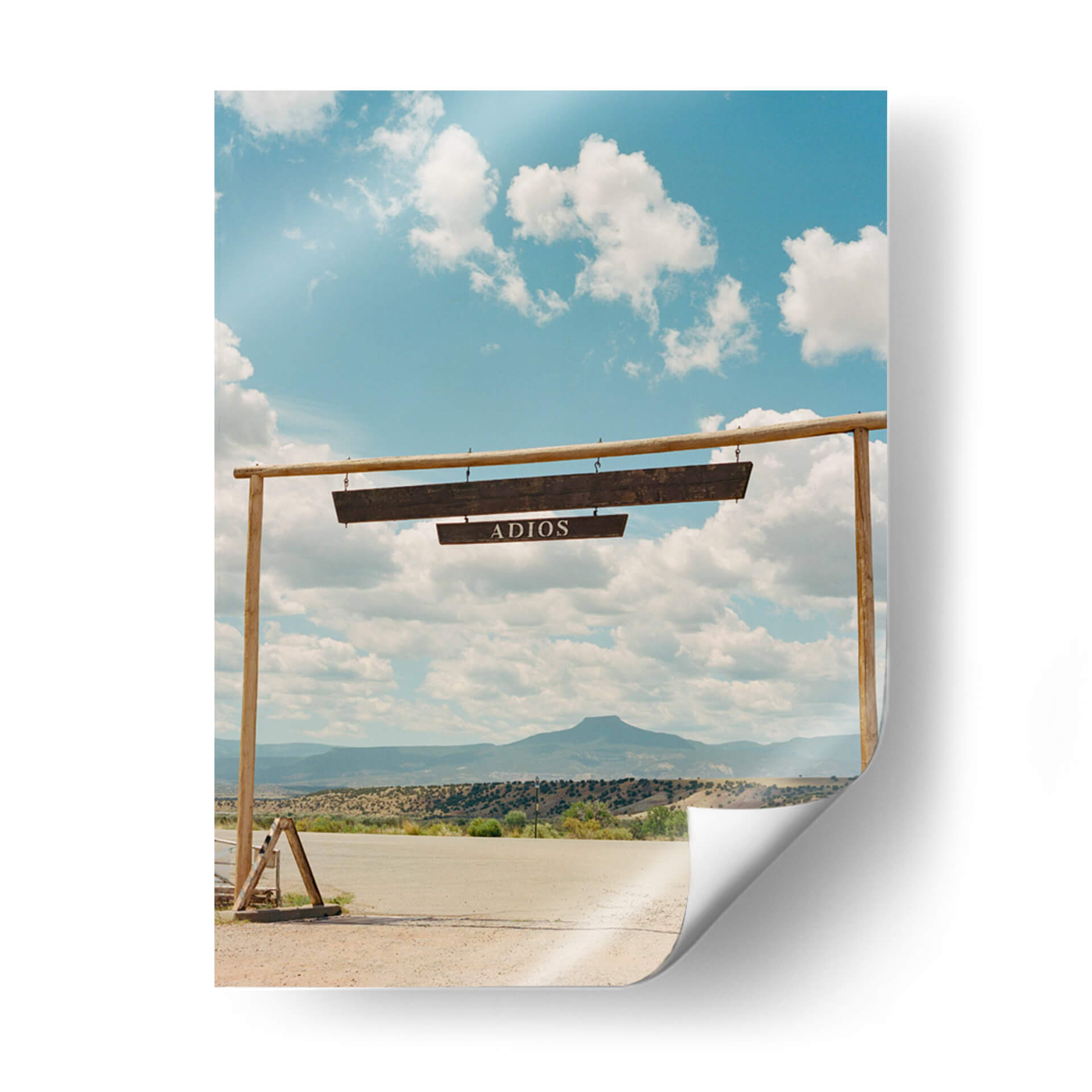 Sumérgete en la serenidad del Oeste americano con 'Rancho Fantasma X', una obra de Bethany Young que captura la esencia de un paisaje desértico bajo un cielo azul vibrante y nubes algodonosas. Este cuadro decorativo te transporta a un camino polvoriento que se extiende hacia un horizonte montañoso, enmarcado por un rústico portal de madera. La inscripción 'ADIOS' en un letrero suspendido añade un toque de melancolía y nostalgia, invitando a la reflexión sobre los viajes y los destinos. La paleta de colores, dominada por azules celestes, ocres terrosos y verdes sutiles, crea una atmósfera de calma y espacio abierto. Su estilo fotográfico y realista, con una composición equilibrada que guía la mirada hacia el vasto paisaje, lo convierte en una pieza ideal para añadir profundidad y carácter a salones modernos, estudios o incluso oficinas. 'Rancho Fantasma X' no es solo una imagen, es una invitación a evocar sensaciones de libertad, aventura y la belleza atemporal de la naturaleza, transformando cualquier pared en una ventana a un mundo de tranquilidad y contemplación. Una adición perfecta para quienes buscan arte con narrativa y una conexión emocional.