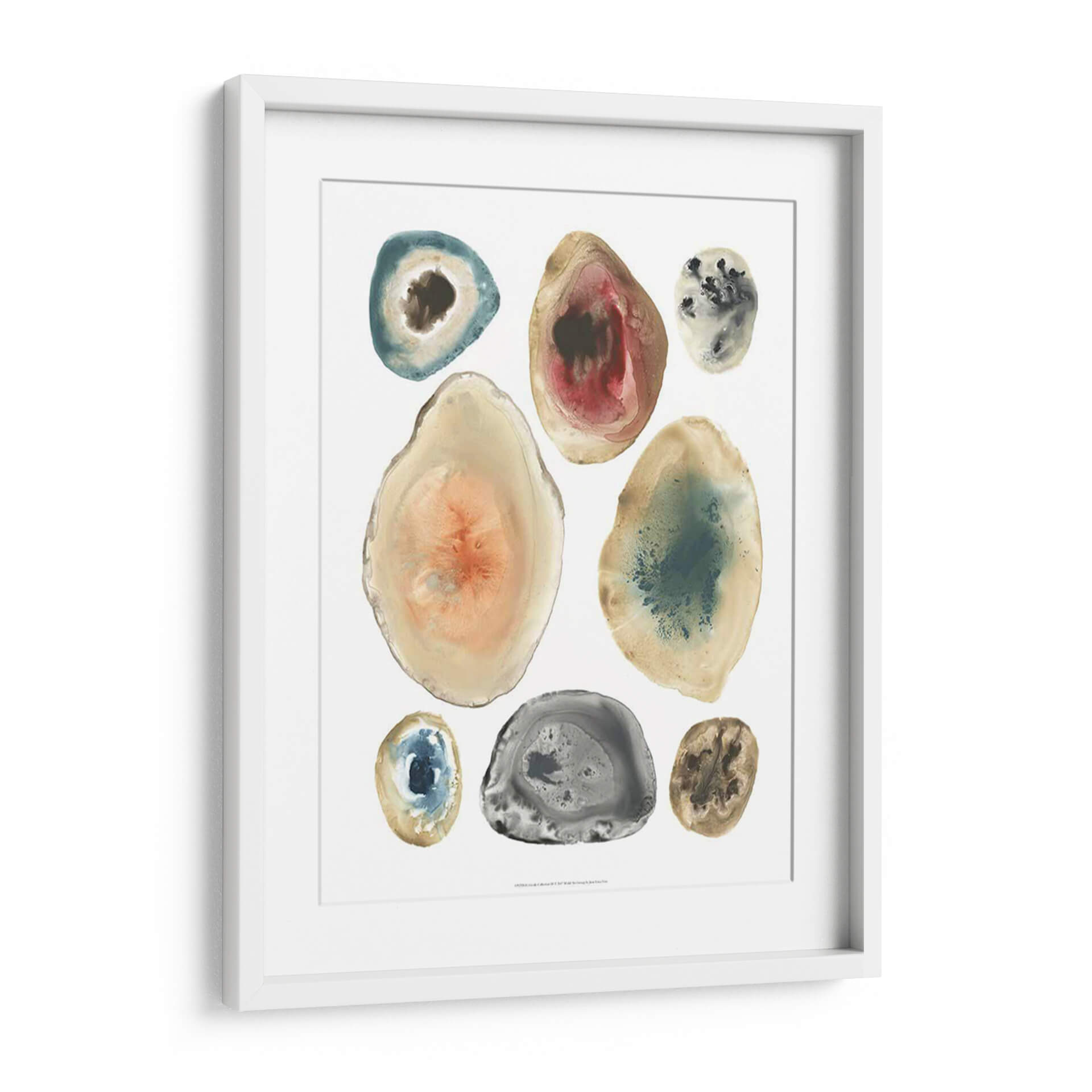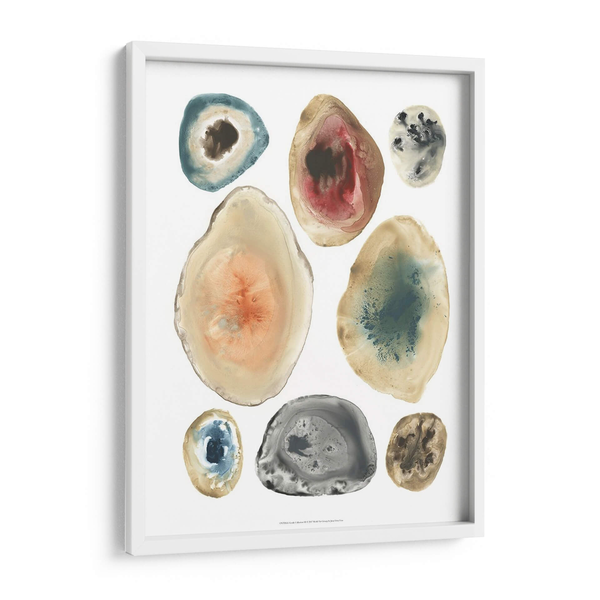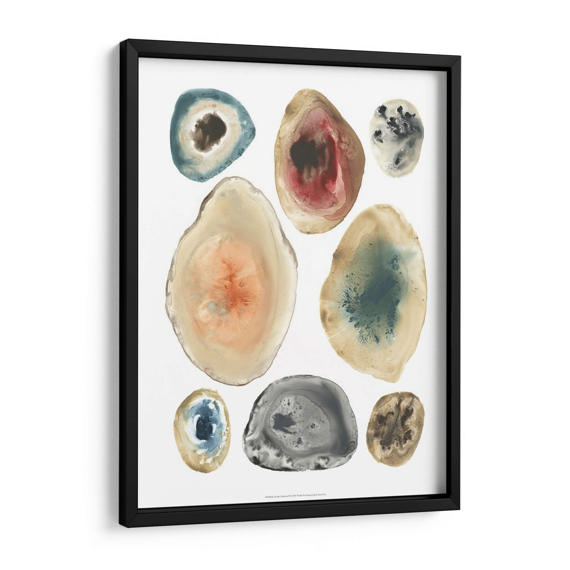 Sumérgete en la belleza natural y la energía de la tierra con "Recolección Geode III", una obra de arte contemporáneo de June Erica Vess. Este cuadro decorativo presenta una cautivadora colección de cortes transversales de geodas, cada una meticulosamente representada con acuarela para capturar sus intrincados patrones y texturas. La paleta de colores, que abarca tonos cálidos de tierra, rosas empolvados, azules serenos y grises profundos, evoca una sensación de calma y sofisticación. Las formas orgánicas y fluidas de las geodas, junto con la delicada aplicación de la pintura, crean una atmósfera de serenidad y asombro geológico. "Recolección Geode III" es ideal para añadir un toque de elegancia natural a cualquier espacio, ya sea un dormitorio tranquilo, una sala de estar moderna o una oficina inspiradora. Este cuadro abstracto es perfecto para aquellos que aprecian la belleza sutil de la naturaleza y buscan una pieza de arte que ofrezca tanto un atractivo visual como una conexión terrenal. Transforma tu hogar u oficina en un santuario de paz y estilo con esta impresionante pieza.