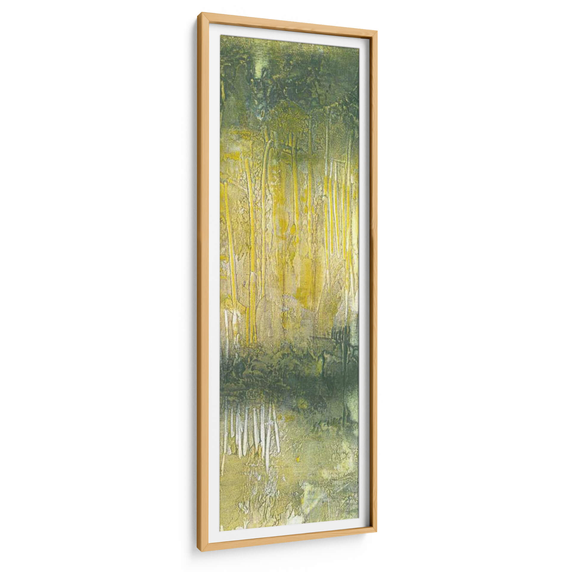 Sumérgete en la serenidad y la belleza natural de "Resumen Línea De Árboles II", una obra de arte contemporáneo que evoca la tranquilidad de un bosque bañado por la luz. Los tonos verdes profundos y los vibrantes amarillos se entrelazan para crear una atmósfera etérea y cautivadora, sugiriendo la majestuosidad de los árboles en su máxima expresión. La textura rica y la composición abstracta invitan a la contemplación, permitiendo que cada observador conecte a un nivel personal con la pieza. Este cuadro decorativo es ideal para transformar cualquier espacio en un oasis de calma y sofisticación. Ya sea que busques añadir un toque de naturaleza a tu sala de estar, crear un rincón de paz en tu dormitorio o infundir serenidad en tu oficina, "Resumen Línea De Árboles II" es la elección perfecta. Su estilo único y su paleta de colores terrosos lo convierten en un elemento decorativo versátil, capaz de complementar una amplia gama de interiores, desde los más modernos hasta los más rústicos. Permite que la fuerza y la delicadeza de este paisaje abstracto inspiren tu día a día y aporten una dimensión artística inigualable a tu hogar.