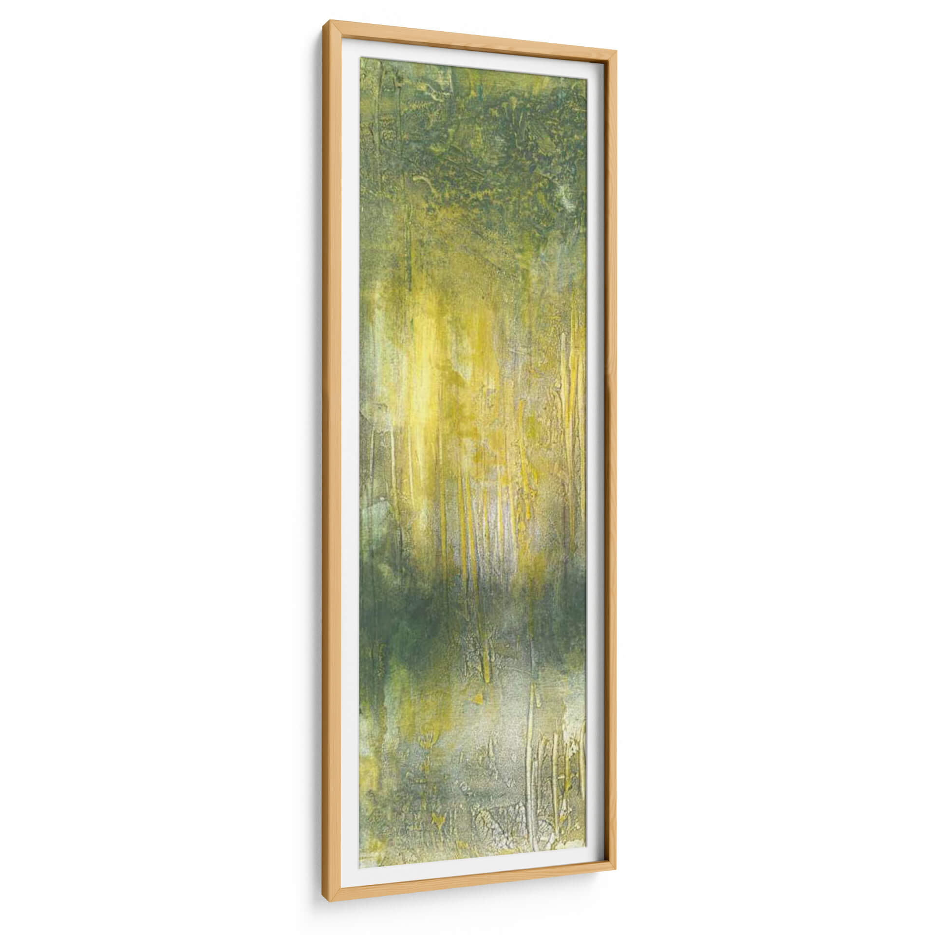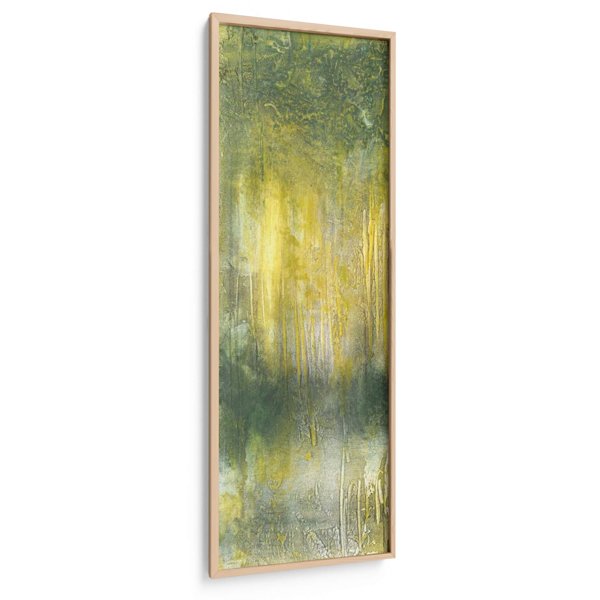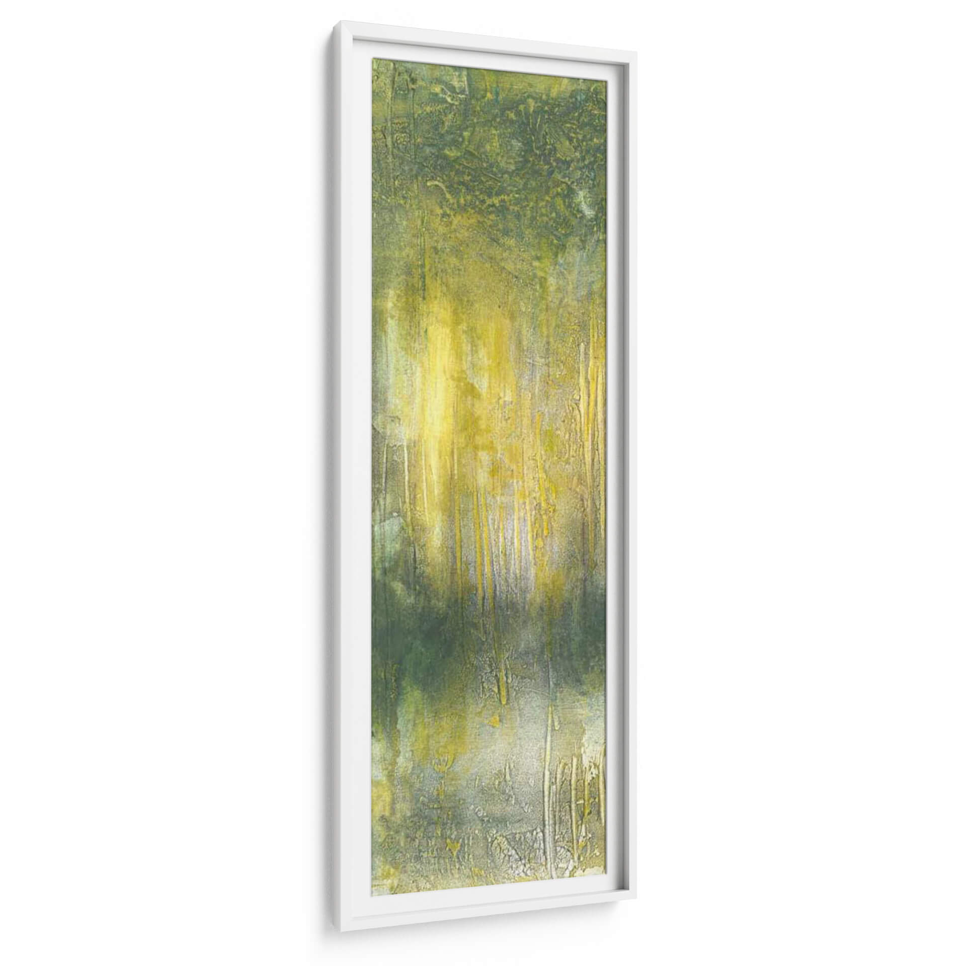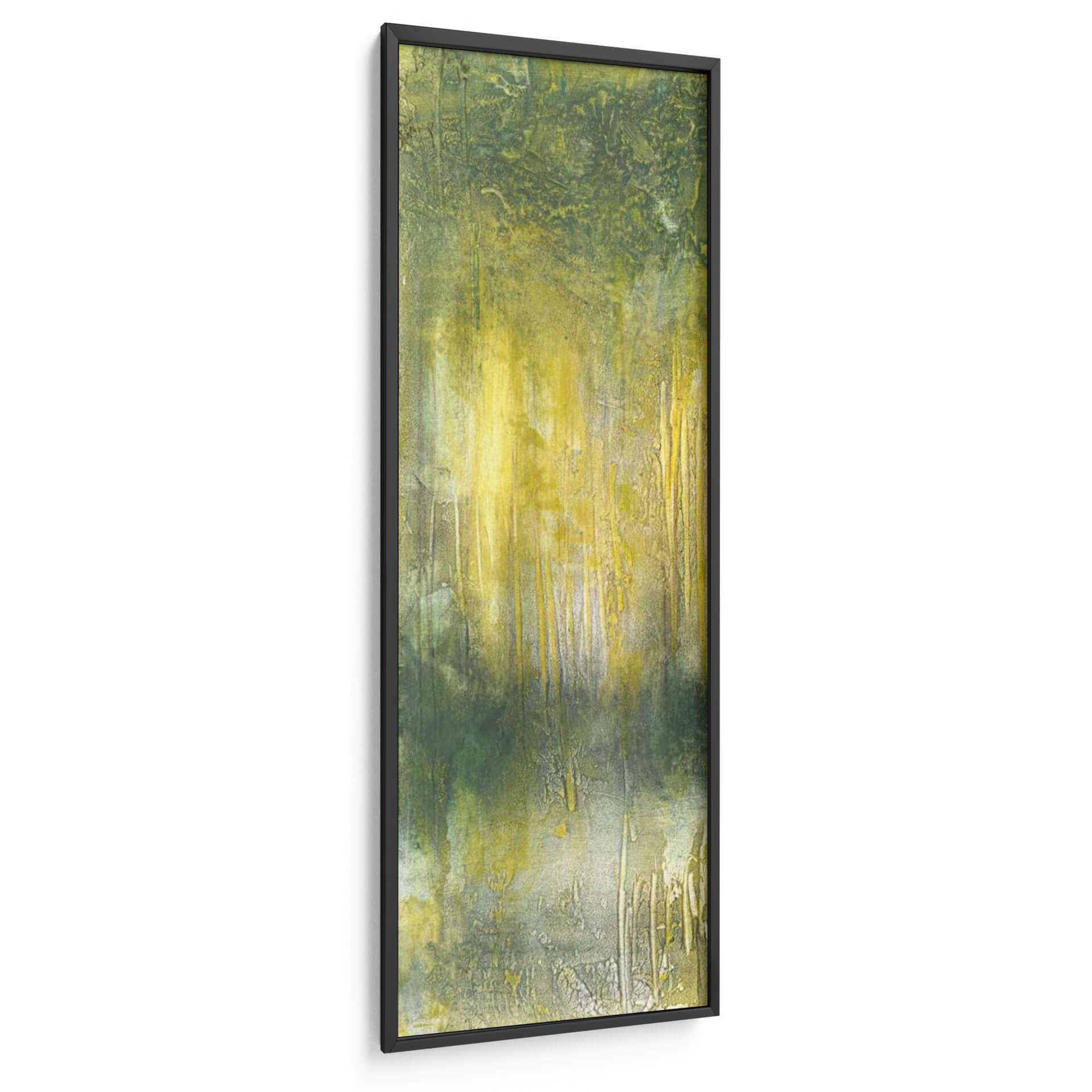 Sumérgete en la serenidad de la naturaleza con este cautivador cuadro decorativo 'Resumen Línea De Árboles Que' de Jennifer Goldberger. La obra evoca la atmósfera de un bosque bañado por la luz del sol, con pinceladas que sugieren la verticalidad de los árboles y la textura del follaje. Predominan los tonos verdes y amarillos vibrantes, creando un contraste sutil y una sensación de profundidad y vitalidad. La técnica abstracta y expresionista de Goldberger permite que cada espectador interprete la escena a su manera, invitando a la contemplación y al descubrimiento de nuevos detalles. Este cuadro es perfecto para añadir un toque de calma y conexión con la naturaleza a cualquier espacio, ya sea tu hogar o tu oficina. Su formato vertical lo hace ideal para pasillos, recibidores o para complementar una pared con otras obras. La textura visible y la riqueza cromática de esta pieza de arte contemporáneo la convierten en un punto focal único que aporta vida y elegancia a la decoración.