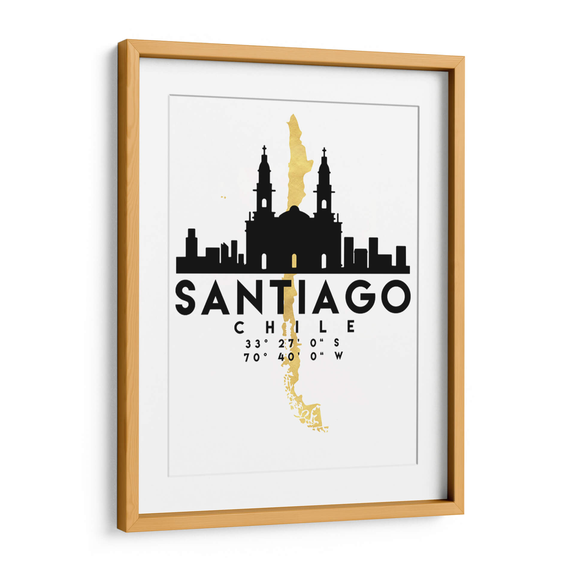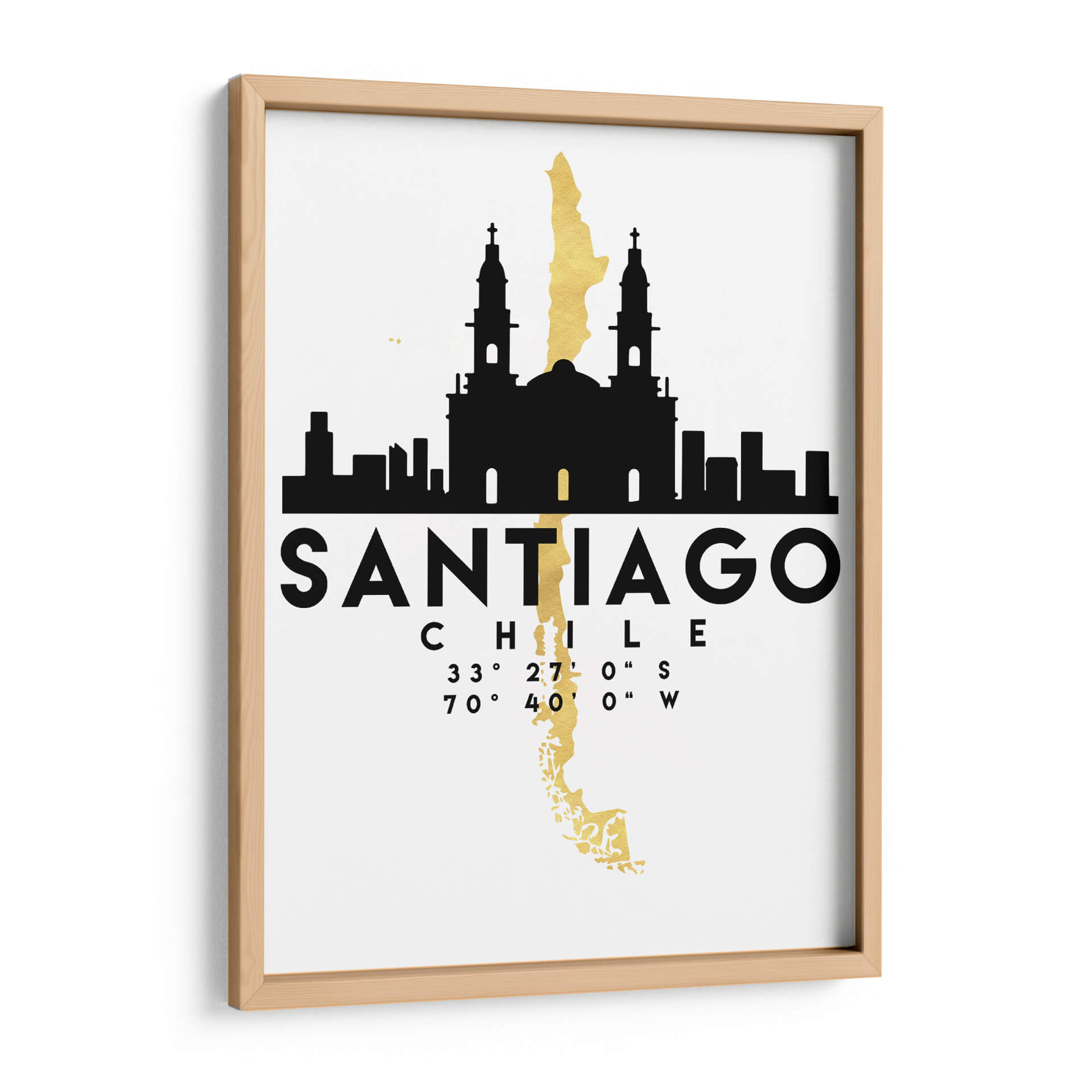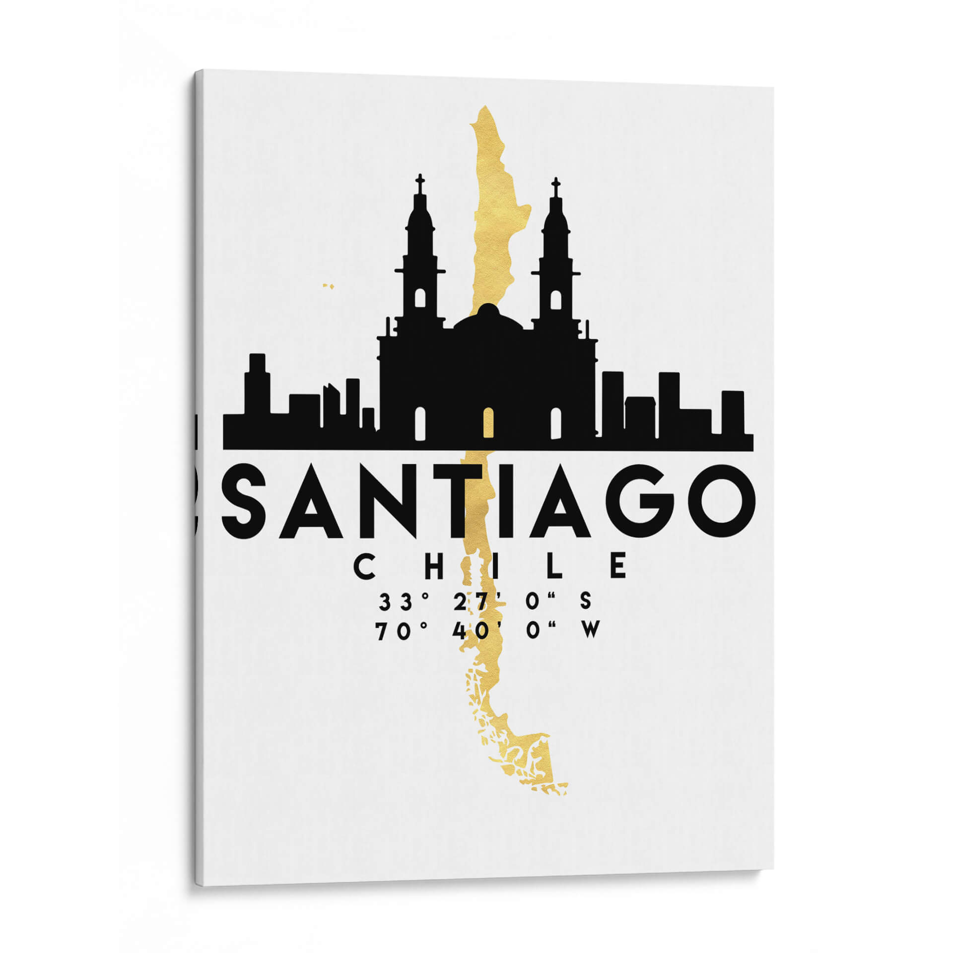 Captura la esencia de la capital chilena con este cautivador cuadro decorativo de Santiago. La obra presenta una silueta estilizada del icónico horizonte de la ciudad, destacando sus edificios emblemáticos y una imponente iglesia con campanarios, todo en un audaz contraste de negro sobre un fondo blanco limpio. Un detalle distintivo es la representación del contorno de Chile en un vibrante tono dorado, que añade un toque de elegancia y riqueza visual. El nombre 'SANTIAGO' se muestra prominentemente en letras mayúsculas negras, junto con las coordenadas geográficas precisas de la ciudad, invitando a un reconocimiento geográfico y sentimental. Este diseño minimalista pero impactante es perfecto para quienes desean añadir un toque de sofisticación urbana y un recordatorio de viajes o aspiraciones a su hogar u oficina. Ideal para salas de estar modernas, estudios o cualquier espacio que se beneficie de un punto focal con carácter y estilo. La simplicidad de su paleta de colores, dominada por el blanco, negro y dorado, asegura que se integre armoniosamente con diversas decoraciones interiores, aportando un aire contemporáneo y distinguido.