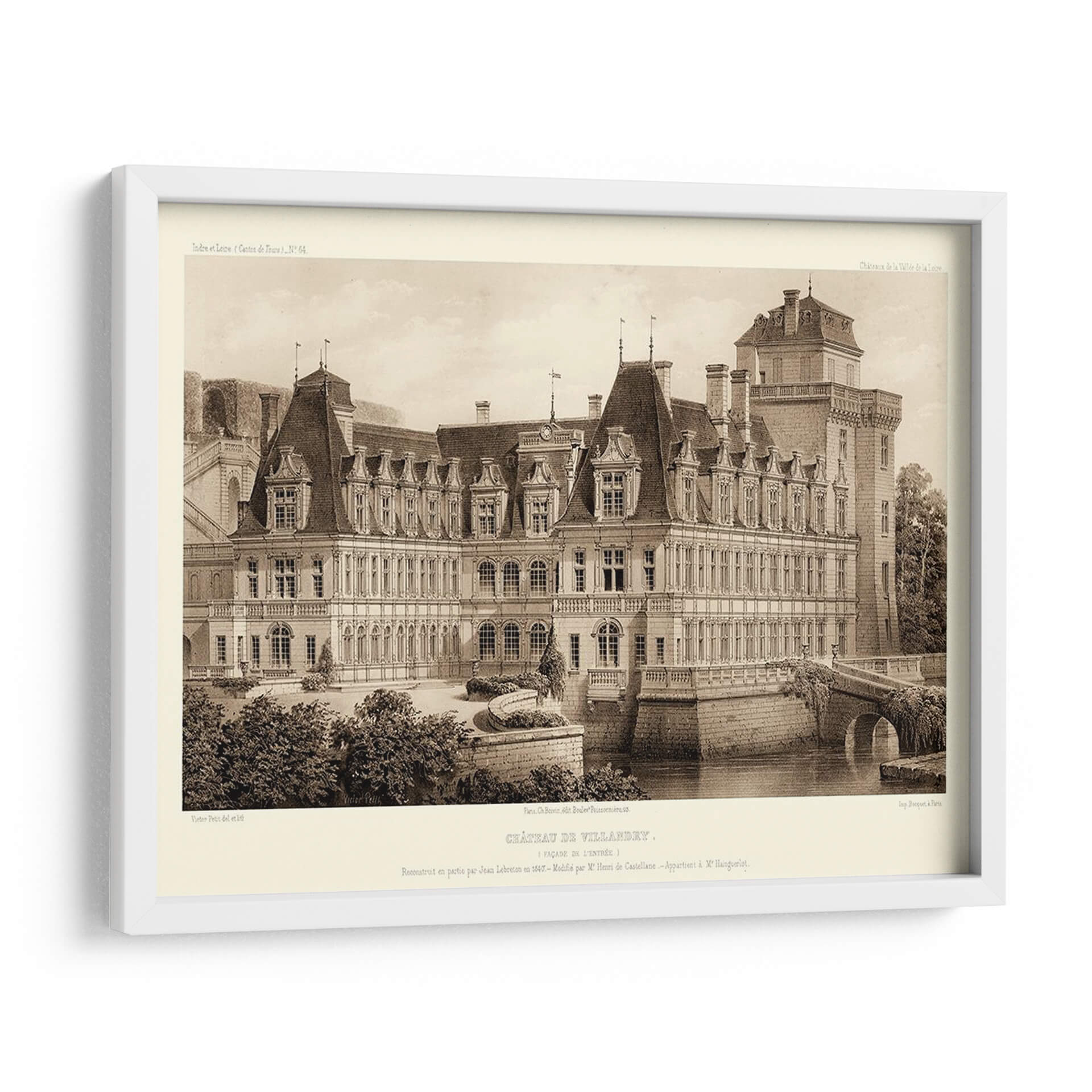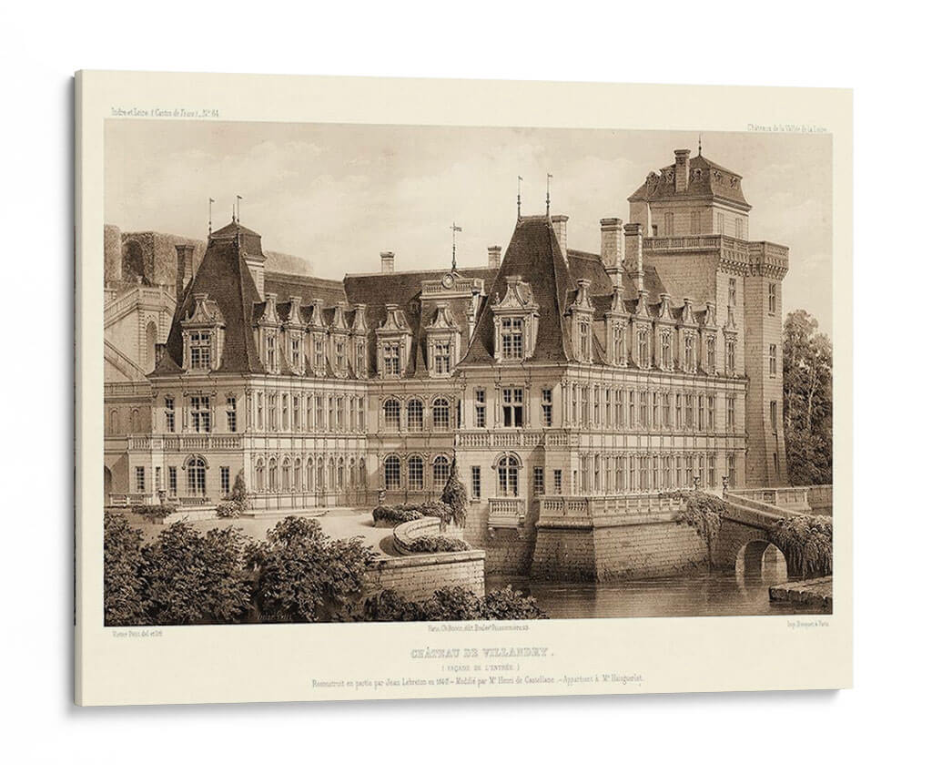 Este cuadro decorativo, titulado "Sepia Chateaux Iv" de Victor Petit, es una evocadora representación de un majestuoso castillo que transporta al espectador a una época de esplendor arquitectónico y serenidad. La obra se despliega en una paleta de sepia que infunde una atmósfera nostálgica y atemporal, realzando los intrincados detalles de la fachada del castillo, sus tejados puntiagudos y las elegantes ventanas. La composición, con el imponente edificio reflejado en el agua tranquila y rodeado de frondosos árboles y un puente de piedra, crea una escena armoniosa y equilibrada. Es una pieza ideal para quienes buscan añadir un toque de elegancia clásica y sofisticación a su hogar u oficina. Imagina este cuadro como el punto focal en un salón de lectura, aportando una sensación de calma y una conexión con la historia. Su estilo detallado y evocador, reminiscentes de grabados históricos, lo convierten en una adición perfecta para espacios que buscan un carácter distintivo y un aire de refinamiento atemporal. Este cuadro decorativo es una invitación a soñar con mansiones y paisajes históricos, añadiendo profundidad y estilo a cualquier pared.