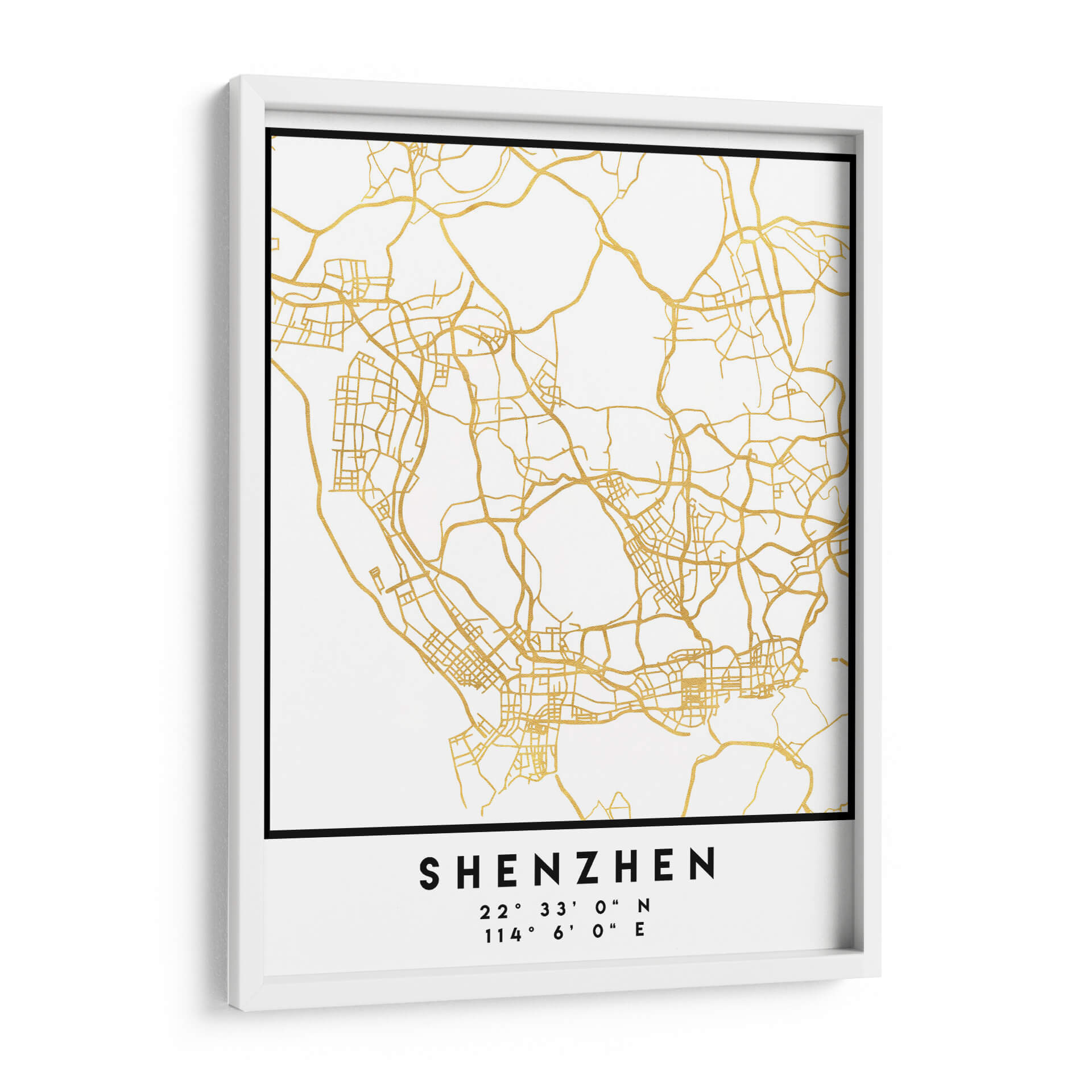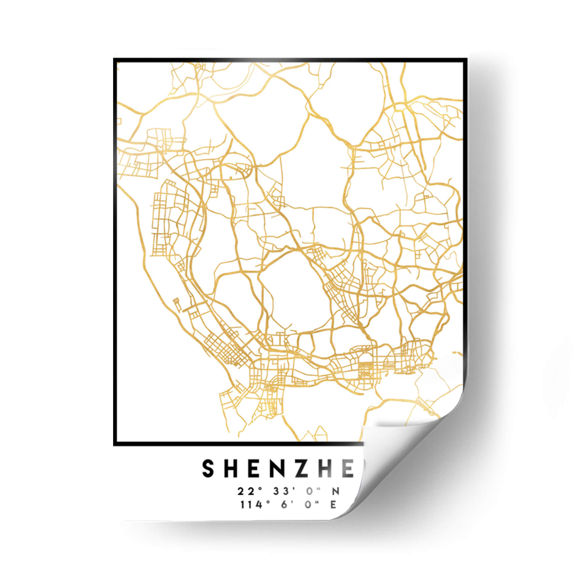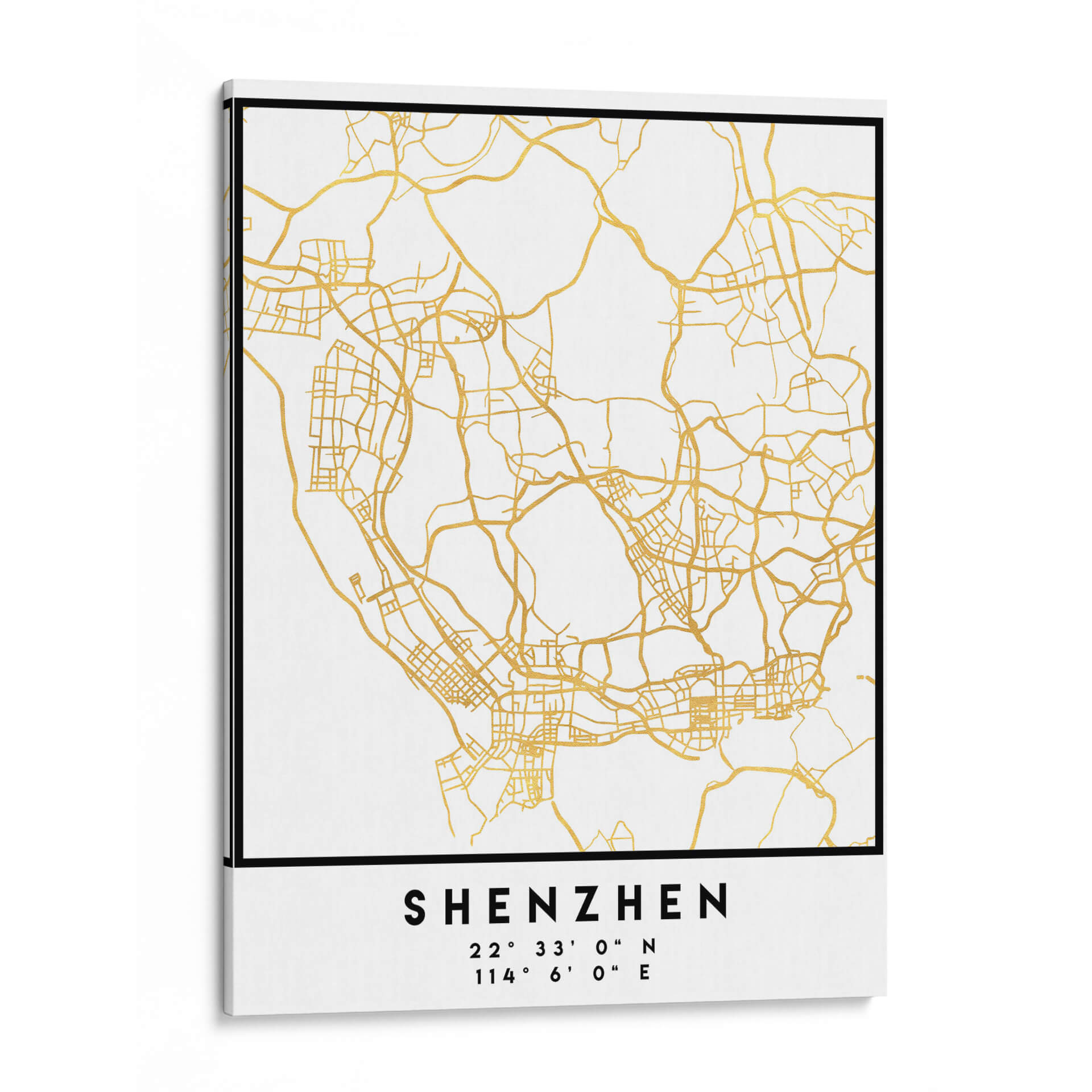 Este elegante cuadro decorativo, "Shenzhen, 1 Mapas 2 21" de Emiliano Deificus, transforma la compleja red de una ciudad en una obra de arte contemporáneo. Las líneas doradas, que representan las calles y vías de Shenzhen, se extienden sobre un fondo blanco puro, creando un contraste sofisticado y moderno. El diseño evoca la intrincada estructura urbana, invitando a la contemplación de la conectividad y el movimiento. Las coordenadas geográficas impresas añaden un toque de precisión y exclusividad, perfecto para los amantes de la geografía, los viajeros o aquellos fascinados por la planificación urbana. Su estilo minimalista y la paleta de colores de oro y blanco lo convierten en una pieza versátil, capaz de complementar cualquier decoración, desde la más moderna y minimalista hasta la más clásica. Imagina este cuadro como un punto focal inspirador en tu sala de estar, un recordatorio de viajes pasados o futuros, o un elemento distintivo en tu oficina para fomentar la claridad y la organización. Es una pieza que no solo embellece, sino que también cuenta una historia de exploración y diseño.