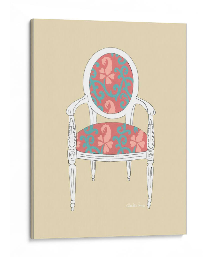 Transforma tu espacio con la encantadora obra 'Silla Decorativa IV' de Chariklia Zarris. Este cuadro decorativo captura la esencia de un mueble clásico con un toque contemporáneo, presentado sobre un fondo de color arena suave que realza la vibrante tapicería. Los intrincados patrones florales en tonos coral y turquesa, combinados con el blanco nítido de la estructura de la silla, crean una pieza visualmente atractiva y llena de carácter. El estilo gráfico y la silueta elegante de la silla evocan una sensación de nostalgia y sofisticación, perfecta para añadir un punto de interés a cualquier habitación. Ideal para salas de estar, dormitorios o incluso como un acento chic en una oficina, este lienzo es una invitación a la elegancia atemporal. Su composición equilibrada y su paleta de colores contrastantes lo convierten en una adición versátil y estilizada a tu decoración, aportando un aire de refinamiento y personalidad única a tu hogar u oficina. Descubre la belleza de lo cotidiano reinterpretado por el arte de Chariklia Zarris y da vida a tus paredes con esta pieza excepcional.