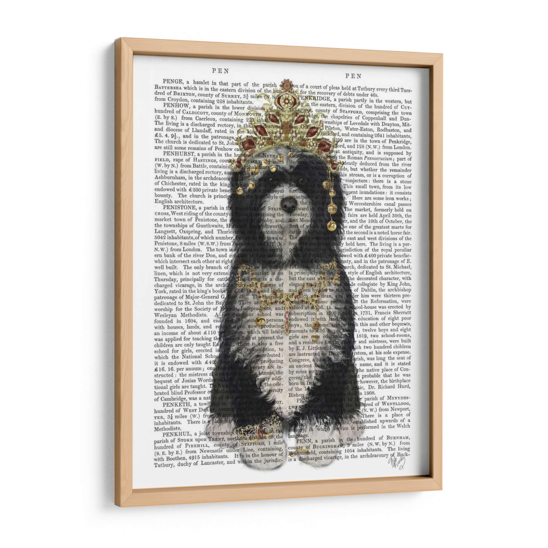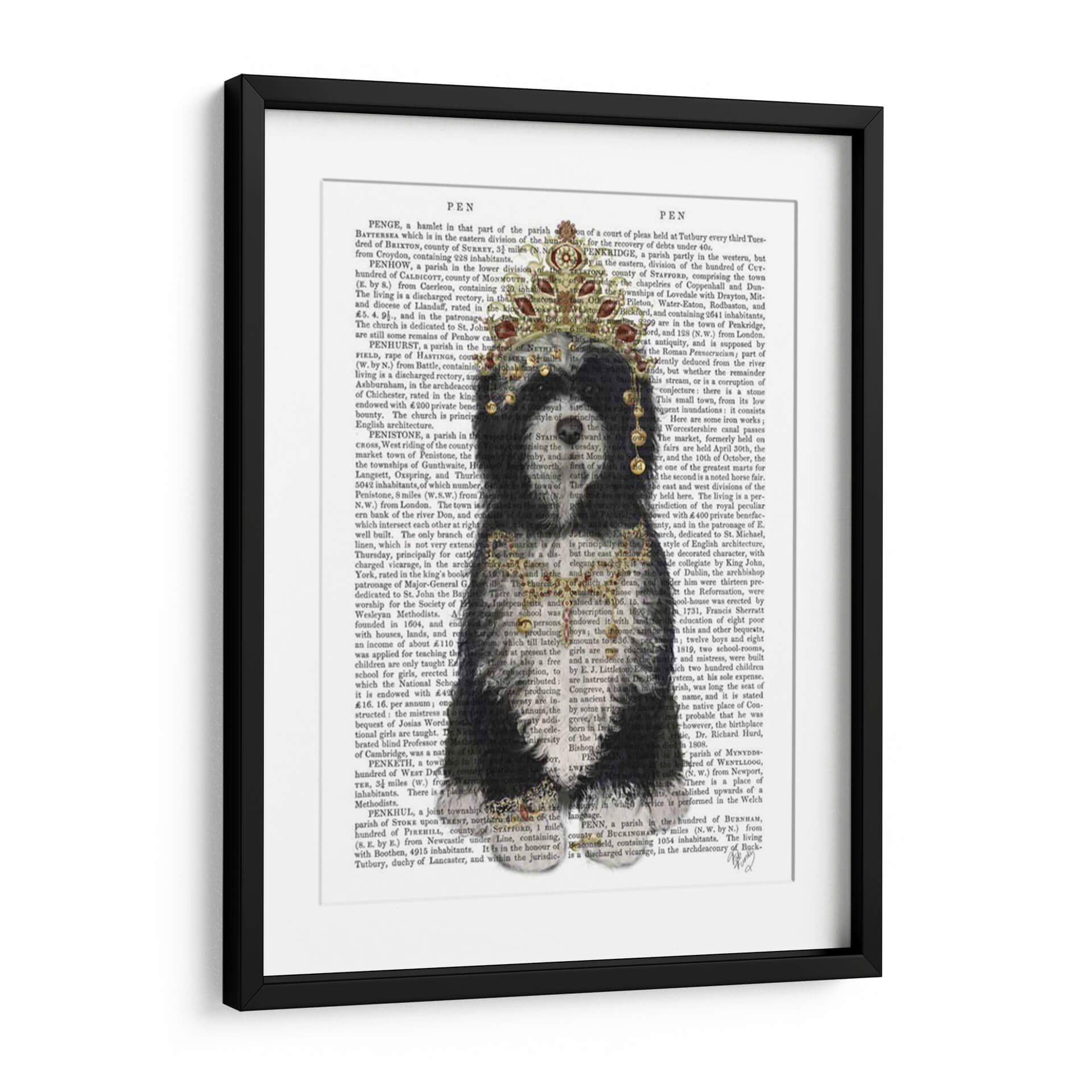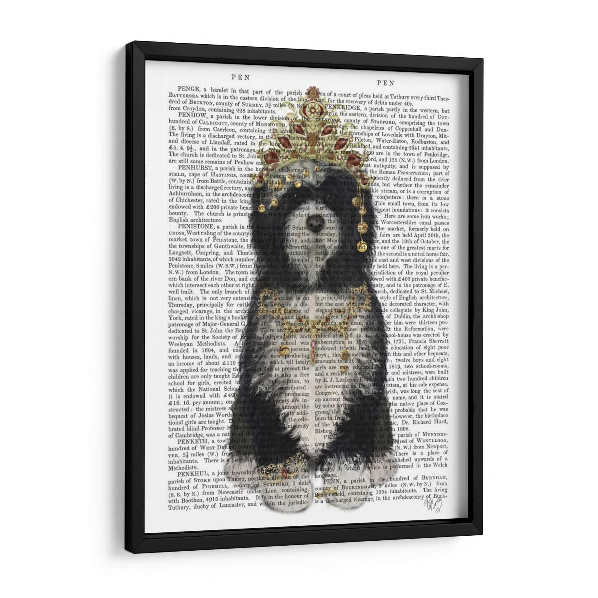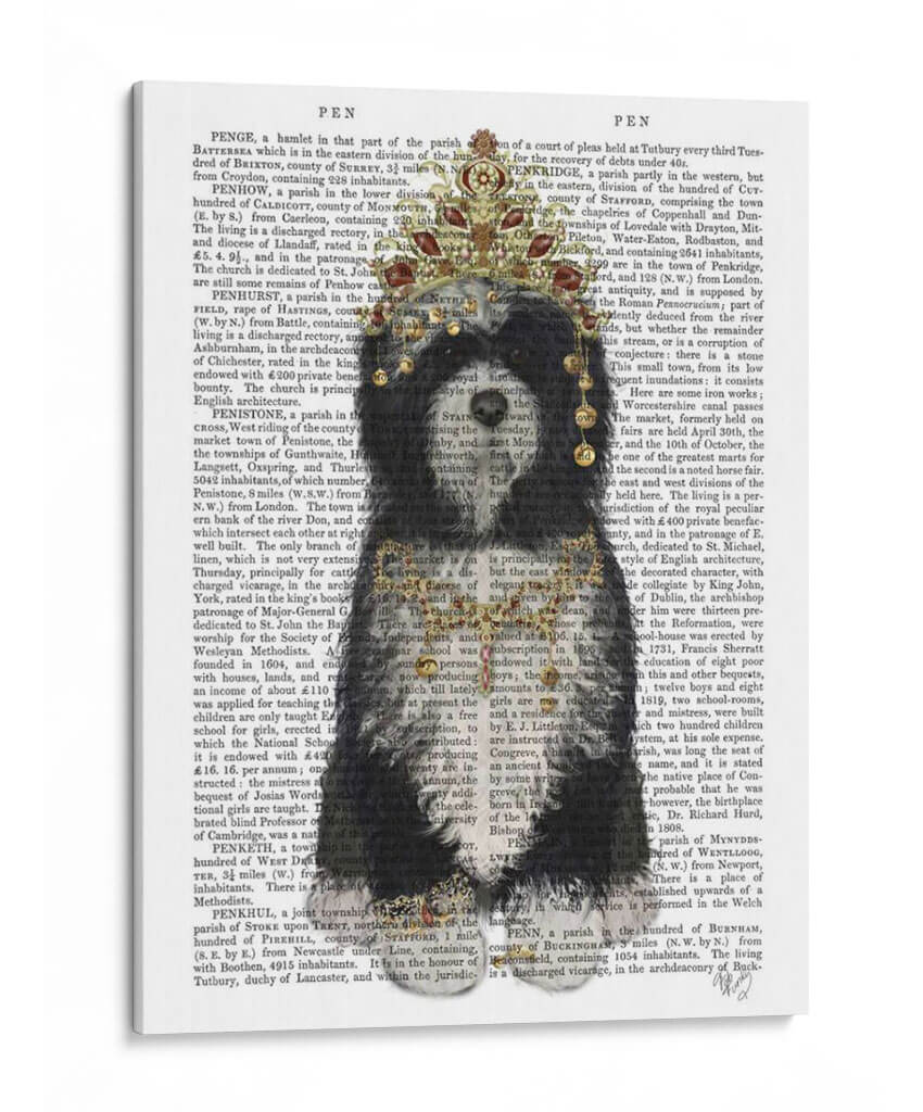 Sumérgete en la singularidad de "Tibetano Tibetano", una obra de arte del artista Fab Funky que desafía las convenciones con su fascinante retrato de un perro, adornado con una majestuosa corona. Esta pieza trasciende la mera decoración para convertirse en un punto focal lleno de personalidad y un toque de realeza juguetona. Los colores, aunque dominados por el blanco y negro del pelaje del perro, se ven realzados por sutiles toques dorados y rojos en la corona, creando un contraste cautivador que atrae la mirada. La textura visual, sugerida por el detallado pelaje y la impresión de texto antiguo de fondo, aporta profundidad y un aire de historia a la composición. El estilo, una fusión de arte pop y surrealismo con un giro moderno, lo convierte en una pieza sorprendentemente versátil. "Tibetano Tibetano" es ideal para espacios que buscan un toque de audacia y originalidad, desde una sala de estar contemporánea hasta un estudio o una oficina que necesite un elemento de conversación. Su aire de nobleza desenfadada aporta carácter y calidez, invitando a la reflexión y la sonrisa. Añade un toque de distinción y humor a tus paredes con este cuadro decorativo que celebra la individualidad y el encanto inesperado de nuestros compañeros caninos.