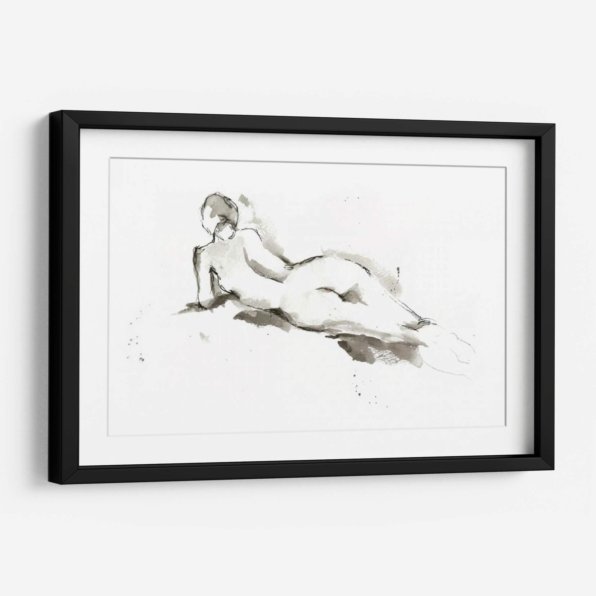 Sumérgete en la delicadeza y el estudio del cuerpo humano con "Tinta Figura Estudio IV", una obra de arte contemporáneo que captura la esencia de la figura en un trazo fluido y expresivo. El artista Ethan Harper utiliza una paleta de tonos grises y negros, aplicados con técnica de tinta sobre un fondo blanco que evoca la pureza y la simplicidad. La composición, centrada en una figura reclinada, transmite una sensación de calma, introspección y elegancia sutil. Las pinceladas sueltas y las manchas de tinta añaden una textura visual dinámica y un aire de espontaneidad, invitando a la contemplación. Este cuadro decorativo es perfecto para espacios que buscan un toque de sofisticación artística y serenidad, como dormitorios, salas de estar o estudios privados. Su estilo minimalista y la fuerza del dibujo lo convierten en un punto focal cautivador que dialoga con la sensibilidad del espectador, aportando profundidad y un carácter único a cualquier ambiente moderno o clásico.